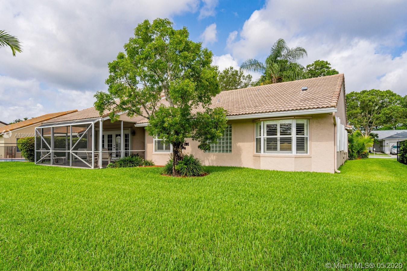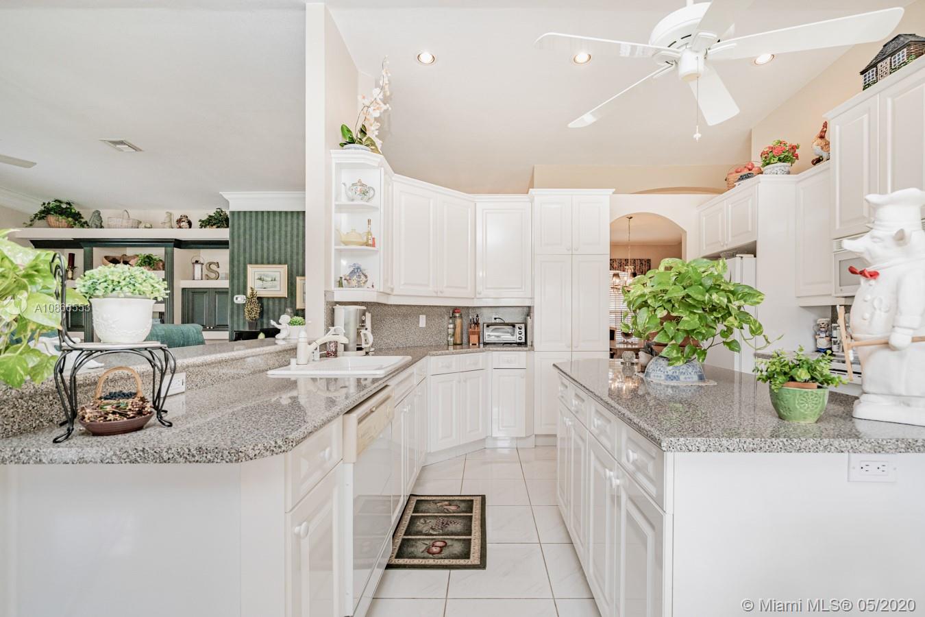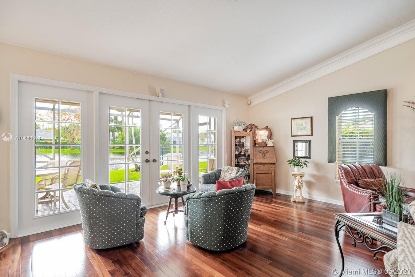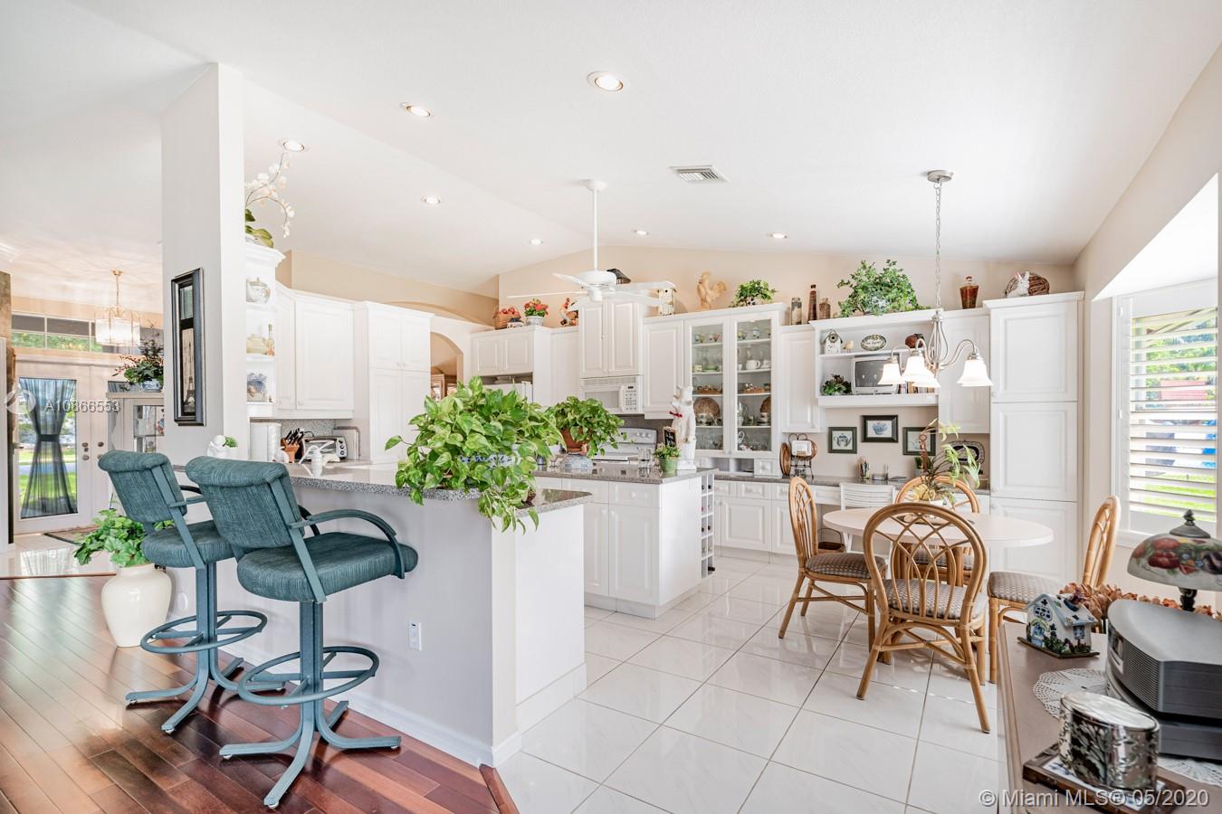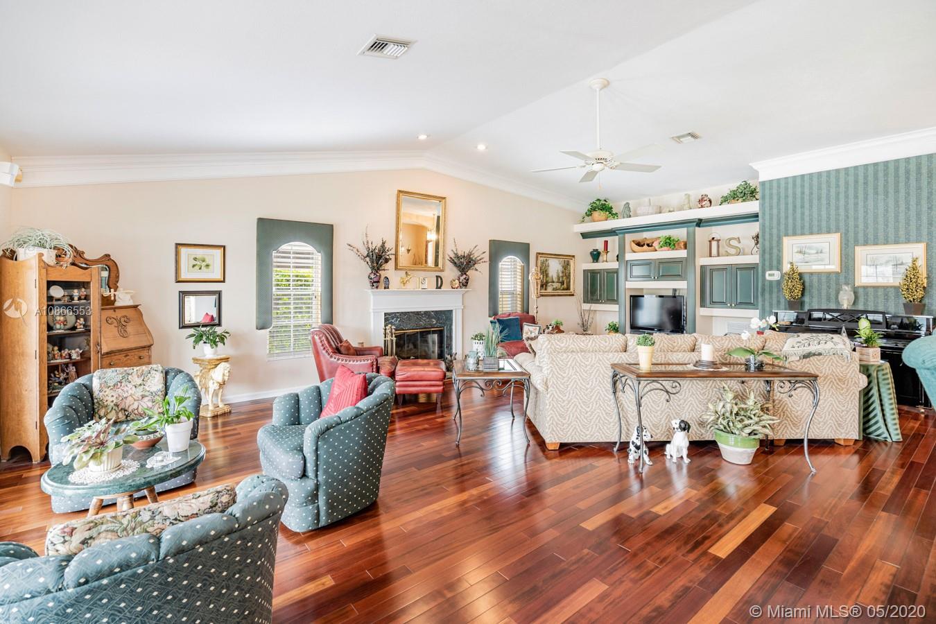 Beautiful waterfront home in Davie is ready to make your own! Spacious 3/2 features custom designed kitchen w/several pull out cabinets, over-sized island, all bedrooms have walk-in closets, crown molding throughout, vaulted ceilings in main living areas and master, wood burning fireplace, custom plantation shutters and blinds throughout, bay windows in cafe area & master with lake view, custom built-in unit in great room, 52 in. fans in all rooms, Bay windows in cafe area and master, large linen closet, tiled screened patio, French doors to patio, hardwood flooring and 17 inch tile throughout, utility sink in garage, hurricane accordion shutters/gutters, automatic sprinkler system that runs off lake, monitored security system on doors & windows and so much more. Make this your home today!