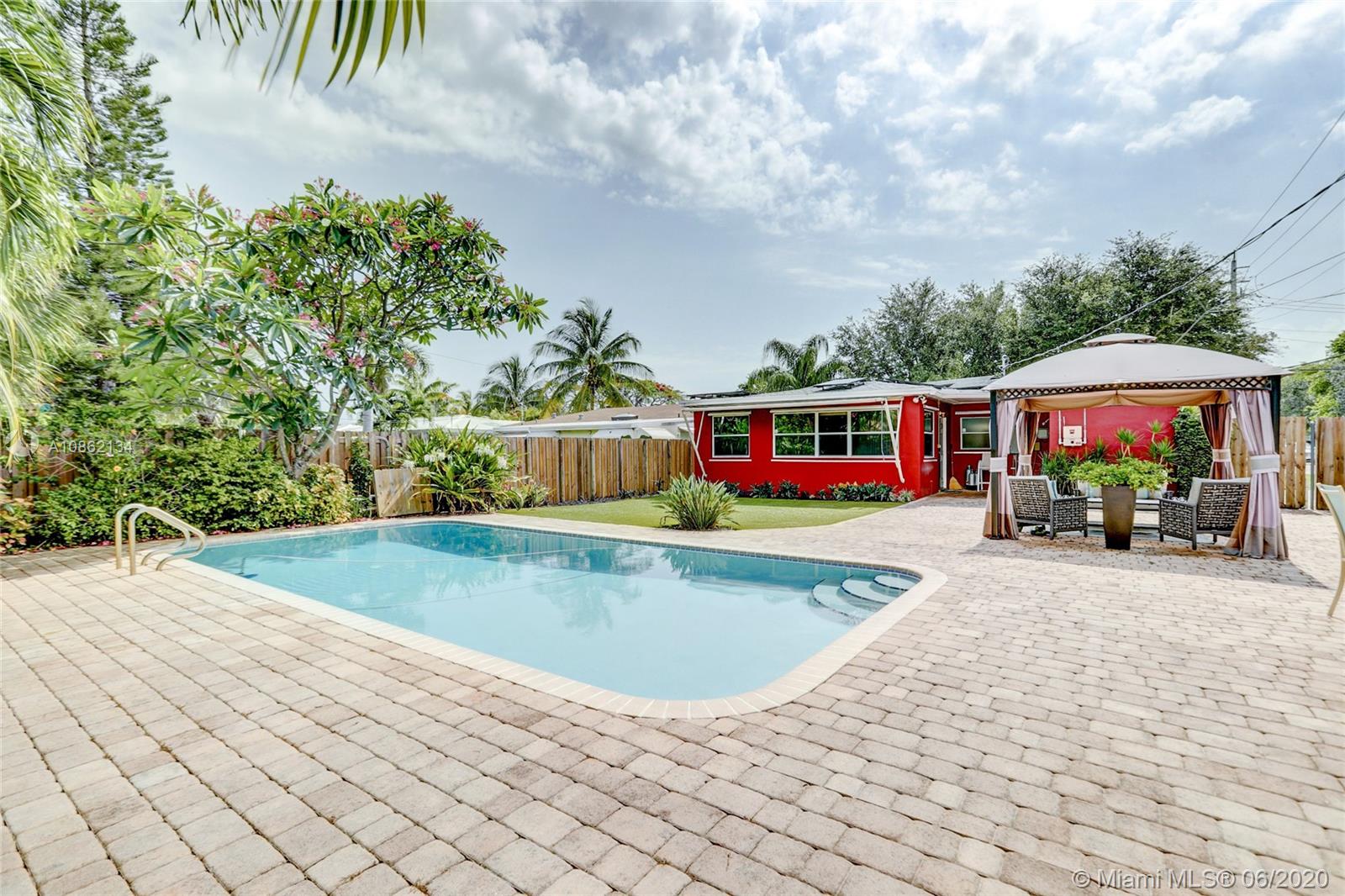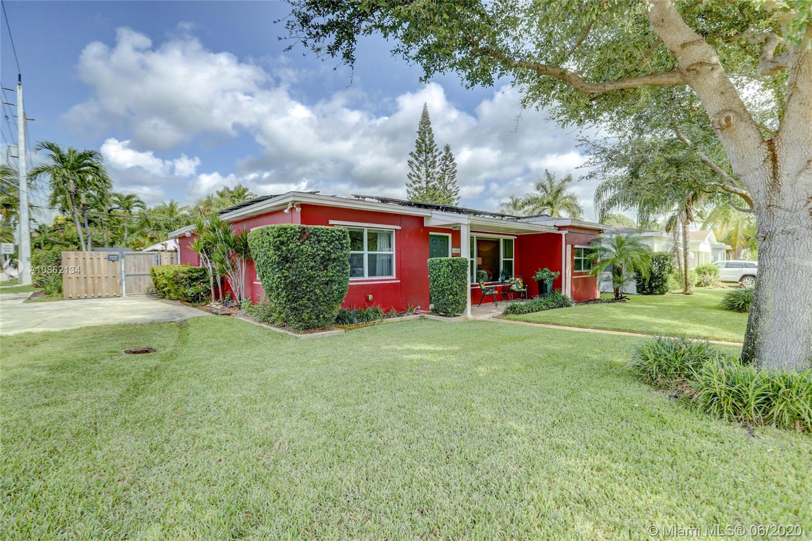 There's a RED HOUSE over yonder, with 2018 SOLAR PANELS! Electric bill just $9.97/month & transferable warranty! Under a mature tree canopy, seconds from the Poinsettia Heights / Lake Ridge areas of Progresso, you will find a large CORNER LOT home w/ great light & energy, & a sprawling backyard w/ pavers & faux turf for your dogs. The sparkling Pool w/ newer pump & filter is perfect for laps or get togethers. Other recent upgrades include 2018 ROOF, '15 plumbing drain line, fully fenced; plus NEWER AC, WATER HEATER & large neutral tile. Every opening also has WIND STORM PROTECTION. The energetic & friendly neighborhood is minutes from Whole Foods, Holiday Park, Galleria Mall, FAT Village & Ft Lauderdale Beach - in the heart of everything & the opportunities keep growing in this community.