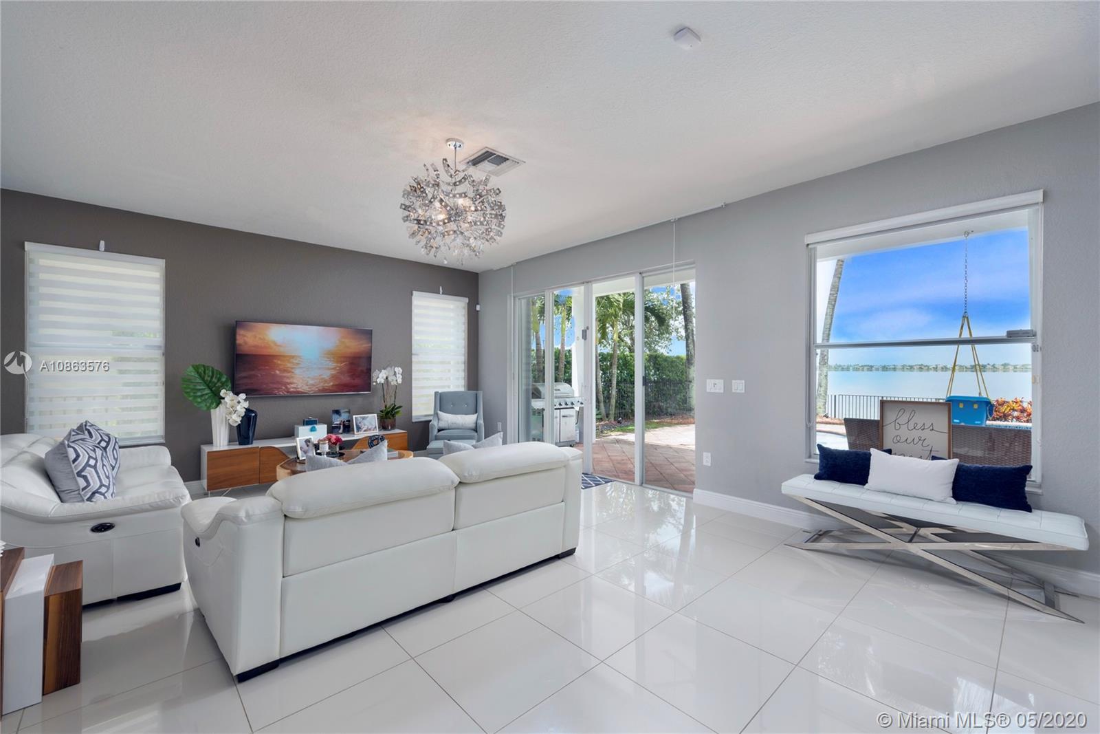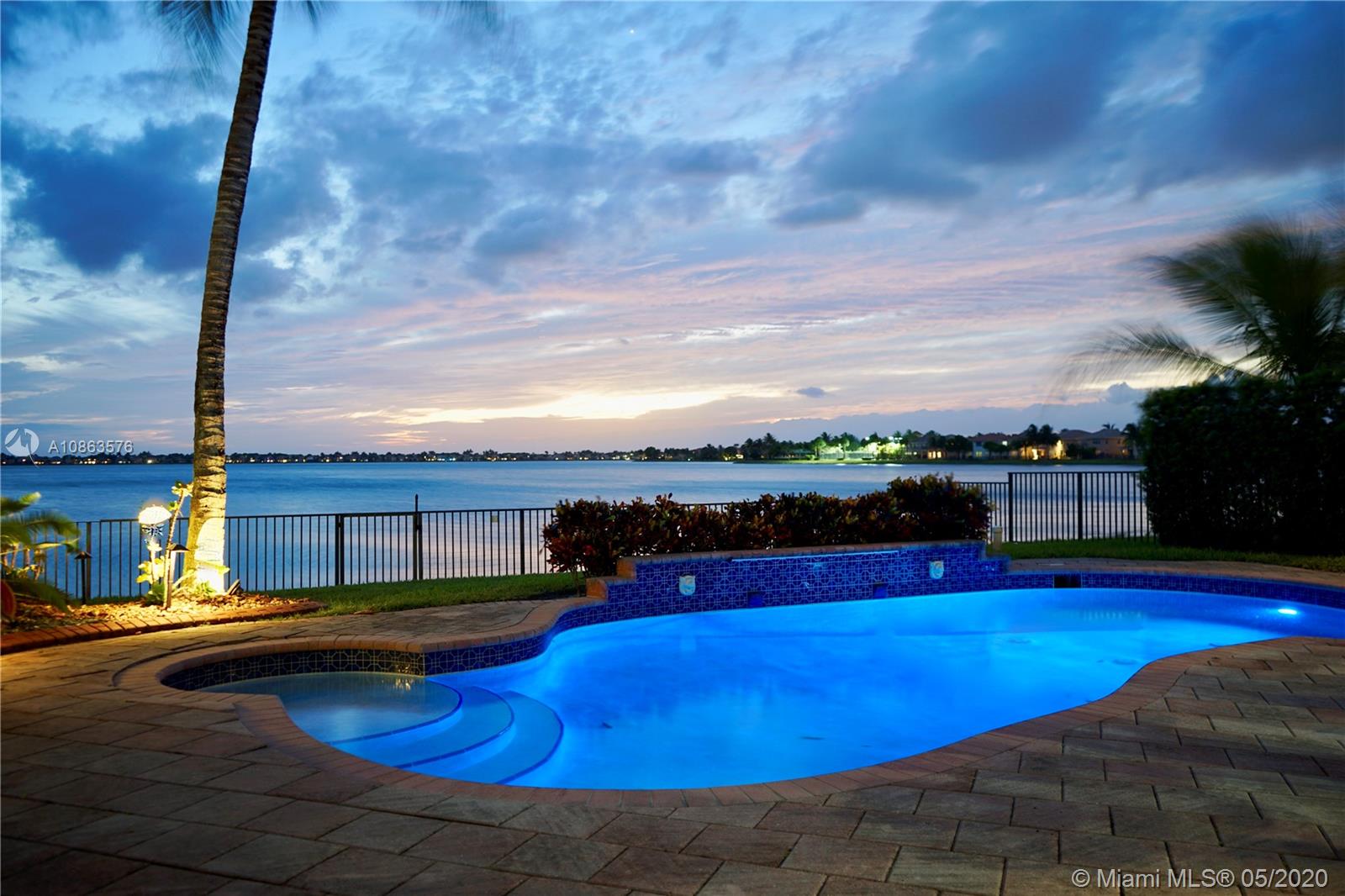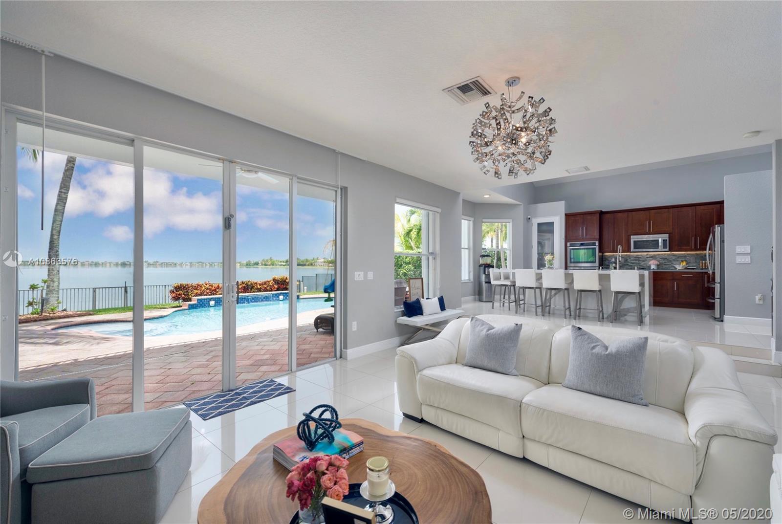 Welcome to Casa Bella Vista! Breathtaking lake views & amazing sunsets create the most tranquil setting for this stunning residence. Upon entering you are captivated by the natural light, flow & high ceilings. The home was remodeled with a modern flare. The kitchen has SS appliances, glass mosaic backsplash, Quartz counters, oversized island with waterfall edge. The luxurious master retreat includes a sitting area & balcony offering expansive lake views. Master bath with porcelain tile, modern fixtures, huge walk-in shower, dual shower heads, his & her areas, quartz topped zebra wood vanities & custom closets. New roof & accordion shutters. Backyard boasts a covered patio, freeform pool & 375 mile-wide breathtaking lake views making this a wonderful family home for entertaining.