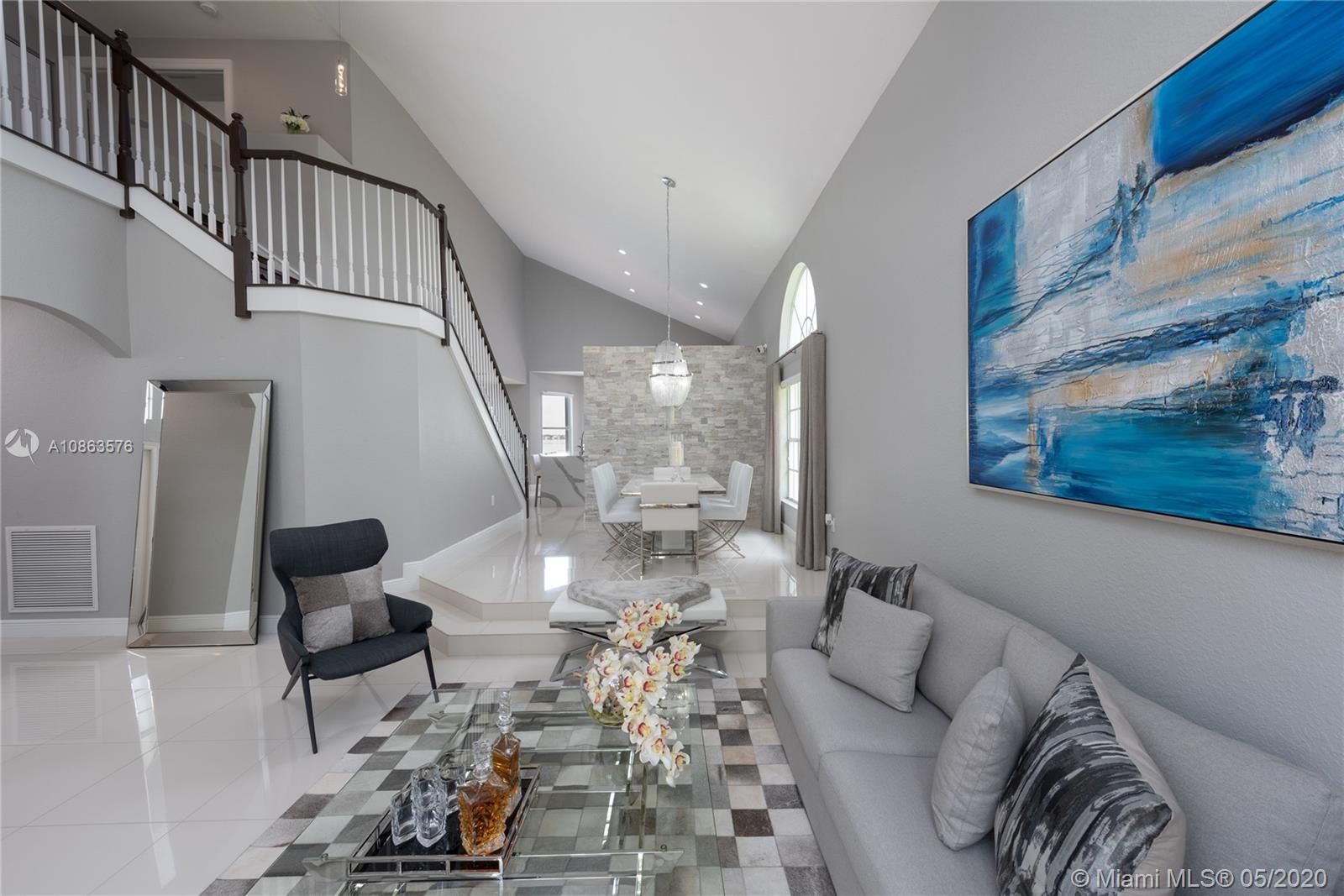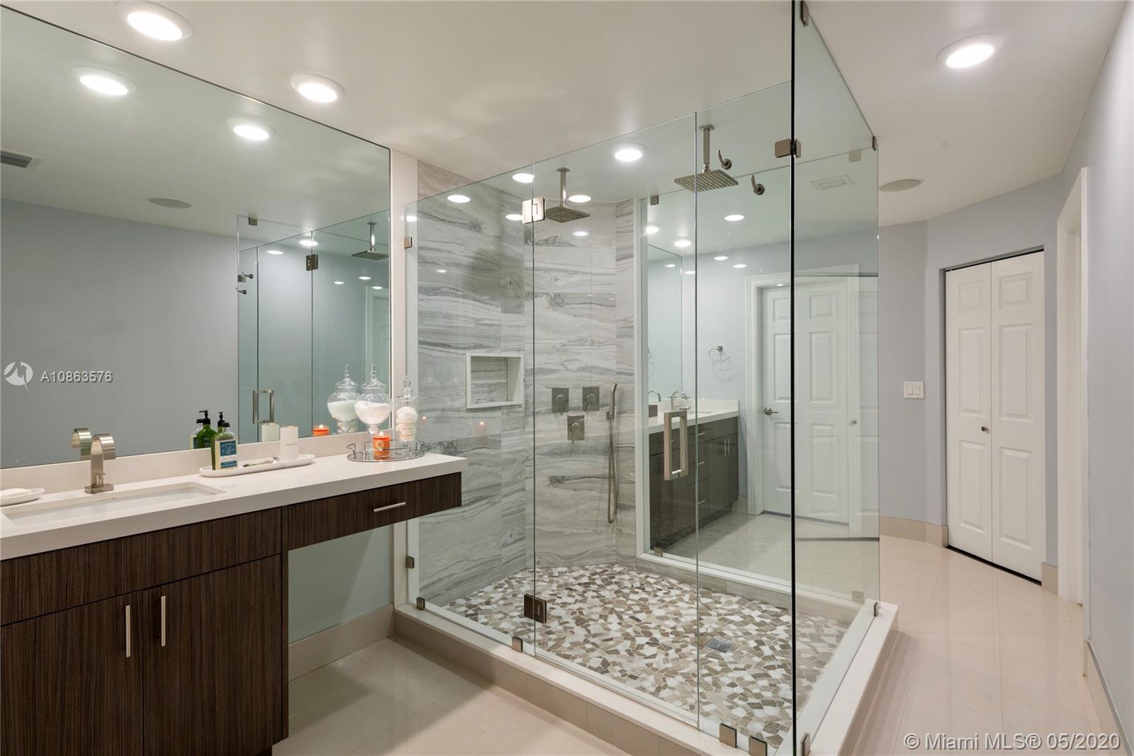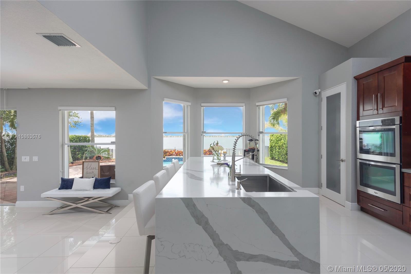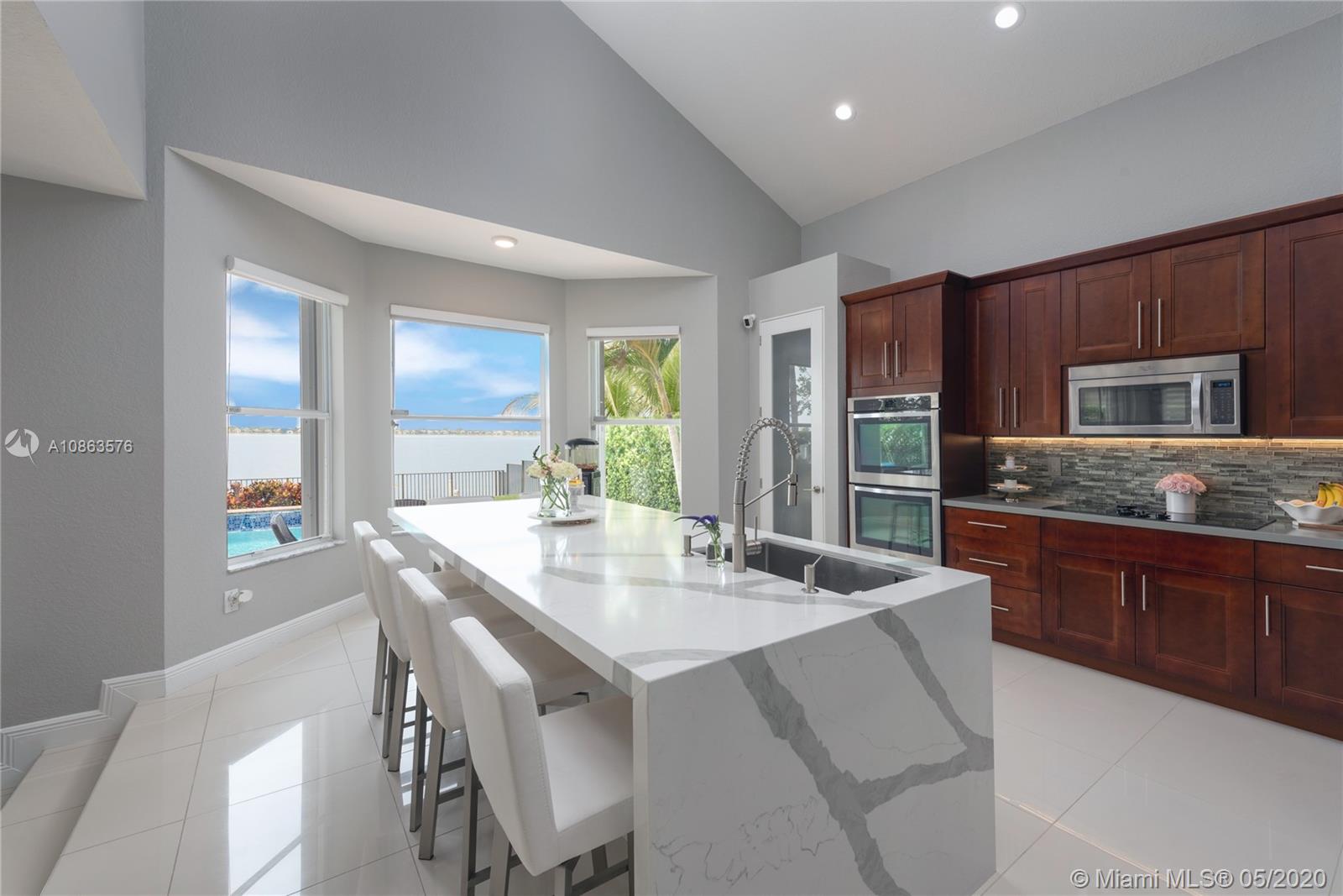 Welcome to Casa Bella Vista! Breathtaking lake views & amazing sunsets create the most tranquil setting for this stunning residence. Upon entering you are captivated by the natural light, flow & high ceilings. The home was remodeled with a modern flare. The kitchen has SS appliances, glass mosaic backsplash, Quartz counters, oversized island with waterfall edge. The luxurious master retreat includes a sitting area & balcony offering expansive lake views. Master bath with porcelain tile, modern fixtures, huge walk-in shower, dual shower heads, his & her areas, quartz topped zebra wood vanities & custom closets. New roof & accordion shutters. Backyard boasts a covered patio, freeform pool & 375 mile-wide breathtaking lake views making this a wonderful family home for entertaining.