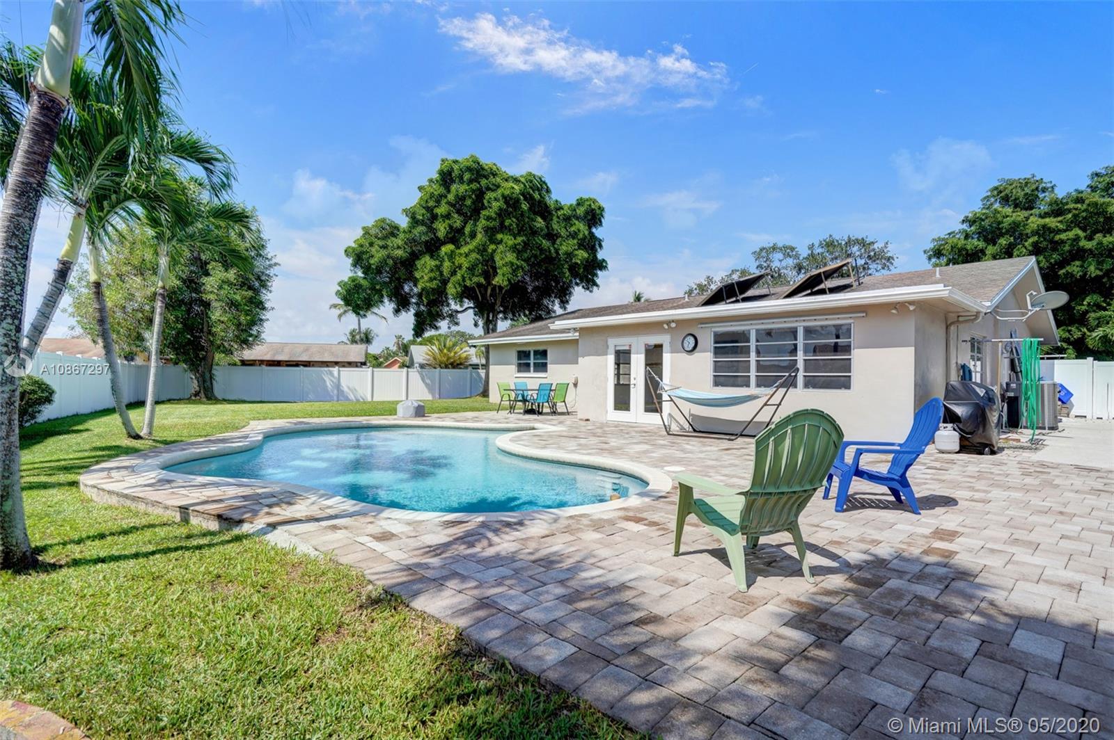 This four bedroom, two bath pool home is located on a quiet, dead-end street, and sits on one of the largest lots in the subdivision. The beautiful, fenced backyard offers plenty of room for kids to play, dogs to run and/or a secure place to park your boat. This house offers the largest floor plan in the neighborhood, solar heated water heater, an open kitchen with a separate dining area, and a Florida room whose double French doors open to an expansive pool deck.