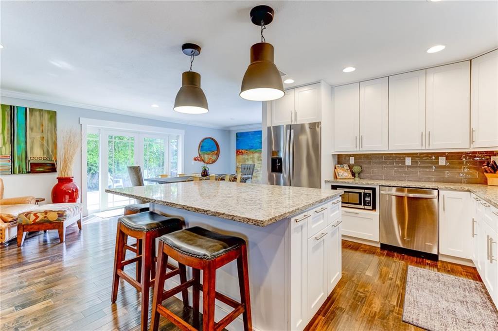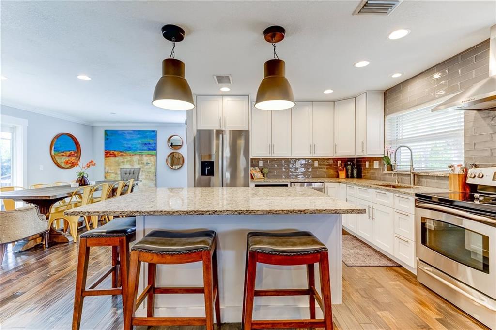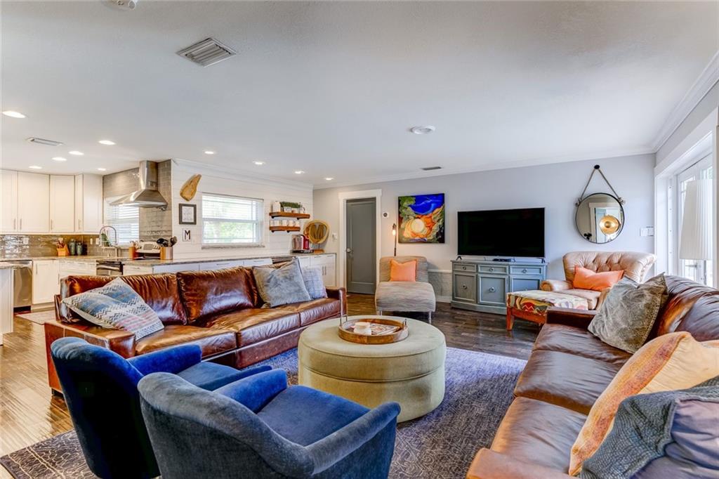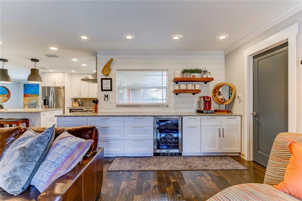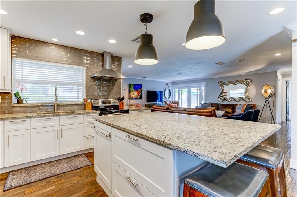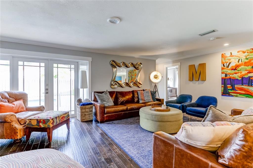 Substantially remodeled rustic contemporary Forest Hills pool home. No shortcuts taken. All white soft close cabinetry with LED under lighting, granite countertops, and stainless steel appliances. Extensive crown molding throughout. All real hardwood flooring, no laminate here! Extended cabinetry includes coffee area and wine chiller. Perfect for entertaining in a wide open space. Impact windows, impact French doors, and impact access doors. All new electrical panels installed. Both bathrooms remodeled with modern rustic touches. New pool pump is smart phone controllable. Nest climate control system. Welcome home!