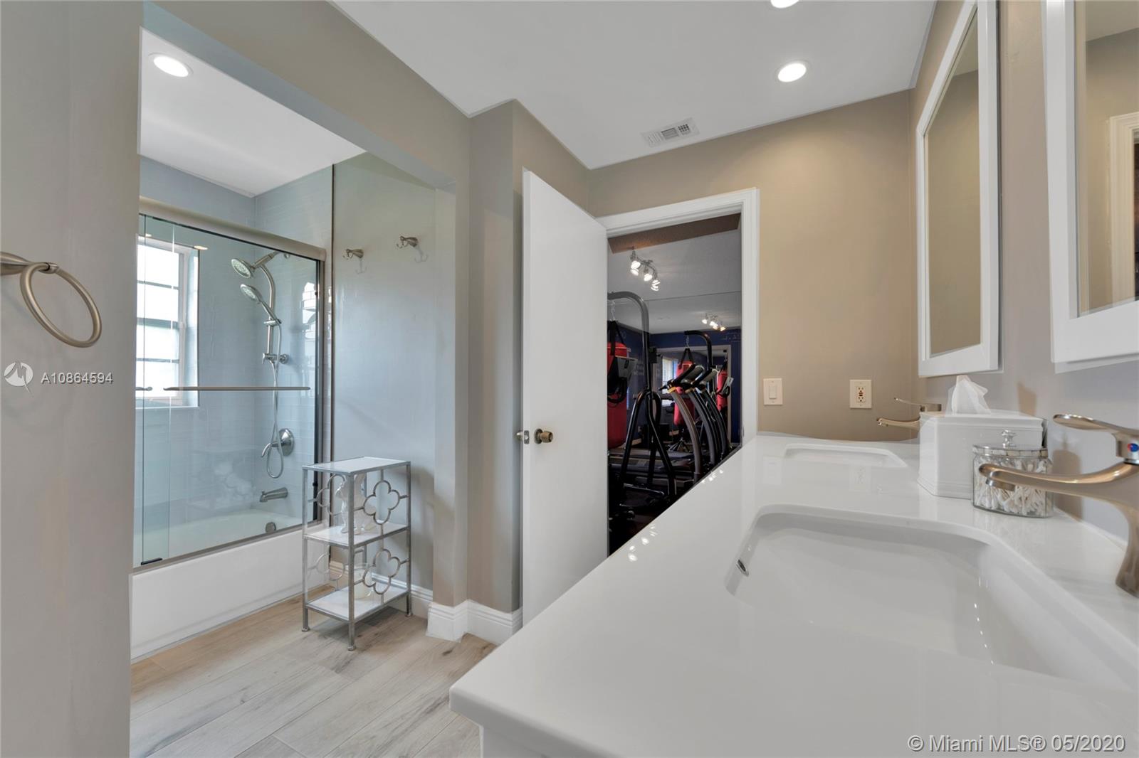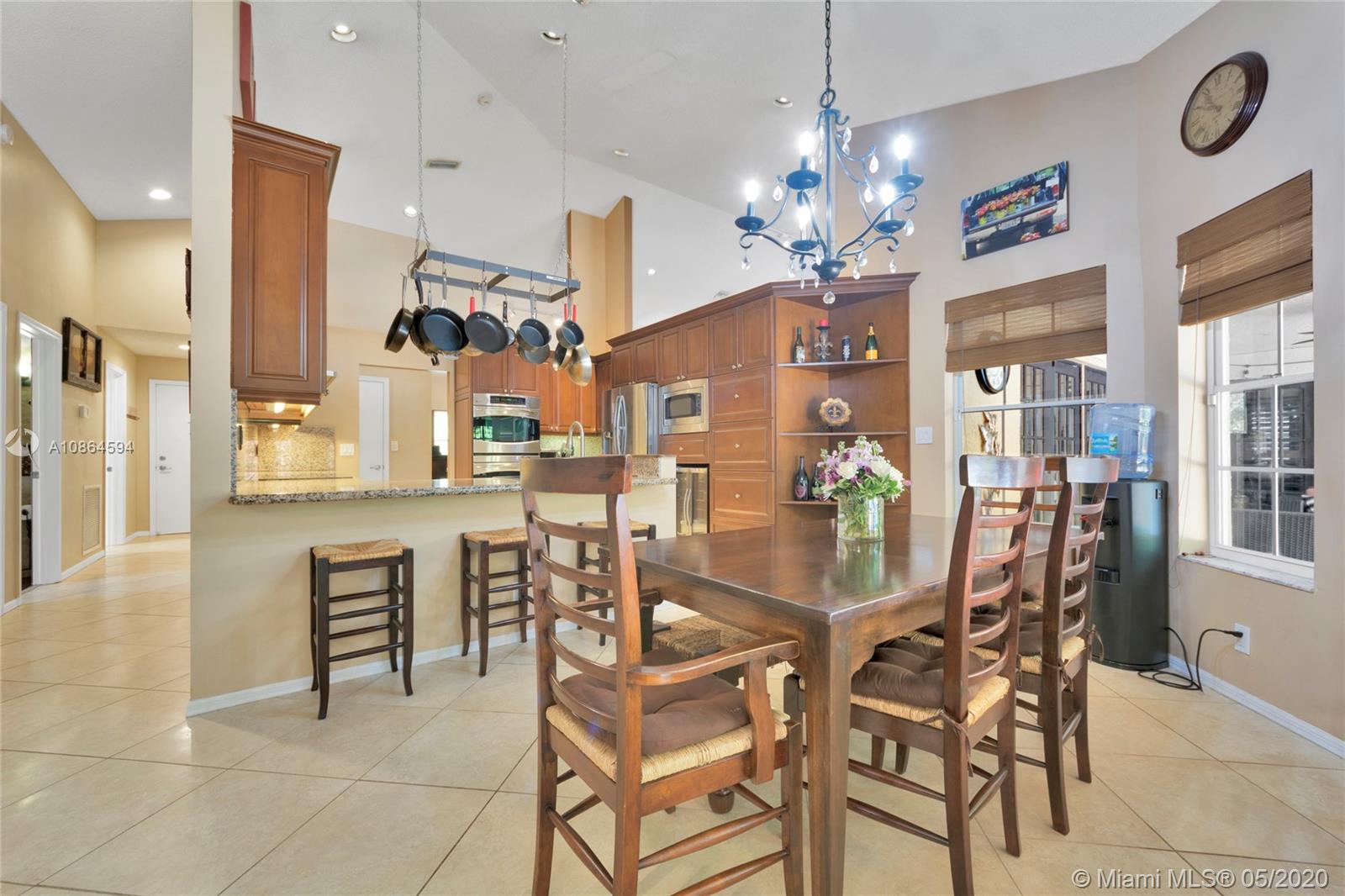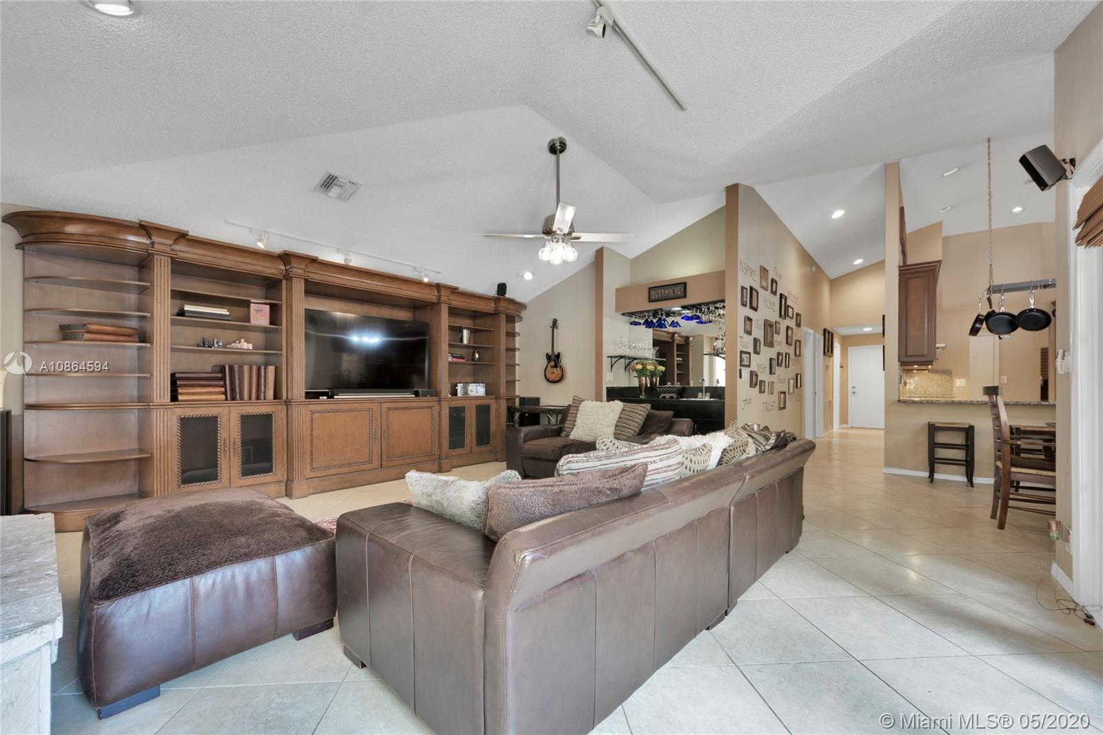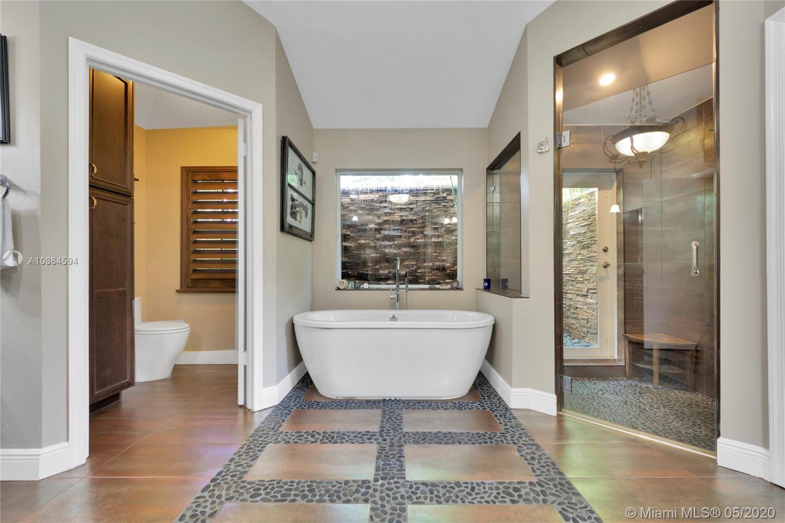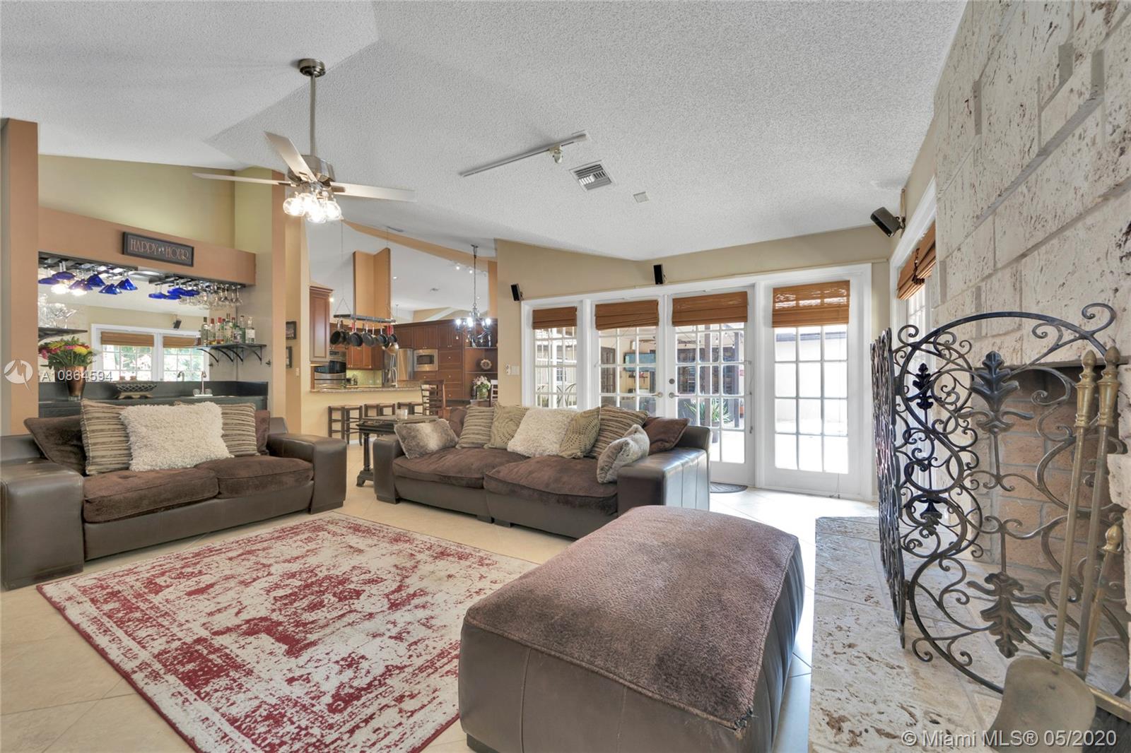 This exceptional 5 bedroom 4 bathroom residence is set on a lushly landscaped 1/3 acre private berm lot in charming tree-lined neighborhood. Enter foyer and be greeted by spacious living room and dining room with volume ceilings and French doors opening to tropical backyard paradise. The outside is an alluring resort-style oasis with free-form heated salt pool w/waterfall and beach entry, stunning marble patio, hot tub, fire pit and Bocce court. Interior features custom chef's kitchen with double ovens, cook top/hood, pot rack and wine cooler which overlooks the breakfast area and family room with fireplace , spa-like Zen master bathroom, completely remodeled with custom cabinets, marble counters, his and her toilets, luxurious tub and inside/outside shower. Steps to park and playground.