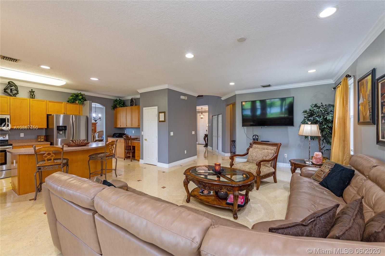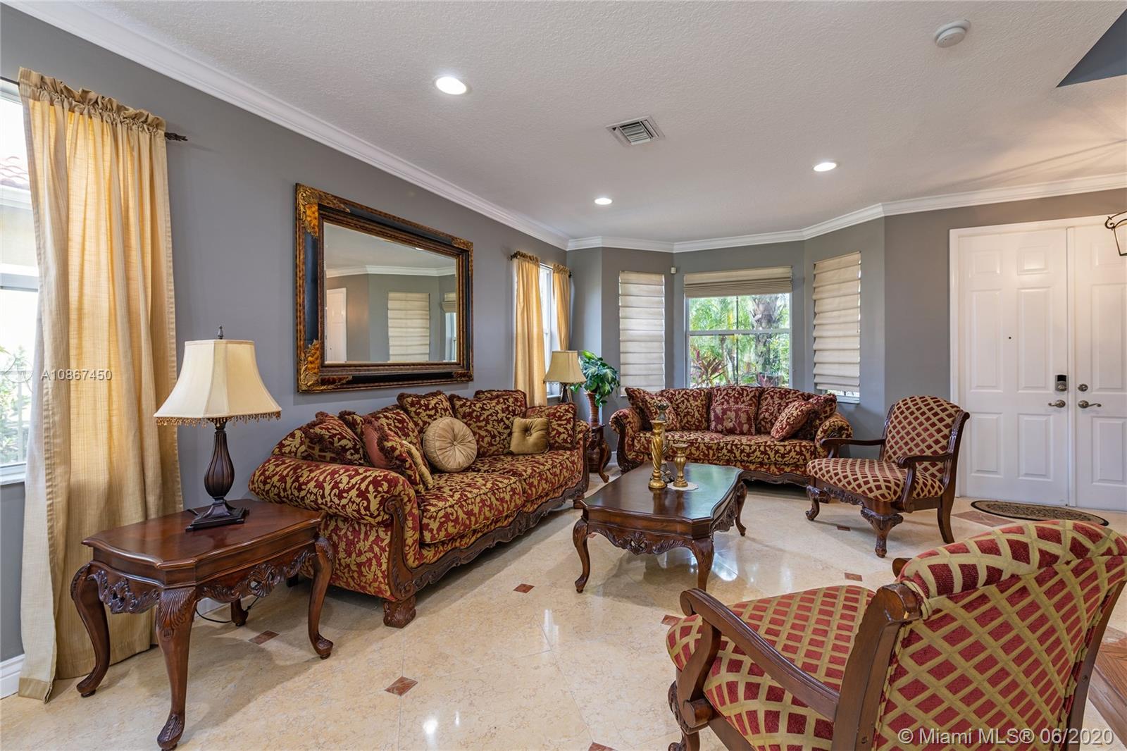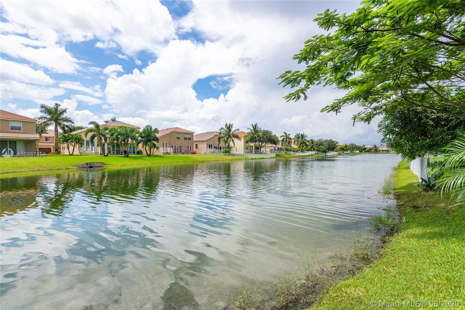 Beautiful Lakefront home in gated community of Riviera Isles. Featuring 4 bedrooms plus a den/office, and 2.5 bathrooms, this home offers ample of space for the family and is great for entertaining. Marble floors on the first floor, wood on the stairs, and laminate on the second floor. Covered patio overlooking the lake and yard big enough for a pool. Located in a resort-style community with a pool, gym, tennis, and basketball. Close to I-75, the turnpike, restaurants, and shops.