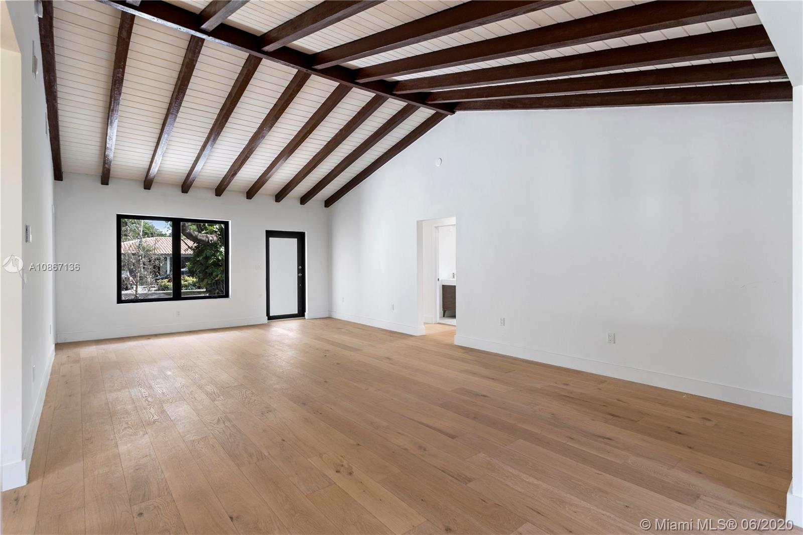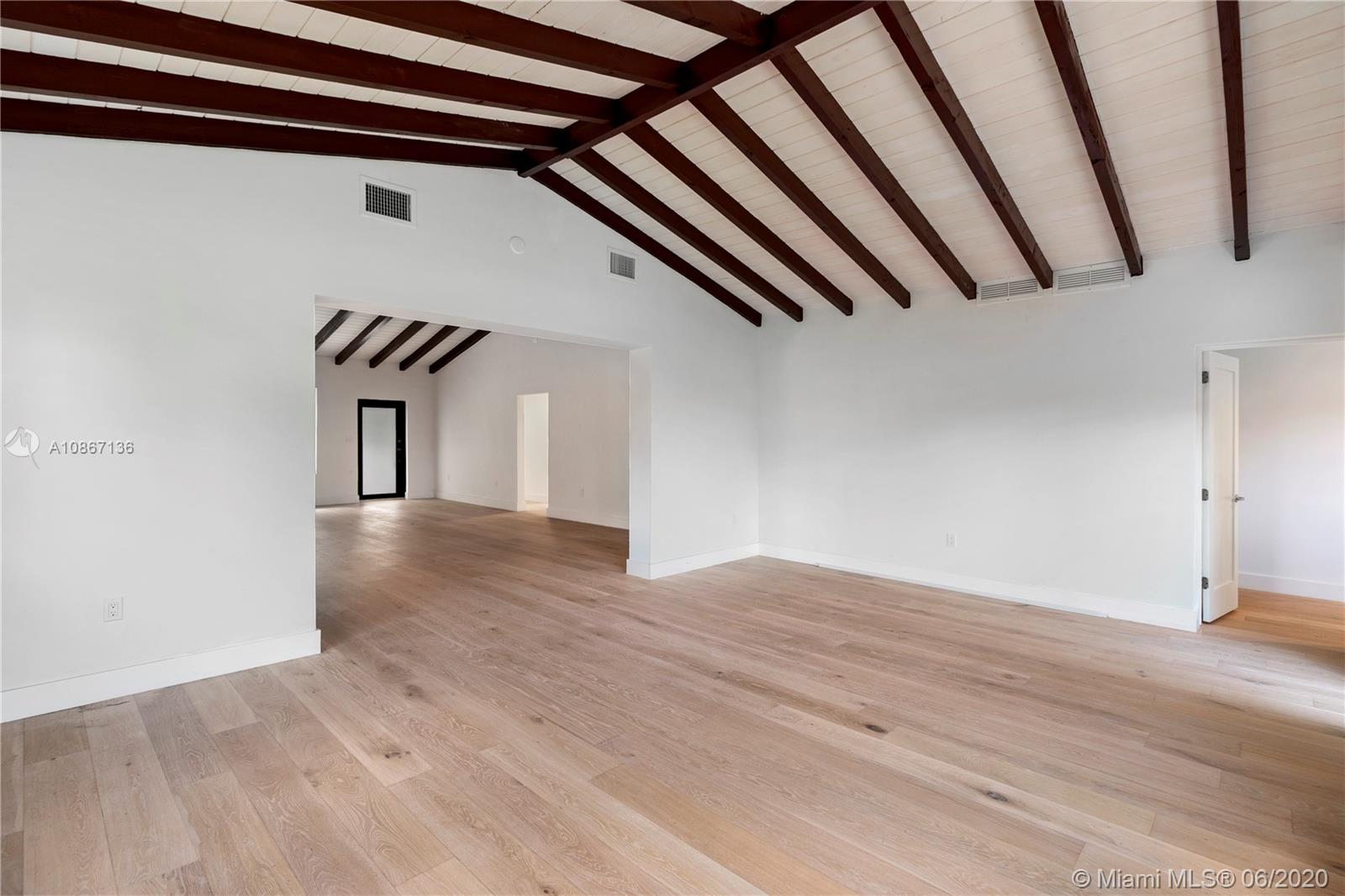 Exceptional single story home in central Gables location. Extensive remodel includes kitchen, baths, flooring, impact windows and doors, PVC plumbing, electrical, AC, and ducts. Open layout with vaulted ceilings. Four bedrooms and 3 bathrooms. 2 en suites. 7500 sqft lot with room for a pool. Circular driveway with ample parking.