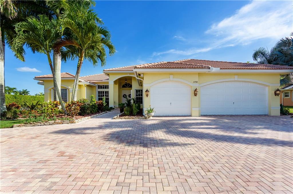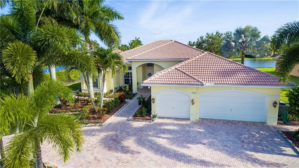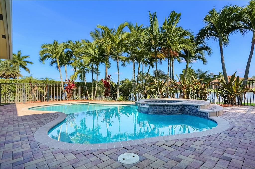 GORGEOUS ONE STORY HOME WITH POOL AND LAKE IN THE GUARD GATED COMMUNITY OF RIVERSTONE. THIS HOME FEATURES FOUR BEDROOMS PLUS AN OFFICE AND FOUR FULL BATHROOMS. TILE FLOORING, VOLUME CEILINGS & CROWN MOLDING THROUGHOUT. LARGE KITCHEN WITH MODERN WHITE CABINETRY, GRANITE COUNTERTOPS, CENTER ISLAND AND SNACK BAR. RELAXING RESORT STYLE BACKYARD OVERLOOKING THE LAKE WITH A LARGE SCREENED-IN COVERED PATIO, OVERSIZED SALTWATER POOL & SPA, GRASSY AREA & NEW LANDSCAPING. HUGE EXTENDED CIRCULAR DRIVEWAY, NEW A/C'S, NEW HOT WATER HEATER, ENTIRE HOME IS PROTECTED BY ACCORDION SHUTTERS.