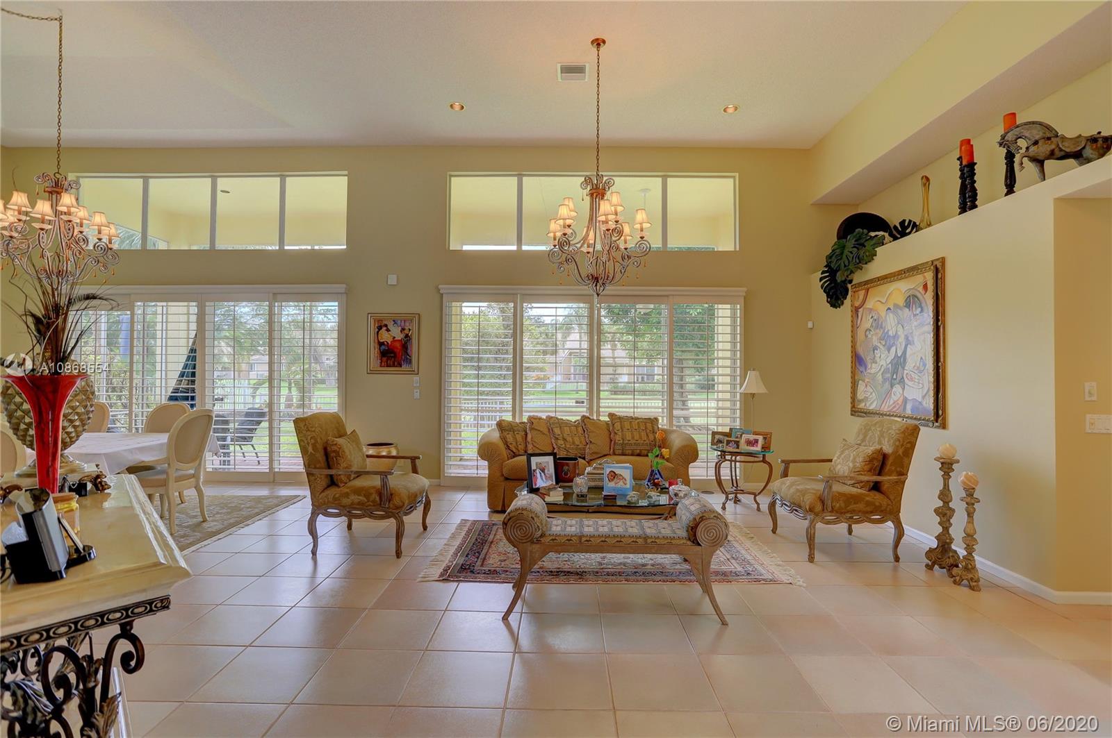 Inspiring Estate Home located in beautiful Grand Palms Golf Resort. So much to offer, brand new ROOF, an updated kitchen, spacious bedrooms with oversized closets, grand formal dining and living spaces, a custom bar for total entertainment, a courtyard space w pool & a huge covered area for large social gatherings even when it rains & a large screened covered patio overlooking the golf course. Overall this home has been meticulous maintained and cared for. Tremendous location just a few minutes from I-75, Whole Foods, Costco & great shopping & dining. A+ schools. 30 min from MIA & FLL. Come enjoy a great lifestyle.