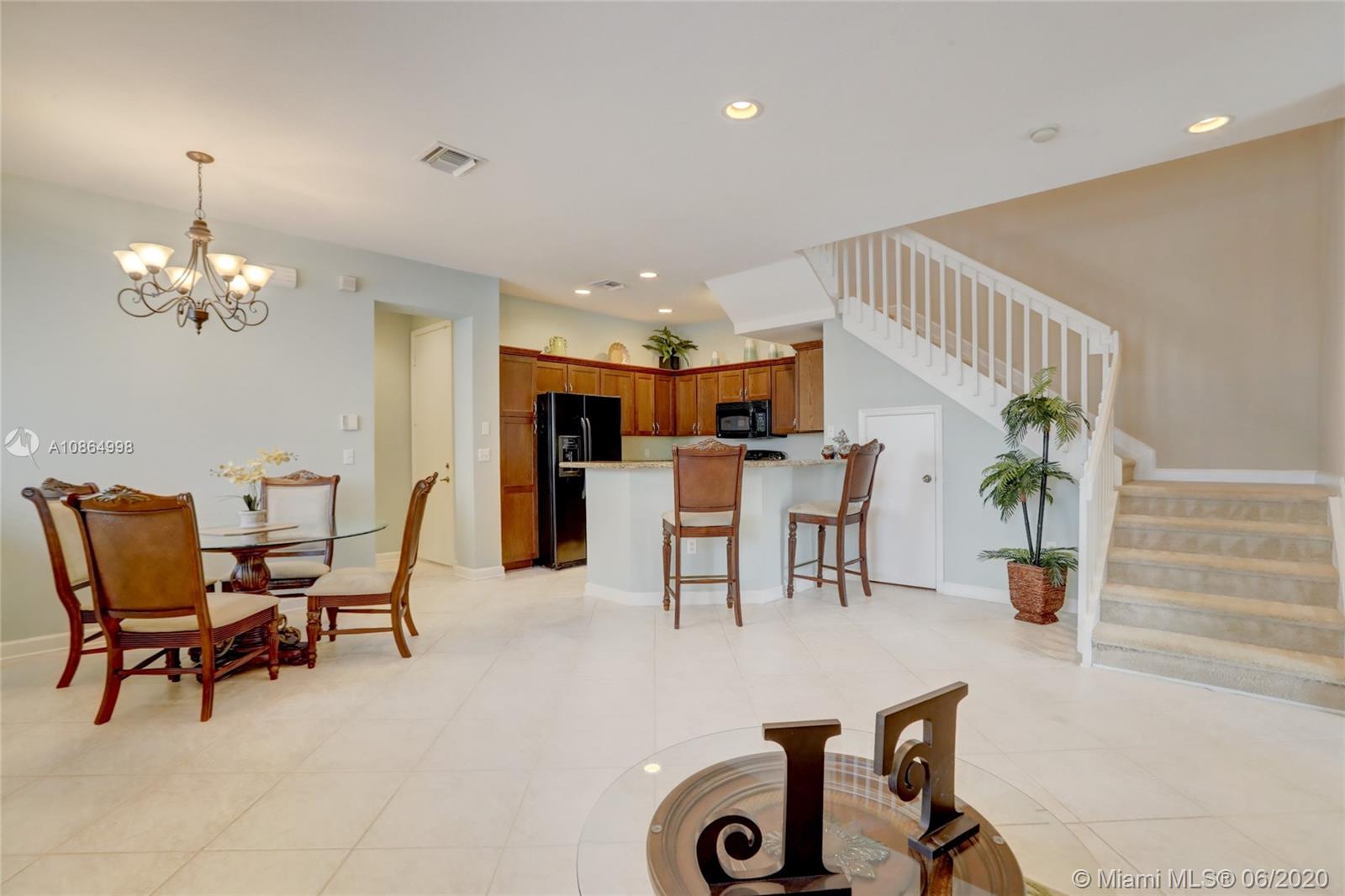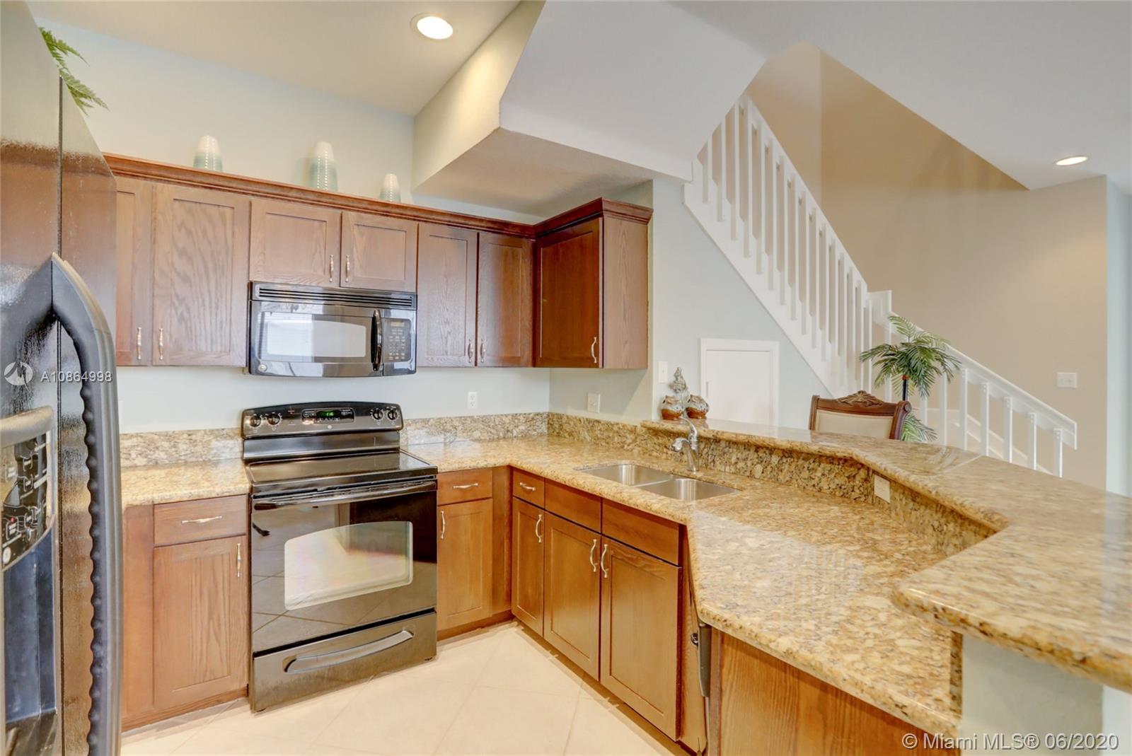 Wow, move-in ready 3/3.5 townhouse priced 70k below newer models in the community with similar finishes & low HOA fees. This two-story, northwest facing end unit includes a huge loft in a gated community in up & coming Pompano Beach. Recent upgrades include kitchen cabinet crown molding, new awnings & light fixtures & freshly painted inside & out. Open & inviting floor plan with 3 over-sized bedrooms including a downstairs master with Jacuzzi tub, & two second level en-suite bedrooms that could also be a master. Open kitchen overlooking the spacious family room & breakfast nook. Tile flooring on the first floor & carpet on the second. Huge loft upstairs can be used as an entertainment room, gym, or play area for the kids. Impact windows & doors, plus one car garage and carport.