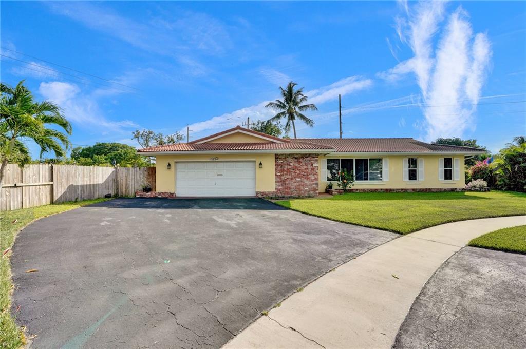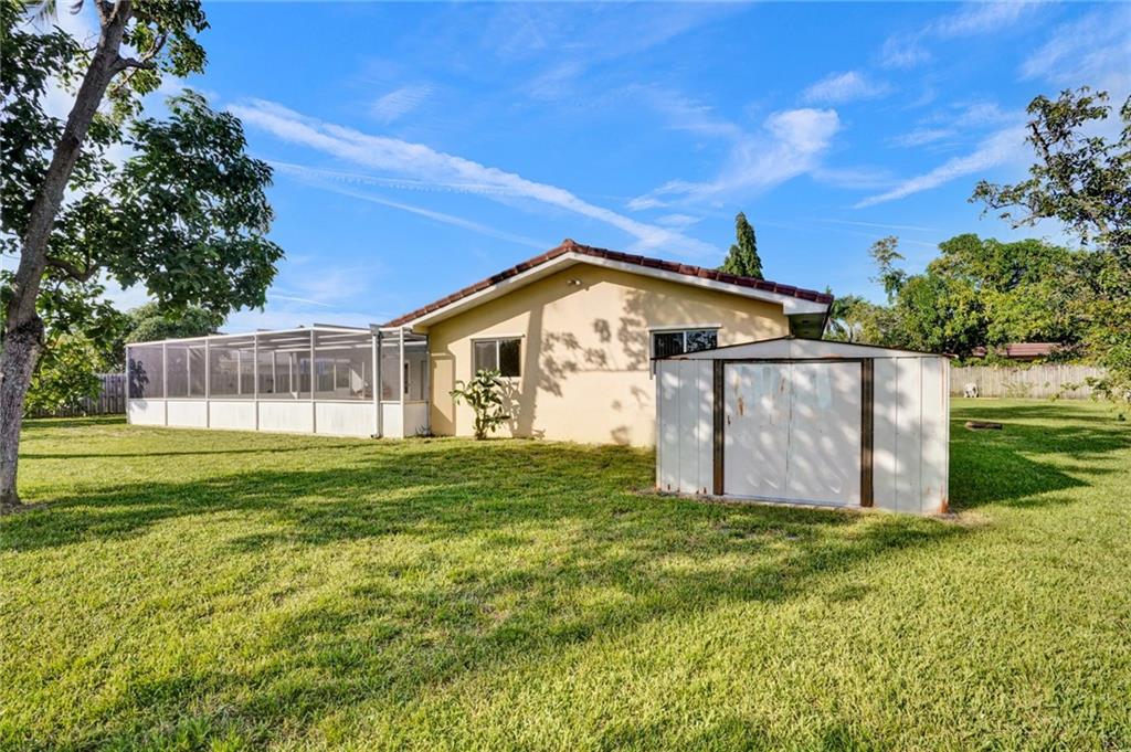 4 bedroom home with pool on a huge lot located in a cul-de-sac. Gorgeous renovated kitchen with hardwood cabinets, granite counters & newer stainless steel appliances. New bathrooms and impact sliding glass doors leading to the patio. Split floor-plan has the master bedroom ensuite with a cabana bathroom on one side of the home and three generous size bedrooms on the other side of the home. You'll find tile flooring in the living areas and Bamboo floors in all of the bedrooms. Huge interior laundry room with tons of storage. Screened patio with pool on a huge fenced pie-shaped lot that features an avocado & mango tree and a shed.. Roof (2003). Come make this home yours. Conveniently located near I-595, shopping, transportation and the airport. NO HOA.