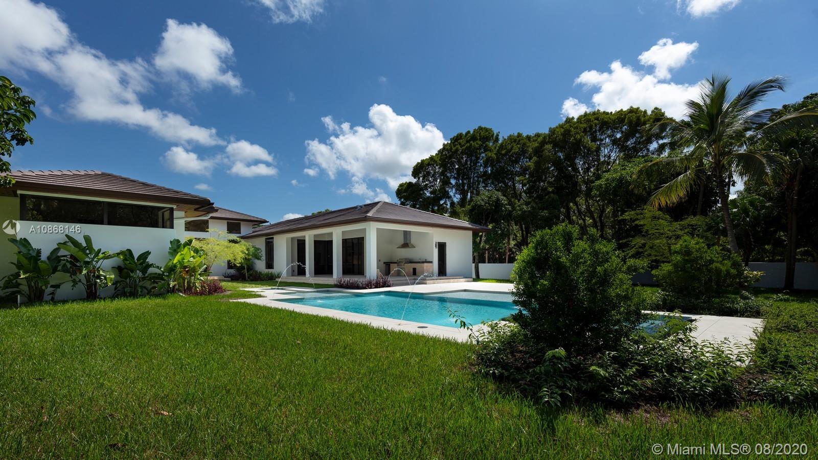 Magnificent New Construction Estate & ready for immediate occupancy in N Pinecrest. Residents will experience ultimate living in this modern luxury 1-story tropical home resting on a 39,770-sqft fully gated & deep lot, showcasing designer landscaping & an elegant water feature at the entrance. Discover a remarkable flr plan w/ oversize porcelain tile throughout and great ceiling height. Designer gourmet kit w/top of the line Thermador appl, hidden walk in pantry, custm-wood cabinetry w/quartz counter tops, wet bar & separate glass wine gallery. An inviting outdr oasis awaits w/an expansive yd w/tranquil reflective pool, water features, jacuzzi, tanning ledge & covered summer kit. Extra Feat: cove lighting, Impact windows/drs, 3 car gar. 1 Yr builder Warr. Premier Pinecrest Schools nearby.