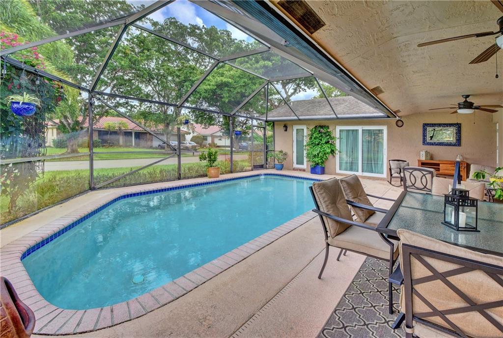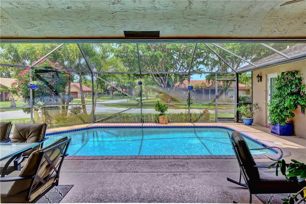 Come fall in love with this beautiful updated 4/2 pool home in Coral Springs. Located on a large corner lot in a lush tranquil cul-de-sac featuring a newly upgraded Xtra long Travertine driveway, this home boasts a big beautiful screened pool and patio for entertaining and relaxing with friends and family. Tiled throughout the updated custom wood kitchen with granite and SS Appliances flows beautifully to the patio and the large family room. Impact window and sliders. Updated bathrooms with pretty white cabinetry, tons of storage and closets. Located close to the Sawgrass expressway, restaurants and shops, schools, medical. Fantastic home won't last long!