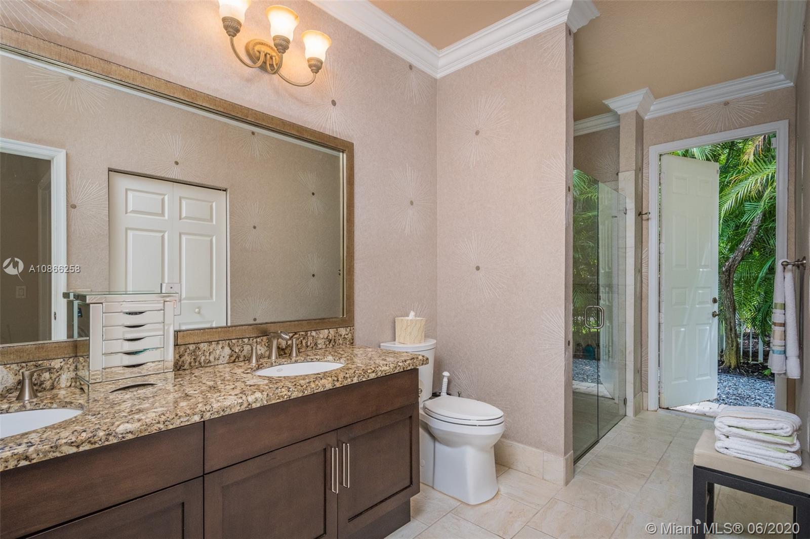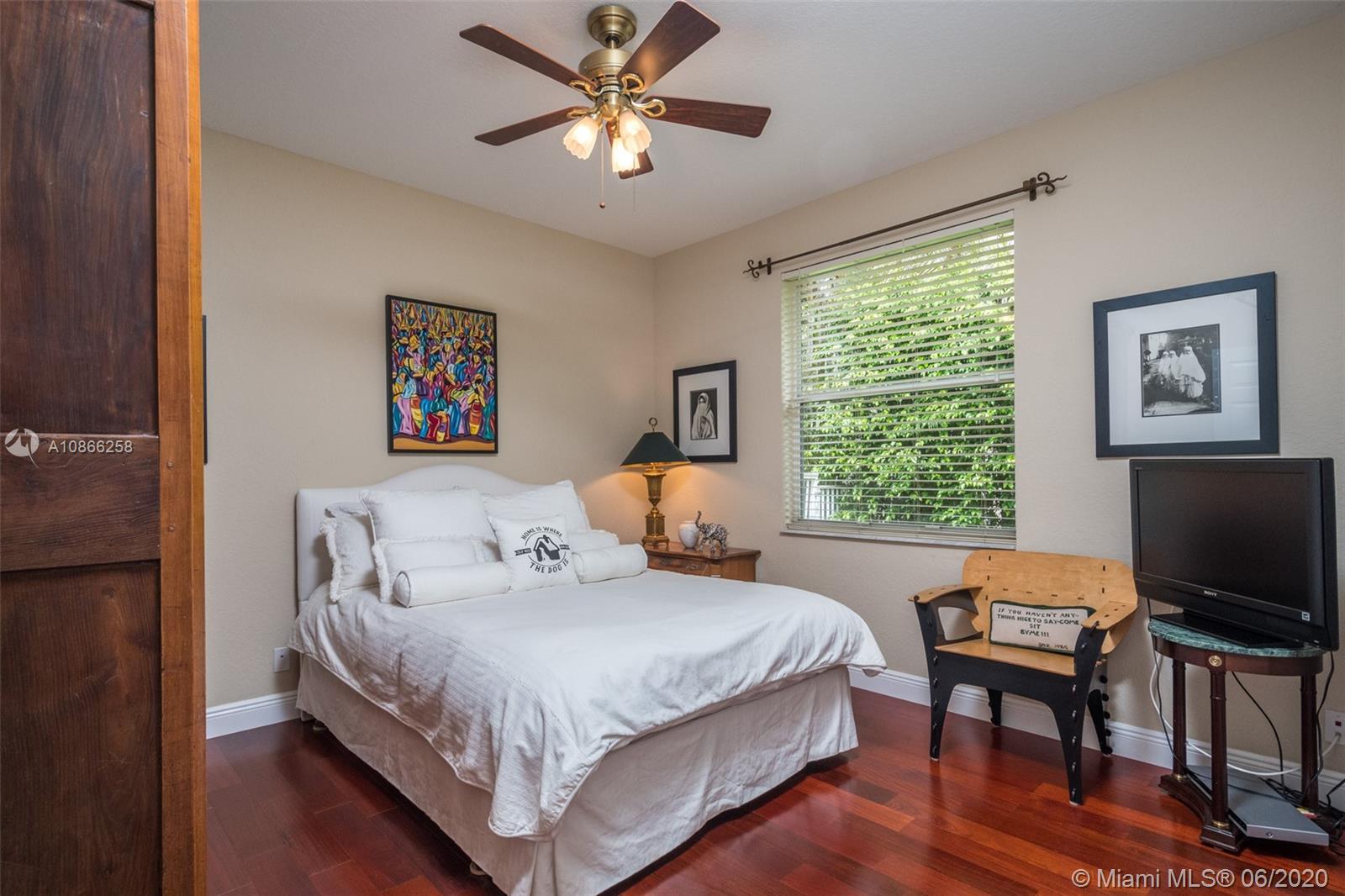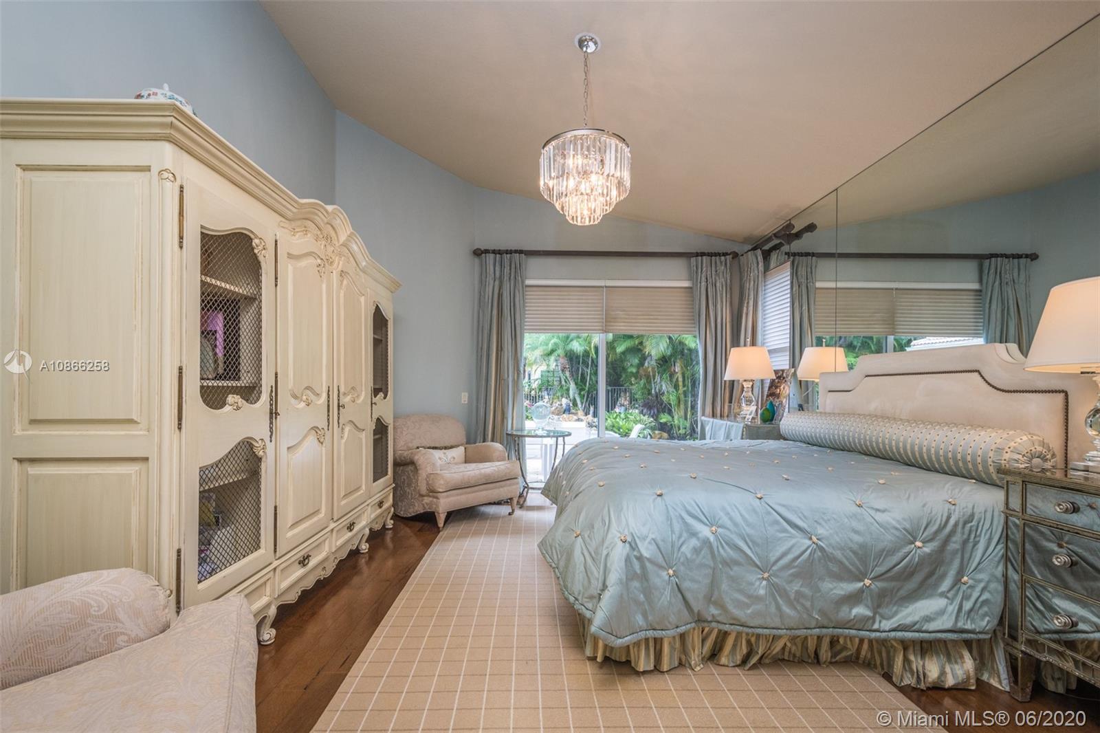 Custom home tucked on a royal palm tree-lined street with a circular paver driveway. Popular triple split floorplan Shows like a decorator model. New Kitchen with top of the line Stainless Steel appliances, granite countertops. Neutral stone tile throughout living areas. Extensive crown moldings, coffered ceilings, stunning custom window treatments, and drapes. All bathrooms renovated. Private fenced yard with a resort-style freeform pool and paver patio. Lush tropical landscaping. Walk to community park. Hurricane protection. Front door impact from Honduras.