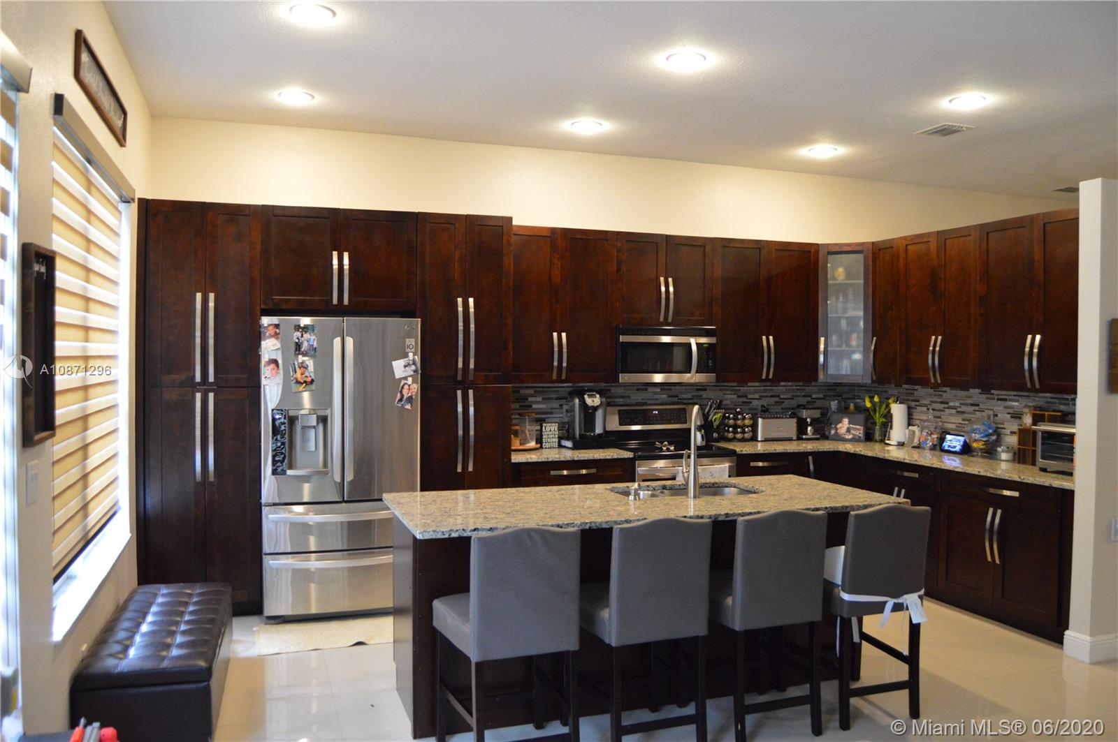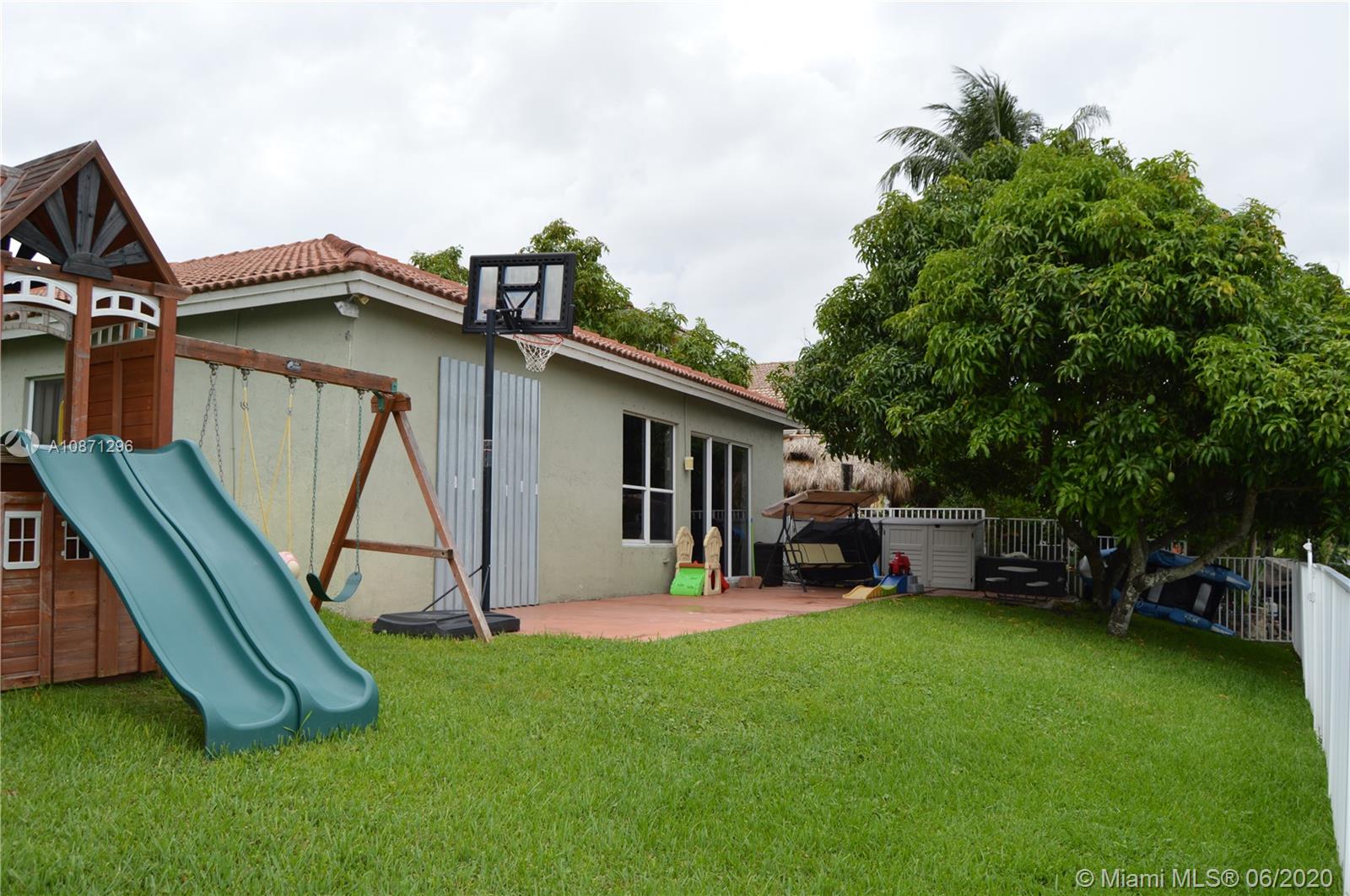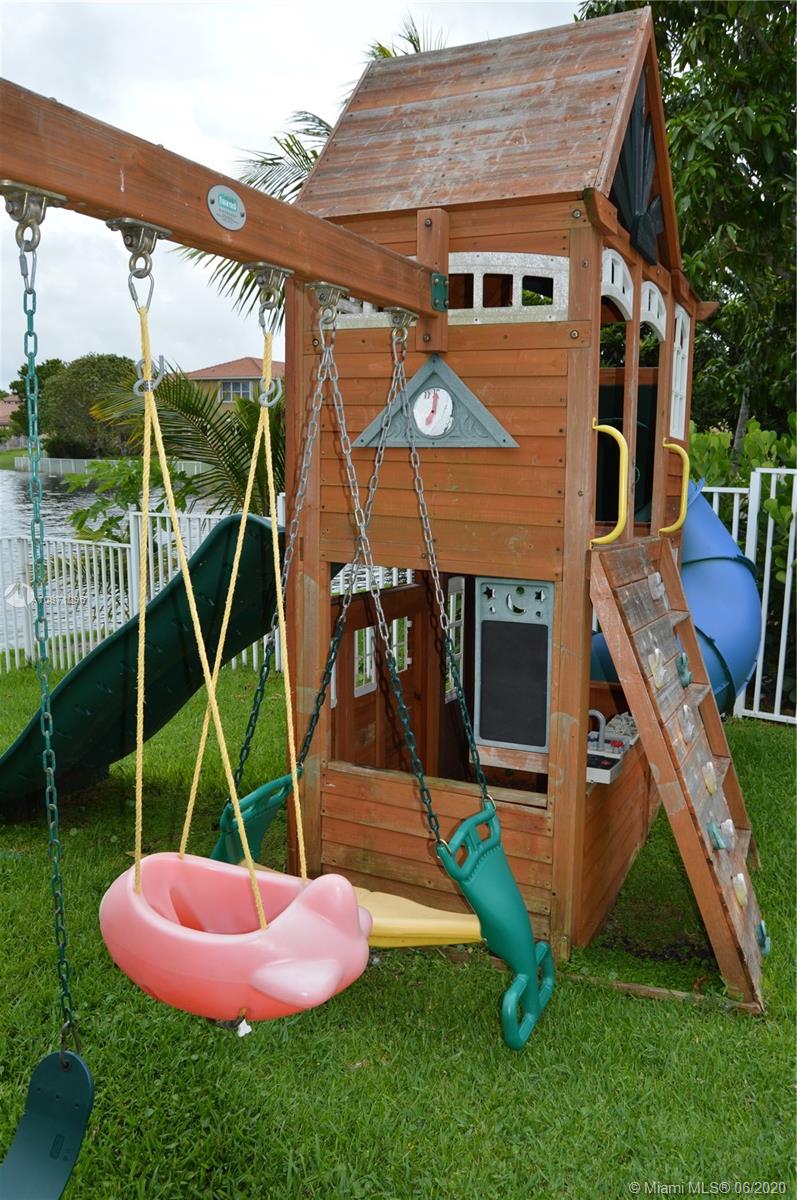 LOVE AT FIRST SIGHT. With so much attention to detail, there is so much to love about this home. This remodeled lake house is perfect for a large family. The home has new large tile flooring throughout and a beautifully remodeled custom kitchen. Enjoy a nice meal from large granite counter-top kitchen island as you enjoy stunning views of the lake. You HAVE to see the sun rises here! Parents will appreciate the awesome, modern custom built closets in 2 of the 4 rooms. These custom closets are designed to make life easier and create more space as it eliminates the need for traditional dressers. Lastly, your kids will love the included backyard playground while you relax in your breezy backyard enjoying delicious home grown mangoes from your very own mango tress. Best value in Monarch Lakes!