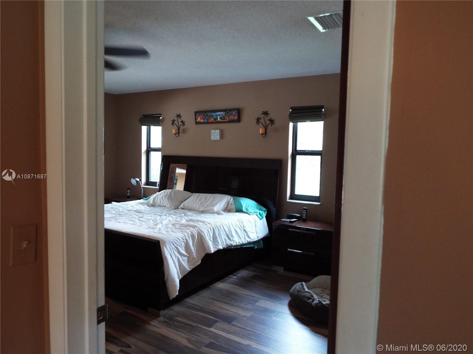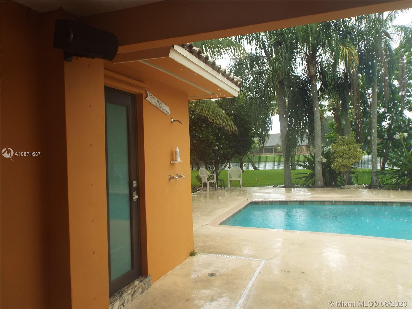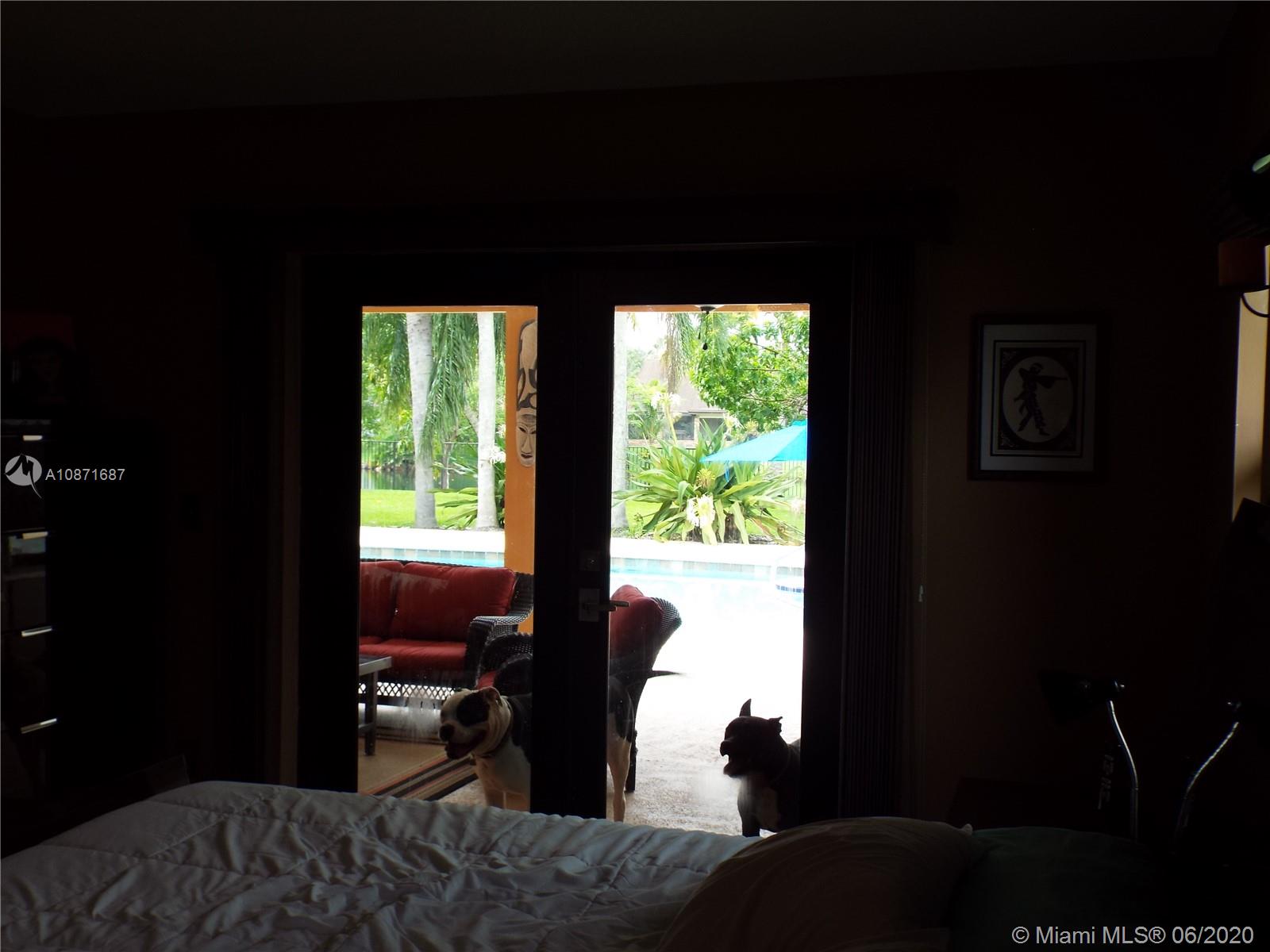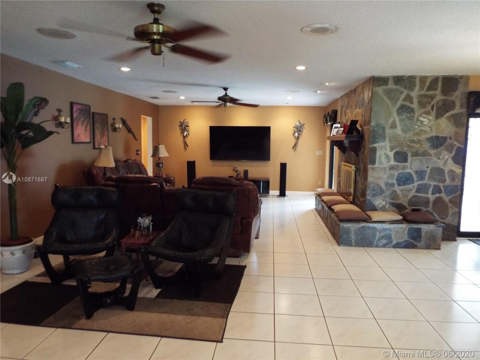 Great Whispering Pines Home. Builder's acre waterfront home. Lush landscaping. New impact windows and doors. A/C unit only two years old and all new duct work. Working fireplace. Lots of closets for storage. Perfect entertainment home with large pool, built in bar in the living room, large covered patio with built in grill, lush landscaped backyard with fruit trees and amazing palm trees. Fenced yard and a lovely view of the lake in the backyard. Priced right to sell fast.