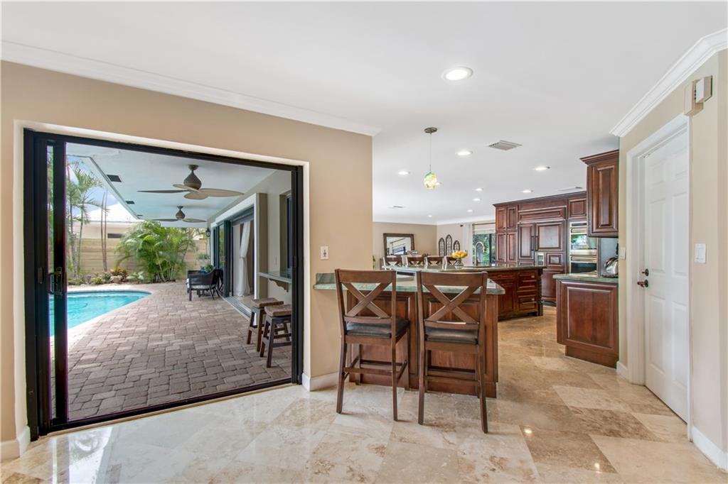 A Boater's Dream! Bring your 120 foot Yacht! Over 120 linear feet of dockage, a protected cove from the Intracostal waterway, a great turning basin & only one neighbor. This is literally the best waterfront location for a large boat in East Fort Lauderdale... and the home is perfect! Enter this 3 bedroom, 2 bath pool home and your are greeted with an open floor plan, expansive designer kitchen with huge island for entertaining, Sub Zero refrigerator, wolf gas burning stove, two sinks, custom counter-tops & more. Split floor-plan is great for privacy, open family room, marble floors throughout & all bathrooms finished tastefully. Impact glass with triple collapsible sliders, brand new AC and Duct system, newly pavered walkways and pool deck, summer kitchen and located on a corner lot!