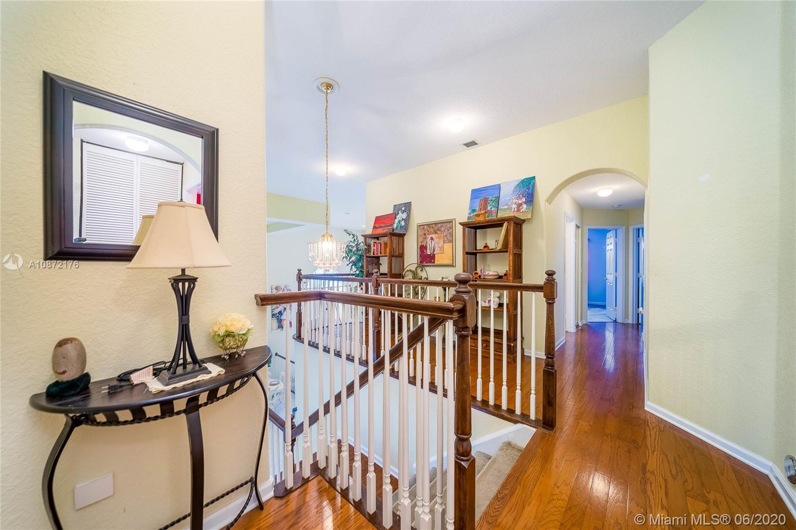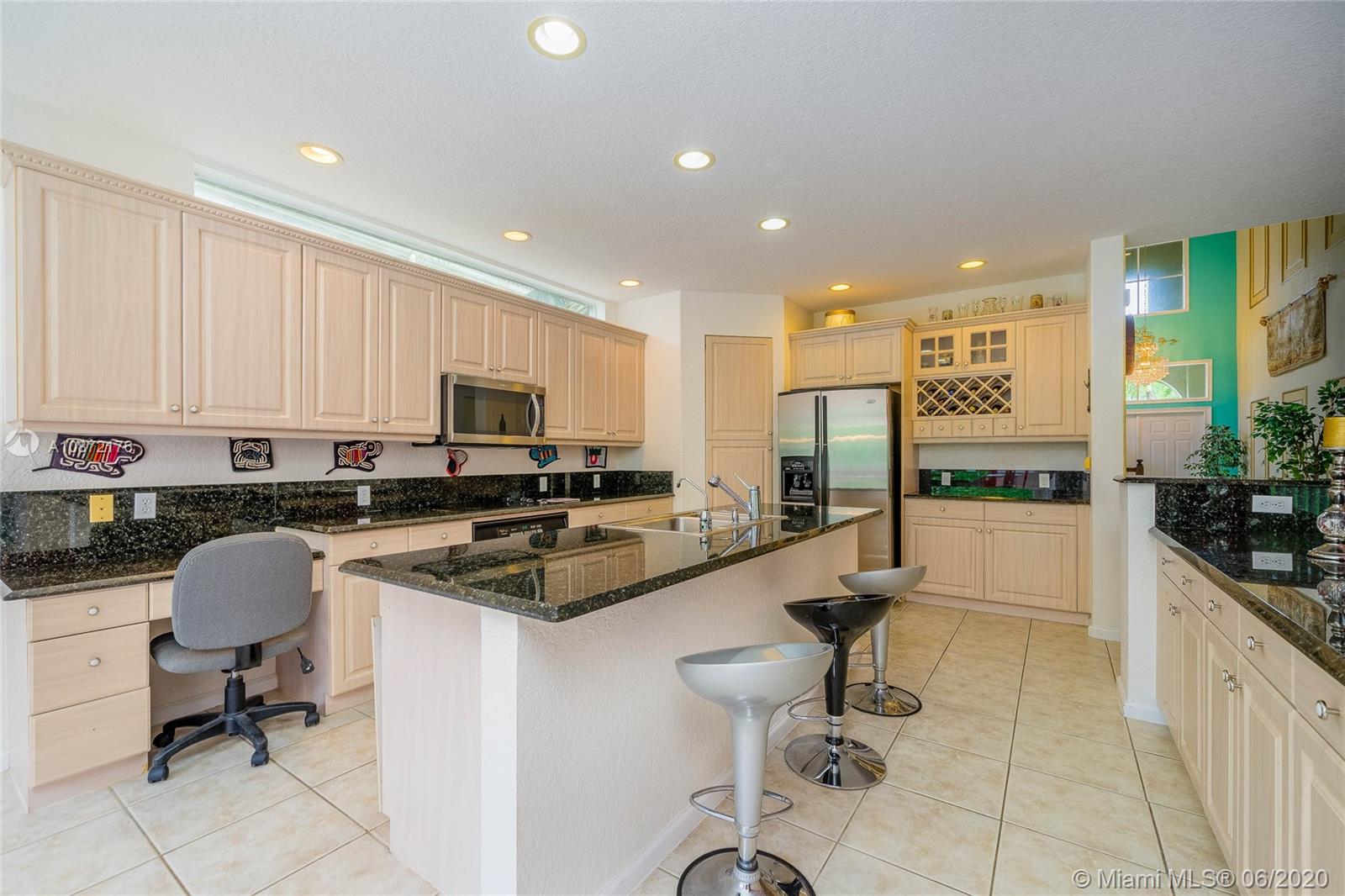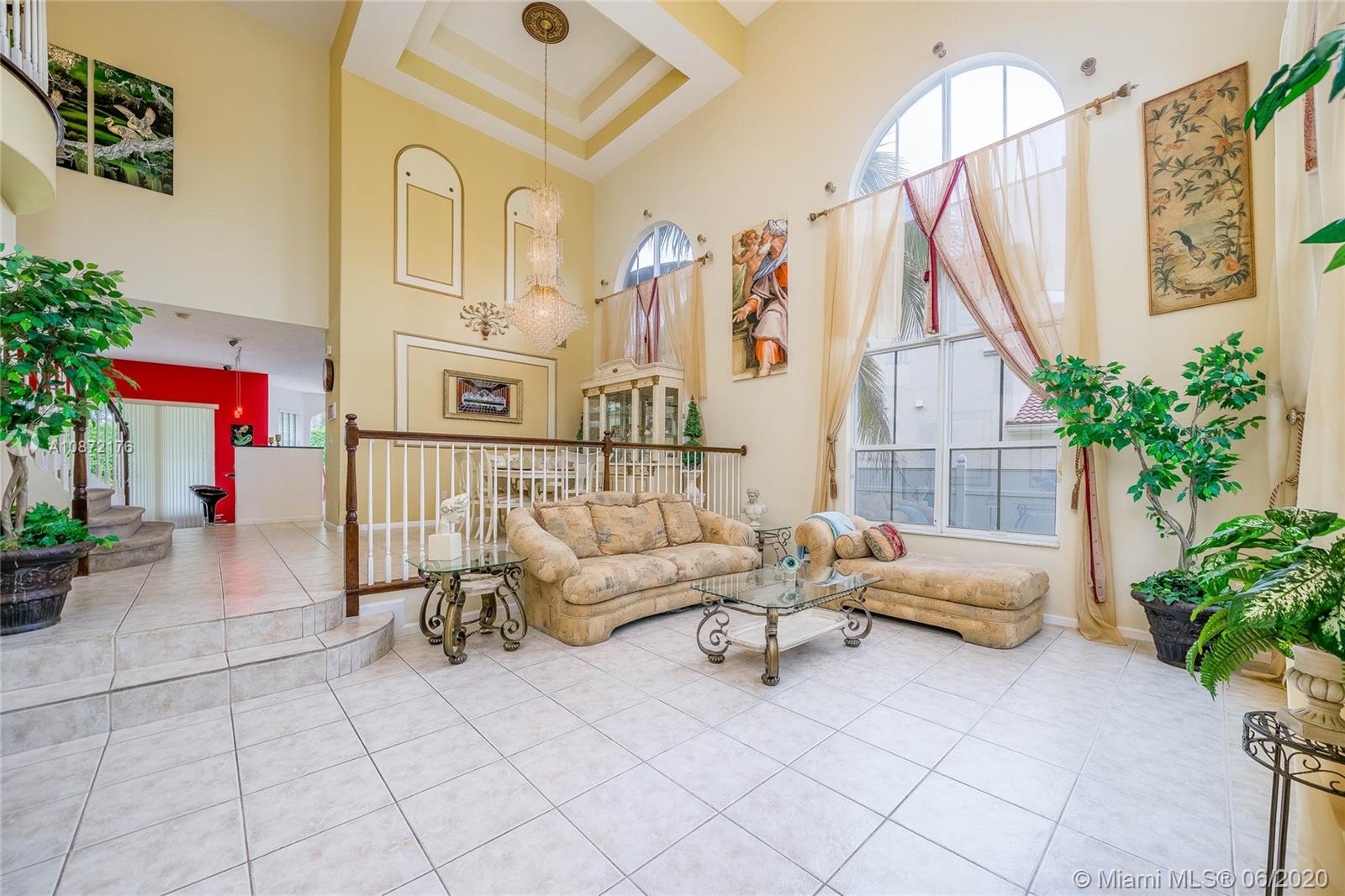 Enormous 6/4 w/office in sought after Rivera Isles! Impressive front, french door entry to the grand formal living & dining areas w/dramatic vaulted ceilings & large windows offering lots of natural light. Massive kitchen, w/breakfast nook offering a garden view. One full bedroom, office & cabana bath conveniently located on the first floor. Laundry room w/storage closet. Curved staircase leading to the expansive master suite, w/all bells & whistles, sitting area, walk in closets,open balcony & bathroom. Bedrooms 2 & 3 share a jack & Jill bathroom. 2 additional bedrooms share a bathroom. Excellent & very comfortable floor plan. Perfect for a large family. Backyard w/Built in grill, Hurricane shutters. Great amenities, including guard at the gate, community pool, club house & exercise room.