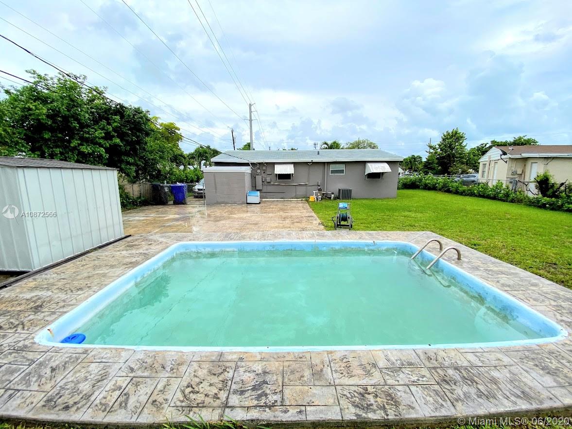 A rare find on East of I-95 in Hollywood. It is one cozy and well taken care of home on a massive 7K plus sqft lot, with an inground pool that has a poolside slab - big enough for a Tikki Hut and a BBQ. This house was renovated/upgraded not too long ago with an open kitchen concept, tiled floors throughout, central A/C, ducts & vents, bathroom, modern windows, and the roof. To the back of the house is one, good size, storage-tool room with outside access, in addition to storage, the aluminum storage shed conveys. Recently, the seller planted 150+/- Clusia's along the fence perimeter for future privacy. Enjoy the ownership of a priced right property, comfortably located a short drive- bike ride to the beach, highways, businesses/attractions, in a family-oriented, serene neighborhood.