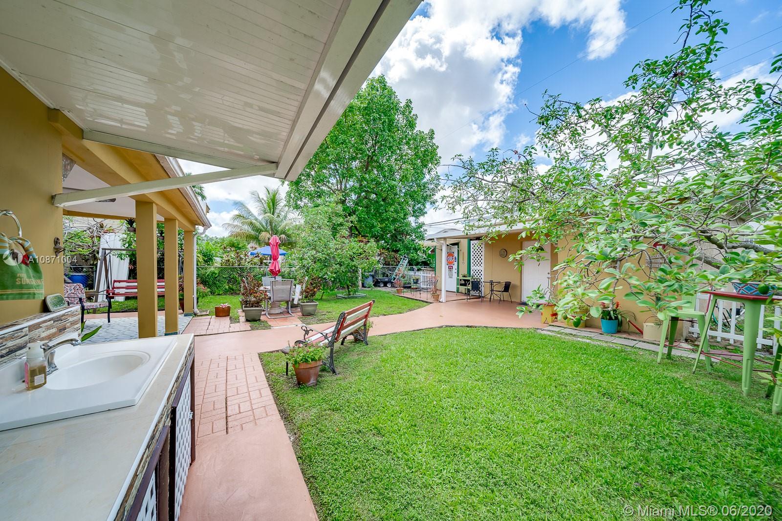 Welcome home to this meticulously maintained 4 bedroom 3 bath Spanish Mediterranean home. As you walk through the front gate you are welcomed by a beautifully landscaped small court yard with a sitting patio area. Tile throughout the entire home, eat in kitchen, huge walk in master closet and so much more. Comes complete with an upstairs in-law quarters, 3 bedrooms 1 bath, tile throughout and full kitchen. French doors from the in-law quarters living room opens up to a quaint open terrace Plenty of room for entertaining in your tropical oasis fenced in backyard. Fruit trees to include mango, avocado and a small fenced in garden ready for you plant seeds. Concrete and wrought iron fence enclosed property with automatic entry gate Roof replaced 2016 Both AC's replaced in 2014.
