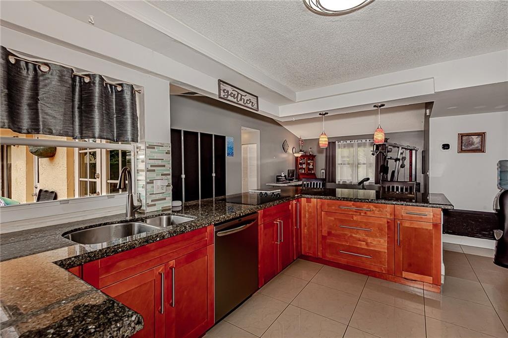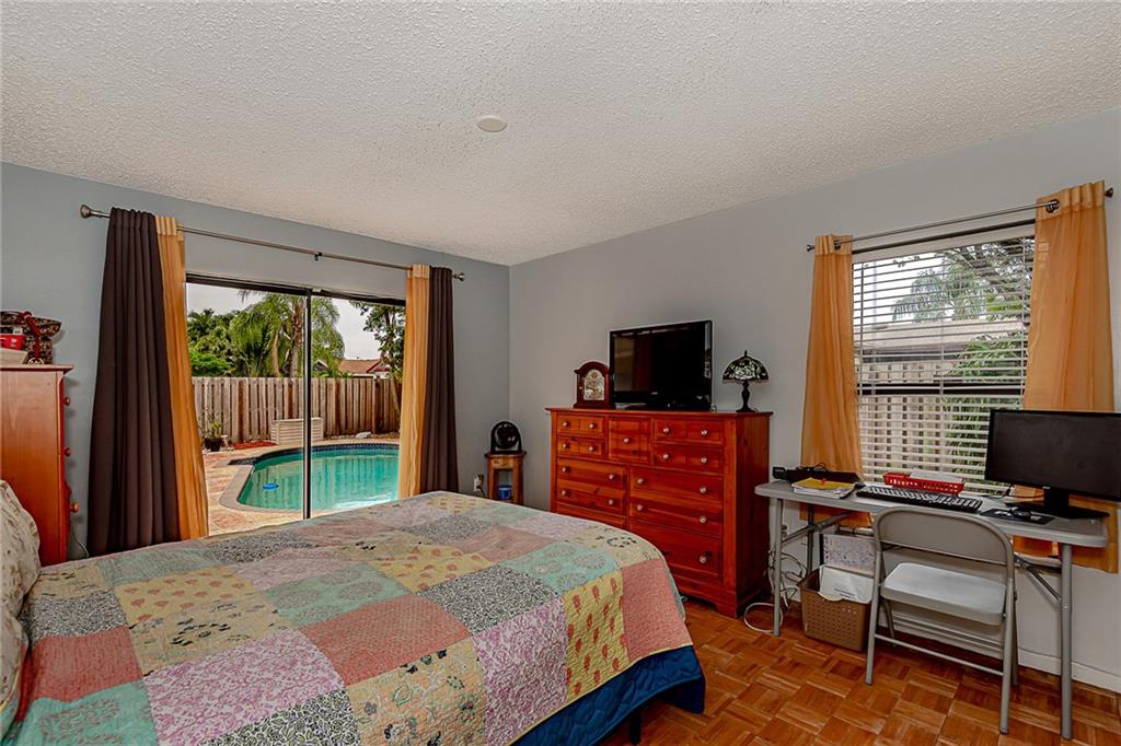This desirable Hills of Welleby pool home with over 1800 sq ft of living space is the perfect family home, featuring vaulted ceilings, a split floor plan, an inviting swimming pool with huge deck, ample storage space, large bedrooms (master has walk-in closet), & a great backyard (mango/ avocado trees)! Beautifully remodeled modern kitchen completed in 2018 with shaker-style cabinetry, granite counter tops, a breakfast bar, built in oven, electric cook top, large pantry, & newer stainless steel appliances. Larger floor plan features a formal dining area & formal living room, plus additional family room. Tile floors throughout with parquet wood in bedrooms. Garage shows as a separate office space & HUGE laundry/ storage room; both with AC! AC & water heater both new from 2017. A must see!