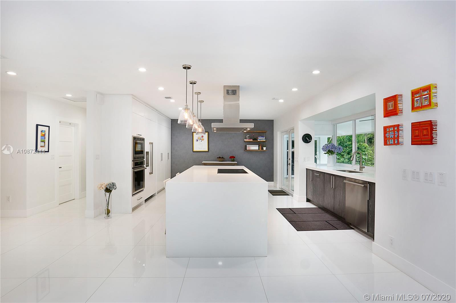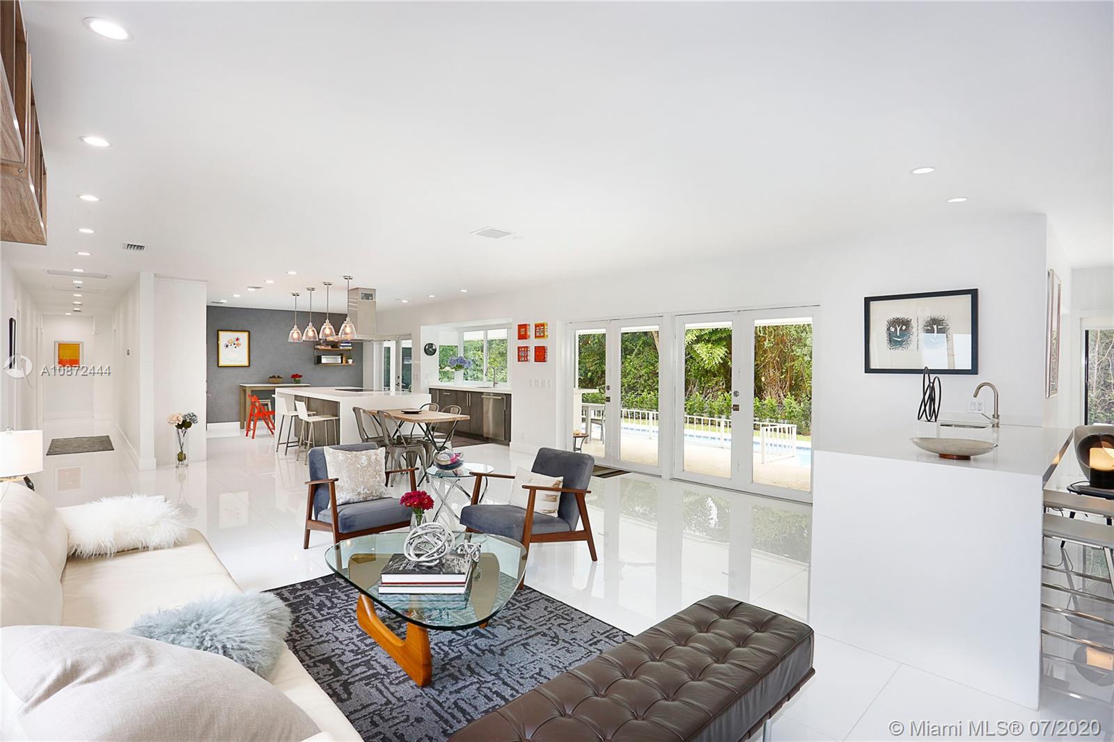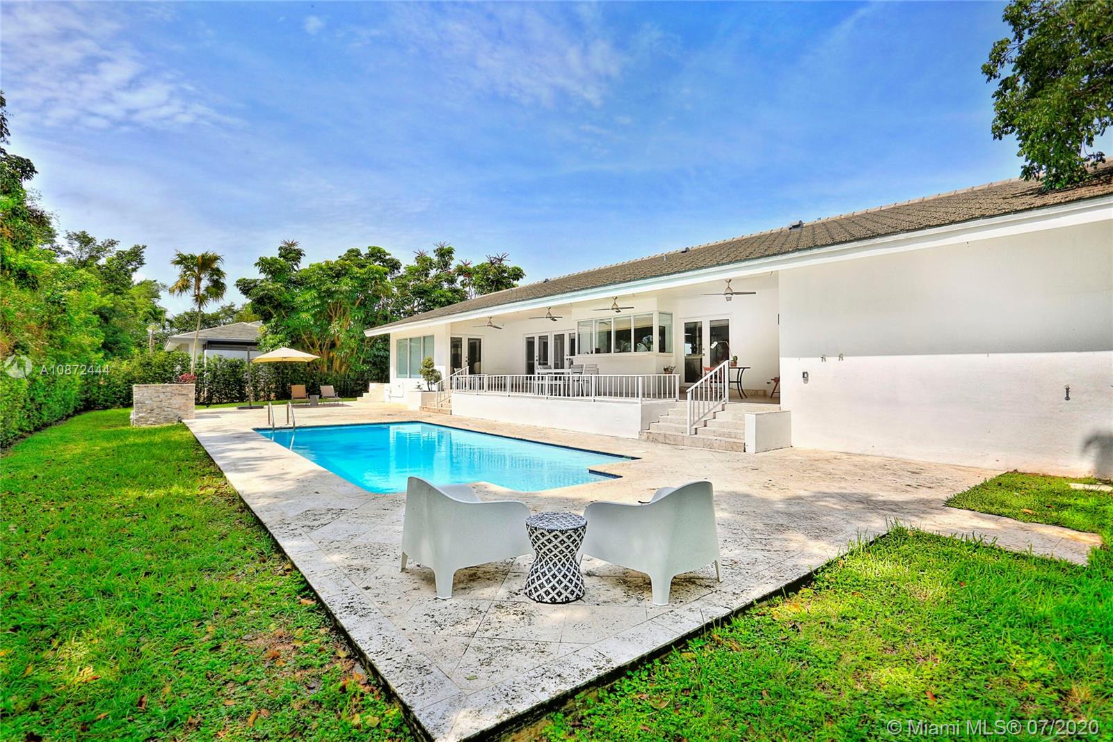 Completely renovated modern home on private Coral Gables cul de sac. Redesigned in 2017, this Smart home offers high ceilings, sleek porcelain tile floors, new roof, & impact doors & windows. Spacious open floor plan features a living room with wet bar & wine cooler facing the pool, dining room with access to the beautiful solarium, family room & breakfast area. Gorgeous chef’s kitchen with oversized cooking island, Thermador appliances & 2nd seating bar area. Featuring a lux master suite with seating area, French doors to patio, walk-in closet, & bath with tub & shower, & 4 guest bedrooms with 2.5 baths. Upgrades include 2 new ACs with Nest thermometers, cameras & mosquito SWAT system. Lush backyard with pool, huge covered terrace, & 2-car garage with electric car charger.