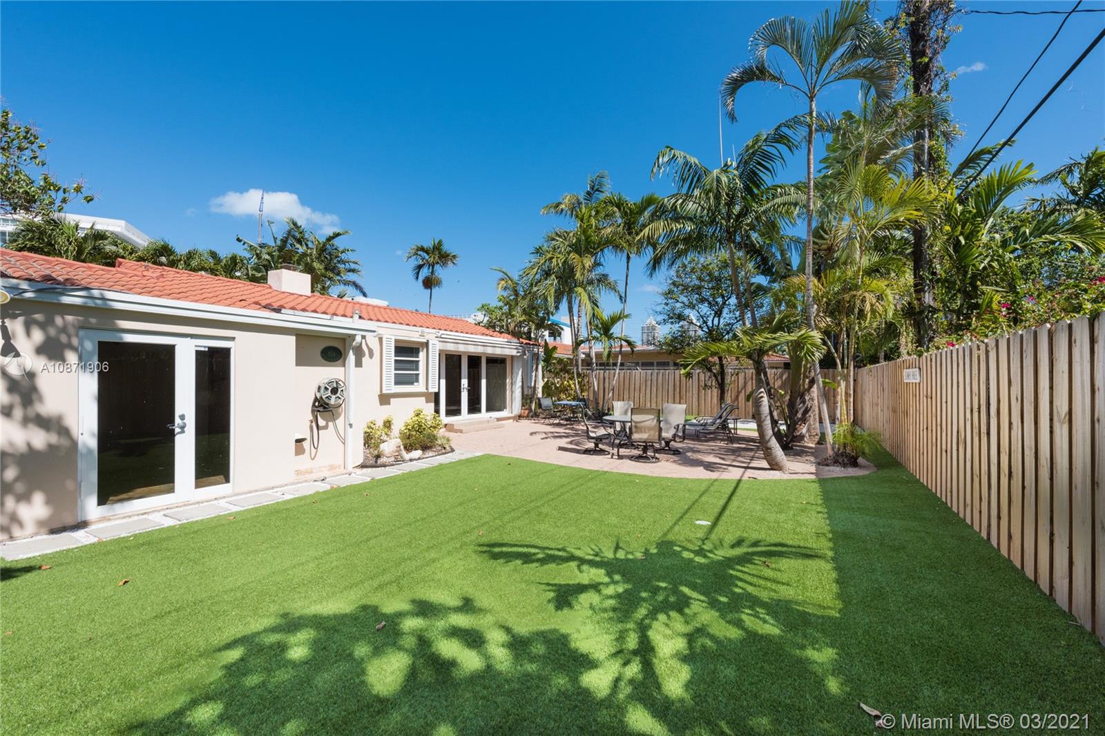 One of the lowest priced single-family homes in Miami Beach! This charming and clean 3Bed 2Bath home has an expansive backyard with sitting areas under tropical palm trees, a mini basketball playground, and a new wood fence for total privacy. This is a great deal! Home is located centrally on quiet W 47th Street with beautifully landscaped exterior and newer driveway with parking for 4 cars. Renovated kitchen, living room with beamed ceilings and a fireplace, dining room, family room, Saturnia and parquet wood floors throughout, and laundry room. Exterior front landscaped with tropical landscape and fruit trees!