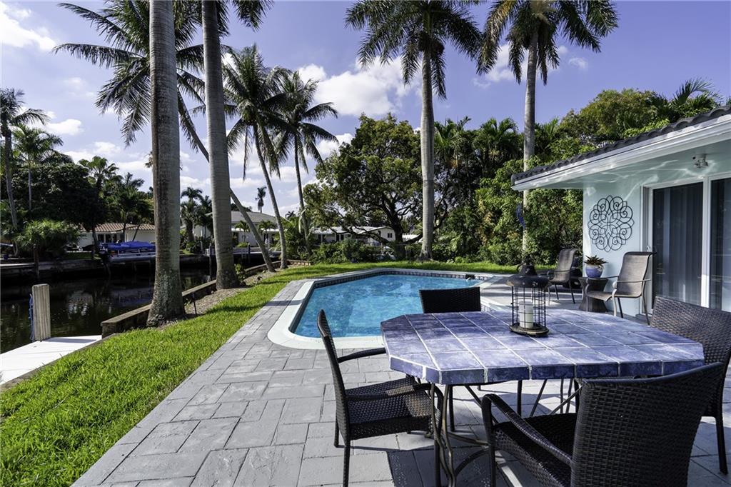 This Beautiful Waterfront & Pool Home has 3 Spacious Bedrooms and 2 Bathrooms situated on a Corner Lot. 135ft of Waterfront with Direct Ocean Access. Open Dining Area and Kitchen with Stainless Steel Appliances, Solid Wood Cabinets, Granite Counter Tops all Overlooking the Pool and Water Views. Roof was recently Cleaned, Sealed, and Painted. 2 Car Garage, Fully Fenced in Yard, and Majority of Home is Impact Windows and Doors. Perfect for Outdoor Entertaining with a Lounge Area and lots of Greenery. Seller had plumbing pipes redone 7/1/20.