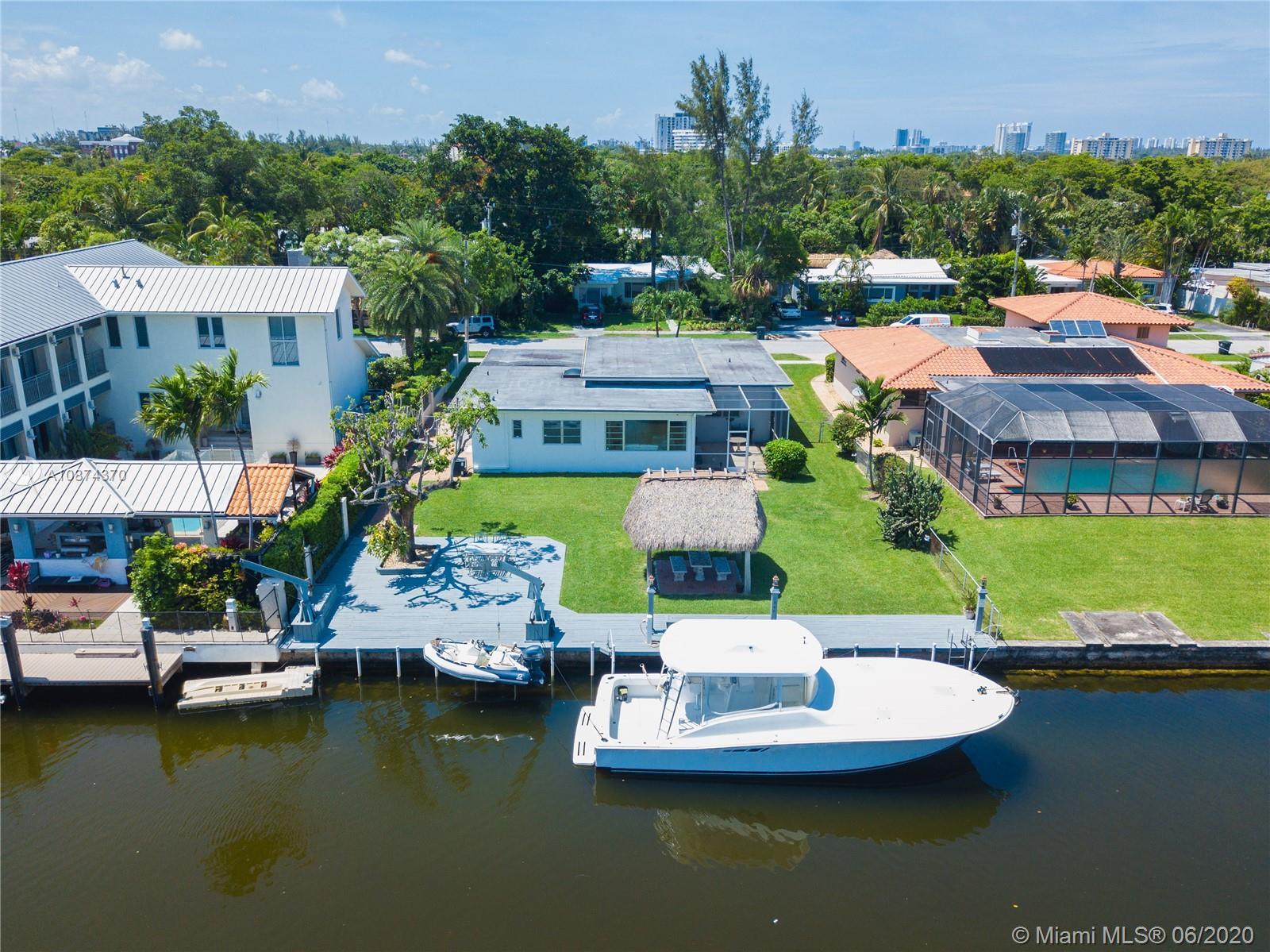 Located in Keystone Point, this 3 bedroom 2 bath 1950's styled waterfront home is on one of the larger lots in the community of 11,250 sq ft and can be remodeled to buyer's taste. This home has tons of natural light, 12 ft high ceilings, with a nice open floor plan featuring large kitchen with breakfast bar, electric fireplace, and open living/dining room. Both front and backyard are beautifully landscaped. You can dock your boat behind your home on this 75 ft dock and be at Haulover sandbar/outlet in minutes. Very close to Bal Harbor shops, restaurants and much more. No association fees, on a quiet street, and 24 hour guard gated community! This property is ideal for a buyer looking to move in, tear down, or remodel.