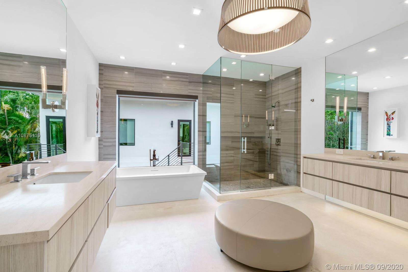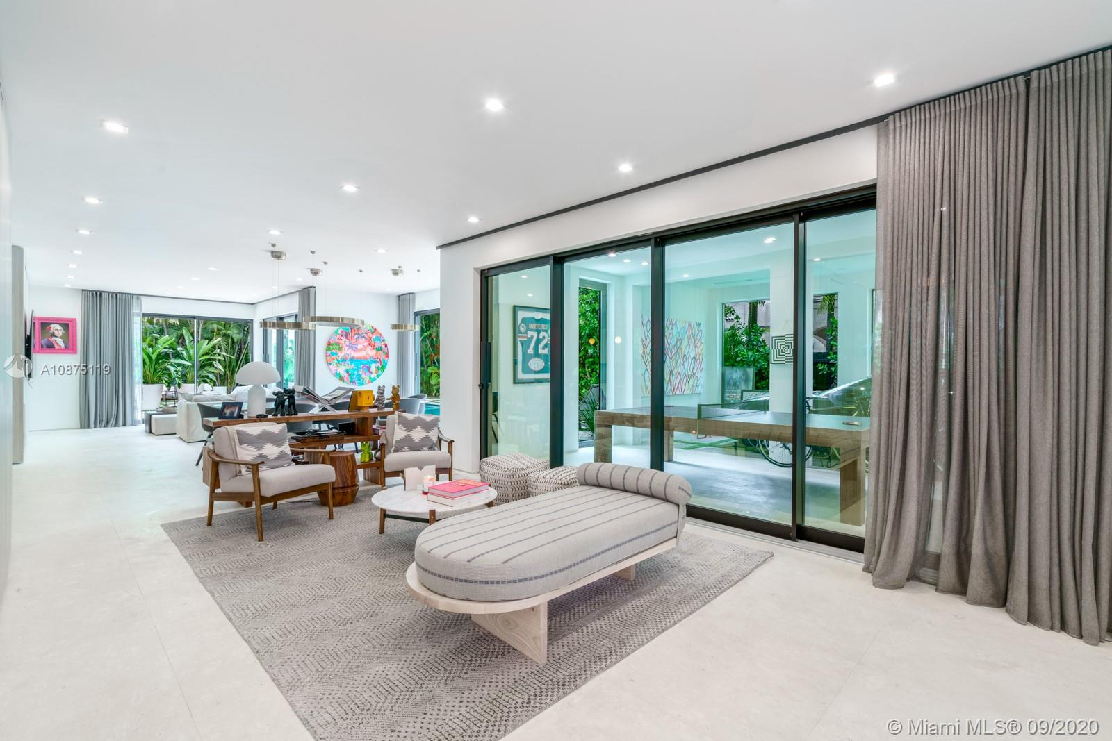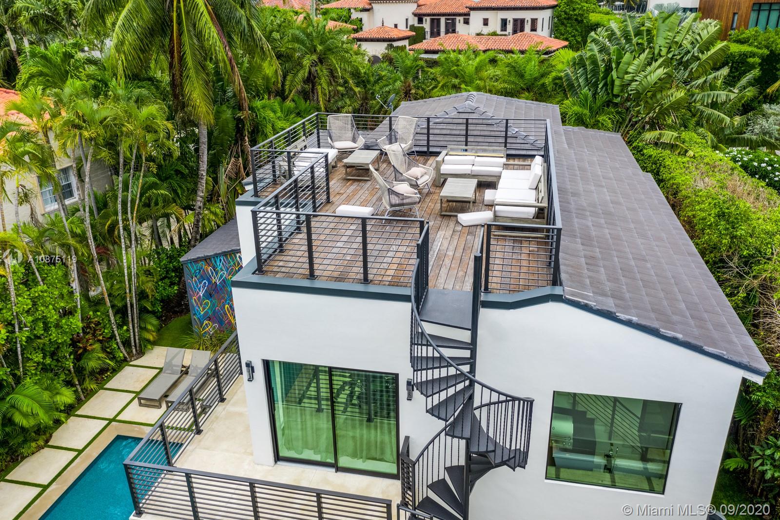 Newly gut renovated by Shear Construction. A gem in the heart of the most desired area in Miami Beach. Over 4,000 SF of lavish living space allows to fabulous entertainment areas, top of the line open format kitchen space, wood wall paneling throughout, a “showcase” glass enclosed garage and a special outdoor/indoor feel. 3 suites upstairs including an oversized master bed/bath with terrace and access to the furnished rooftop deck. Continue outside to the separate guest quarters featuring a large bedroom suite on second level complete with its own kitchen. Below, slide open the “day lounge/nightclub” outfitted with a massive wet bar, DJ booth and full bathroom. This space fully integrates with the outdoor lounge area and heated oversized pool and built in BBQ area.