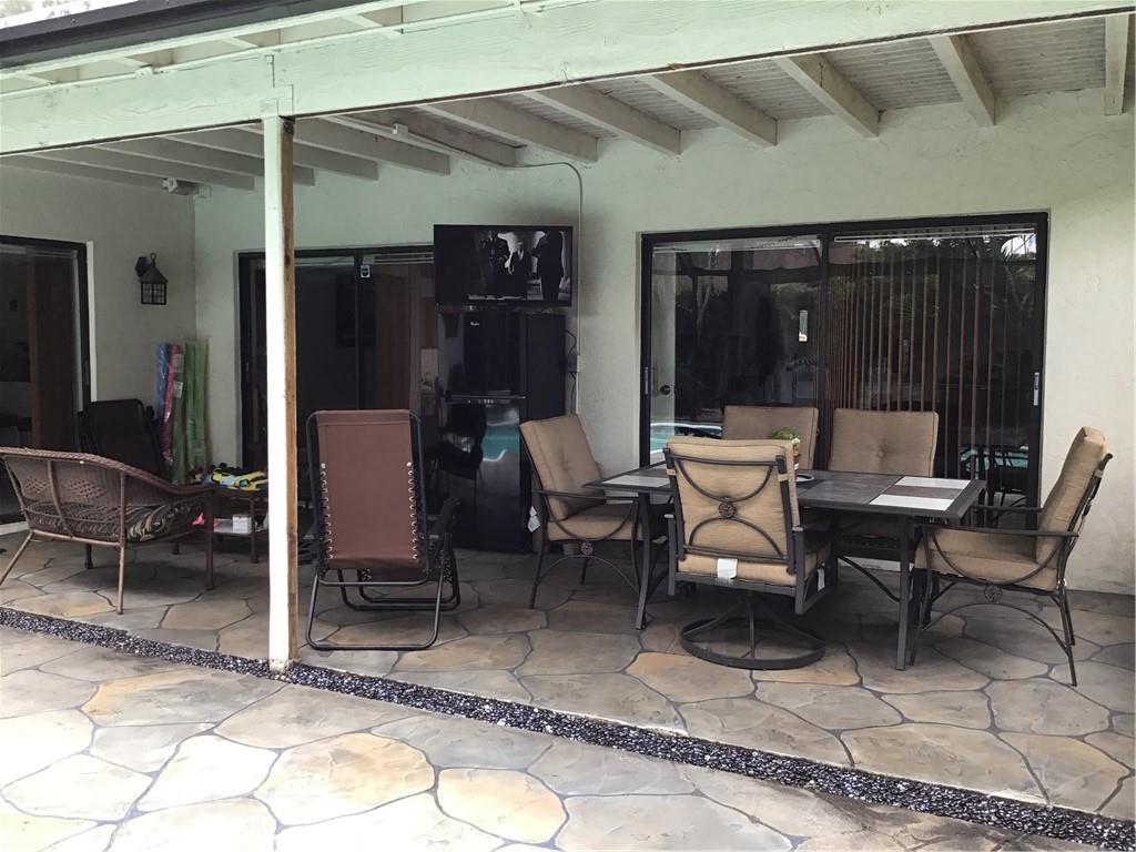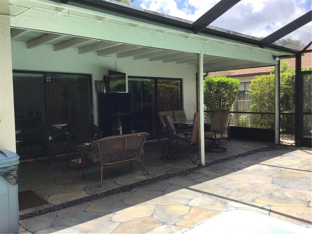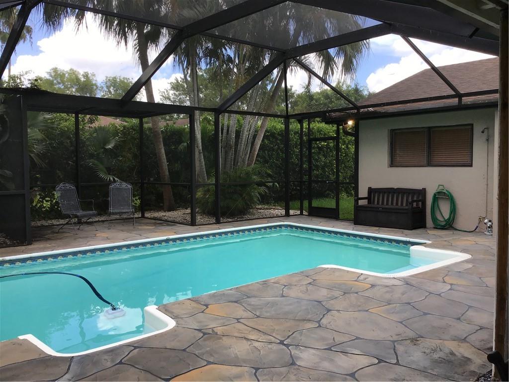 4 BR 2 BA pool home in beautiful neighborhood with no HOA fees. AC, duct work, attic insulation, pool cage, pool liner, whole home water filtration system and hot water heater installed/replaced in 2019. 3 double sliders + pool bath lead out to an inviting outdoor space with lush landscape, covered patio with TV and beverage refrigerator. 8 foot billiard table and mounted TVs in 3 bedrooms included. Oversized washer/dryer included. Lawn sprinkler system uses ground pump and does not impact water bill.
