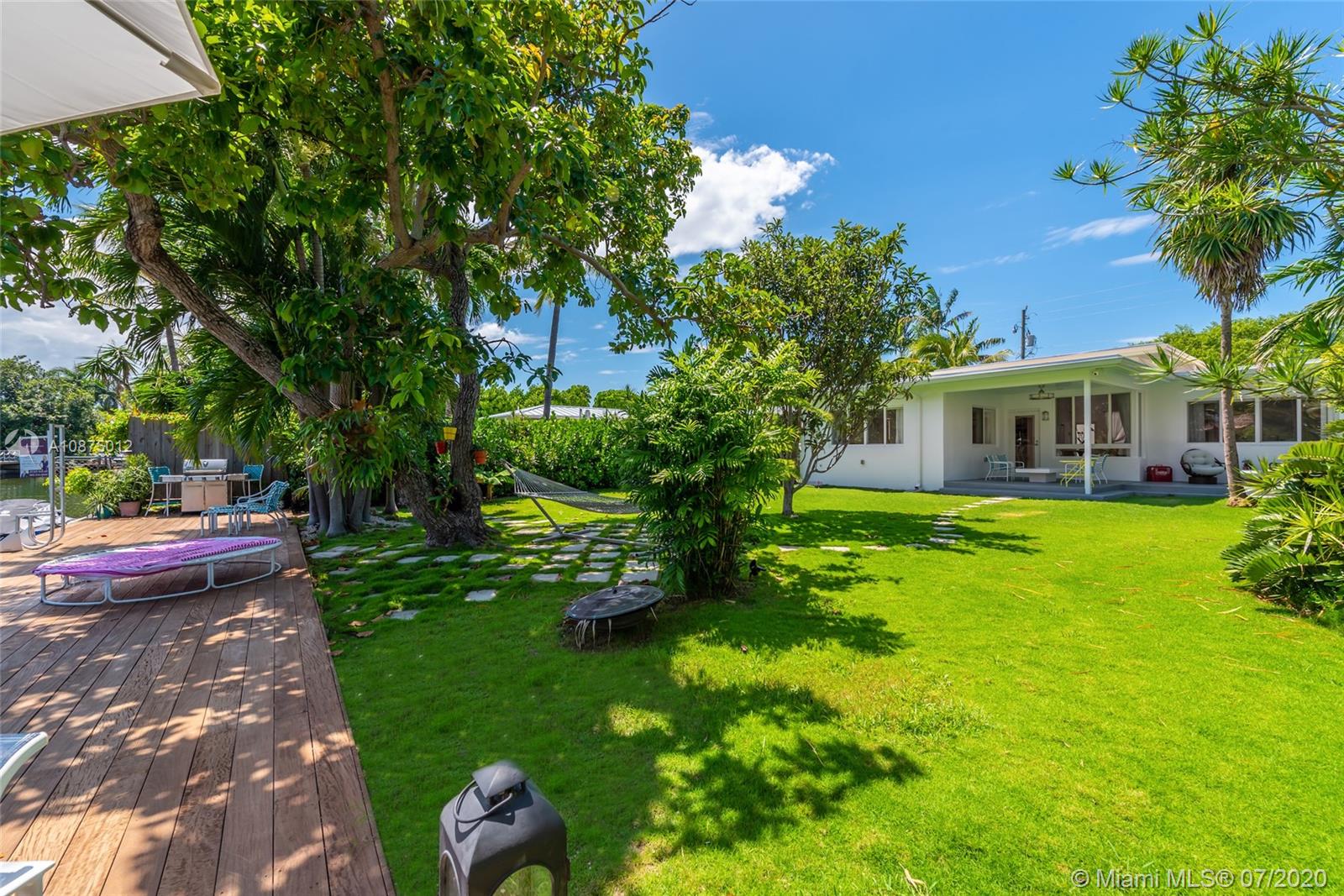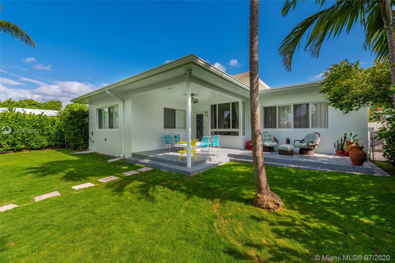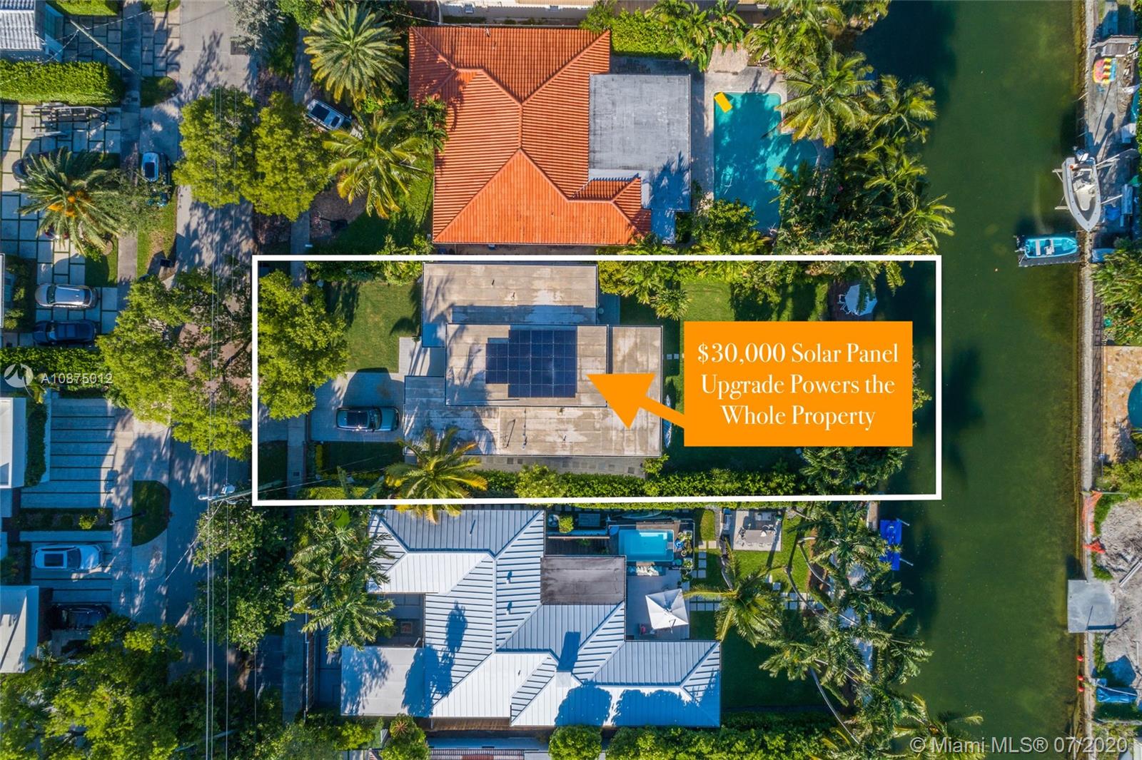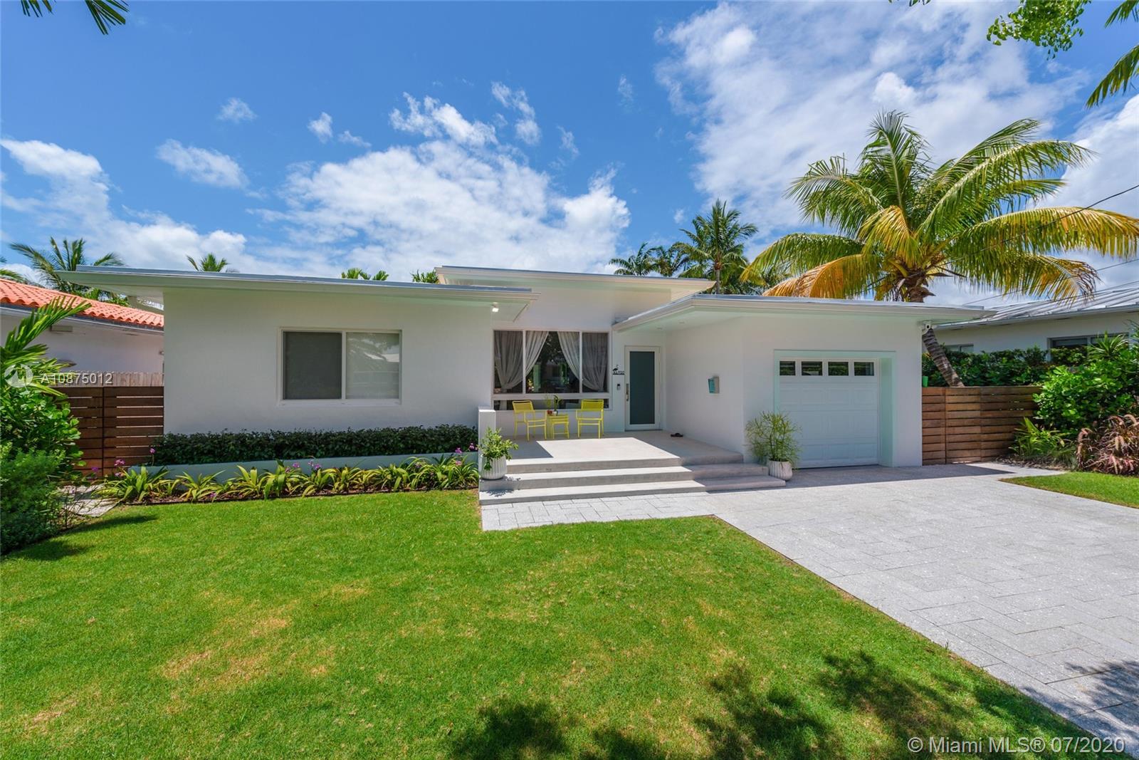 Fully renovated stylish Mid-Century Modern home with 60' ft of water frontage on Gated Biscayne Point. Beautifully designed 3 bed / 2 bath residence with high quality finishes, polished terrazzo floors, high ceilings, oversized impact windows/doors & stunning contemporary gas kitchen. Tired of high electric bills? Owners installed $30K Solar Panels keeping costs incredibly low. Spacious master suite includes a spa-like bath with separate shower / tub, custom window shades & California closets. Additional features are cove recessed lighting, water purification system, separate utility room, 1 car garage, covered patio area & outdoor shower. New Ipe fencing / outdoor deck + recently reimagined exterior landscaping / pavers for a true private Tropical Oasis feel.
