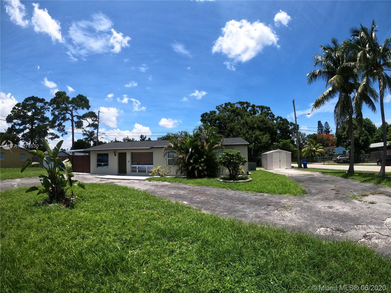 Beautiful TURN KEY home. CORNER LOT! COMPLETELY UPDATED converted into a smart home. You name it, this house has it. 3 BEDROOMS 2 BATHS HOUSE!! CEILING FAN IN EVERY ROOM. PROPERTY HAS TILE FLOORS THROUGHOUT. LARGE KITCHEN WITH BEAUTIFUL WHITE CABINETS AND GRANITE COUNTER TOPS. NEW APPLIANCES, OUTSIDE SHED FOR STORAGE. ENOUGH DRIVEWAY TO PARK 5 CARS. RECEDING LIGHTS THROUGHOUT THE ENTIRE HOUSE. BATHROOMS AND MASTER ROOM HAS DIMMERS WHEN YOU WALK IN AND OUT, LUTRON LIGHT SWITCH AND CONNECTED TO GOOGLE HOME, ALEXA. FRESHLY PAINTED. WASHER AND DYER WITH STORAGE. EXCELLENT LOCATION NEAR FORT LAUDER DALE AIRPORT, SHOPS AND MAJOR HIGHWAYS! QUITE NEIGHBORHOOD.