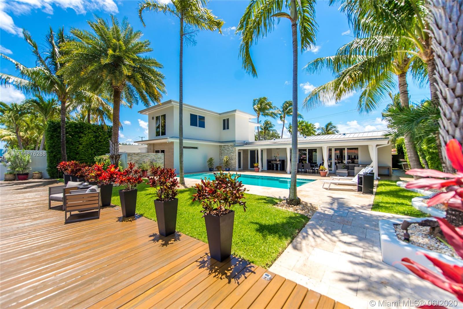 Enjoy the ultimate in waterfront living in this Spectacular Mid-Century Villa in Keystone Point. Tastefully renovated w/ top-of-the-line finishes, features include marble floors, a custom kitchen upgraded w/ Bosch appliances & a luxurious master suite overlooking sparkling pool w/ white marble br & huge walk-in closet. 4BR/3BA & office/media rm downstairs + 2nd floor apt w/ 2BR/1BA; perfect setup for home office or guest quarters. Step outside into your private oasis w/ salt-water heated pool & lush tropical landscaping. An outdoor grotto shower leads to the master br. New marine dock & gorgeous underwater lighting. Smart Home System, impact windows, metal roof. Sitting on a wide canal with 75’ on the water & no bridges to the bay, this is a boater’s paradise! Sunset cruise anyone?