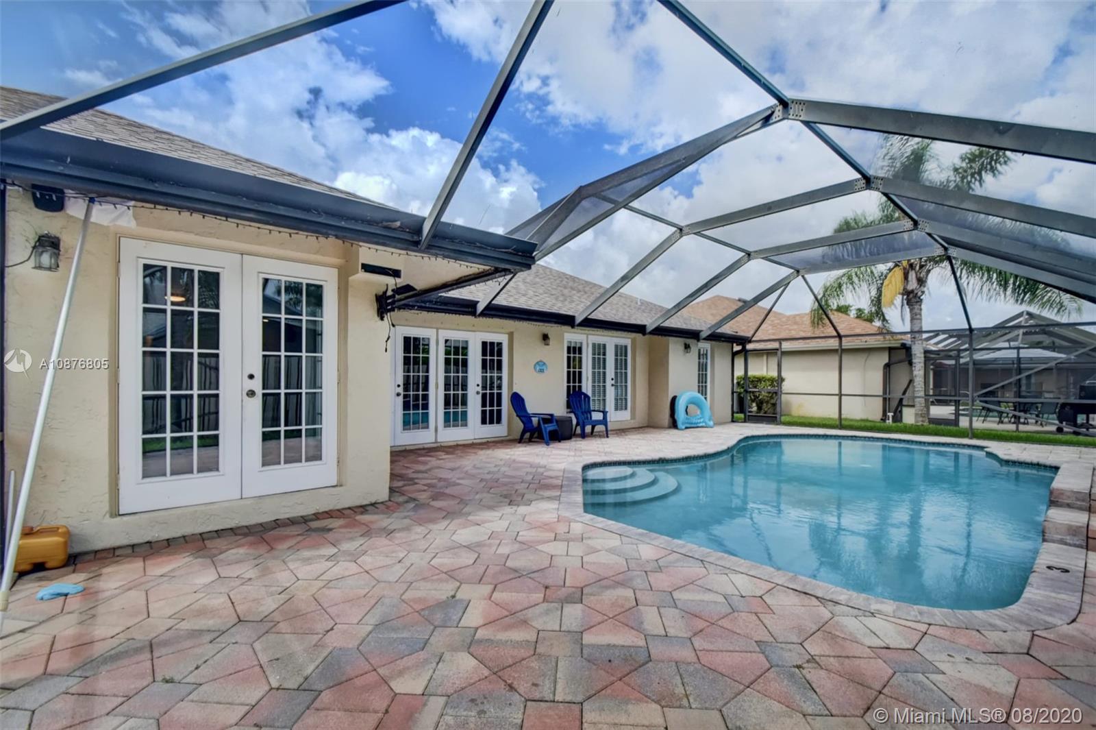 Barrington at Boca Chase. Welcome home and relax in this 1 story, 4bedroom, 2bathroom pool home with a spacious 2 car gar. This home features an open floor plan, formal dining, large family room area. French doors bring in lots of natural light & lead onto the screened-in sparkling blue saltwater pool & patio area. Quiet interior lot w/minimal traffic and a close-knit pet-friendly community. Low HOA fee $105 w/basic cable included, tennis courts, + walking paths. Great floorplan, great schools, great opportunity for a great home in a great location. Tons of potential. Call today for your private showing.