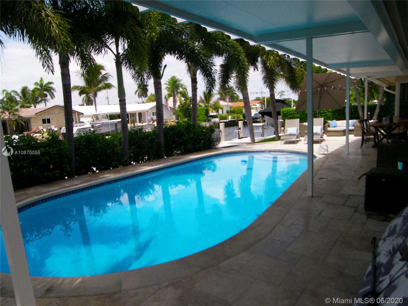 This exceptional 4 bed/3 full bath plus den or family room on 85' waterfront property, NO FIX bridge, was completely remodeled recently; doors and hurricane windows, seawall, post and composite dock with water and 50 + 30 amp power for up to 60' yacht, all redone in 2018. 2017 AC heat pomp, 2014 pool pomp, roof and all patio redone. New tile, new paint inside and out, new gutters, new diamond brite pool finish ..and much more. Open bright kitchen with split bedroom floor plan and an additional really nice family room. This is the perfect boater's retreat in one of Pompano most desirable community, Harbor Village. Close to beach,fishing pier, nice restaurants, shopping and all services.