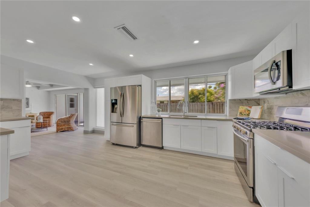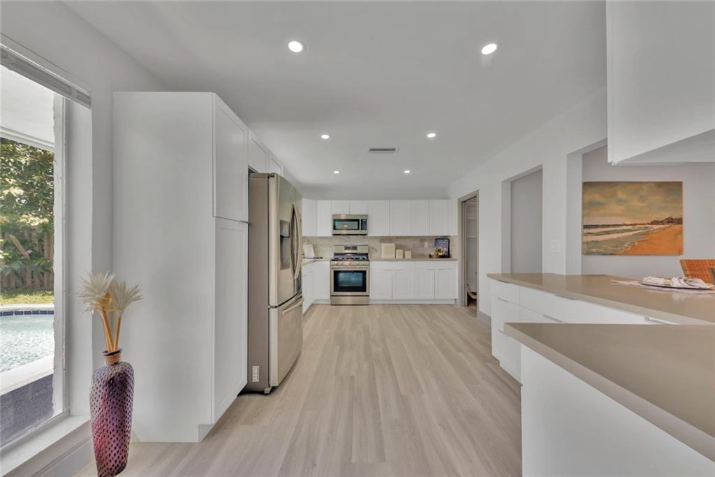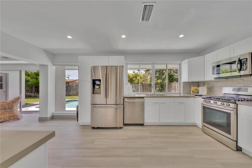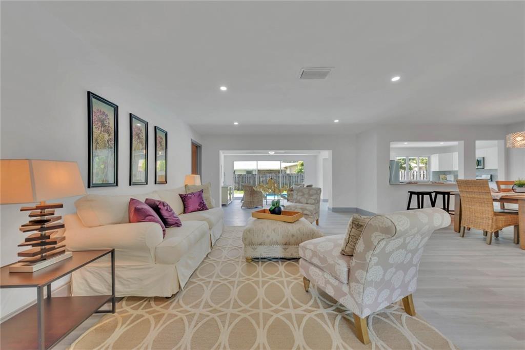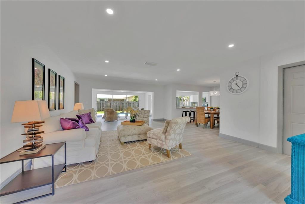 Unbelievable open concept on this amazing 3 bed 2 bath completed upgraded home with pool and 2 car garage in a highly desirable area and no HOA! Formal living, dining and family room overlooking the beautiful yard with a great blue pool. Perfect for entertaining. Upgrades include new waterproof flooring throughout, chef’s kitchen with gas stove, soft closing raised white cabinets, high quality quartz countertops and stainless steel appliances. Bathrooms upgraded with designer tile work and new vanities with quartz, new fixtures throughout, fresh paint, fresh landscape and much more. Separate laundry room/pantry and garage complete this dream family home in a great location close to everything. It will be love at first sight.
