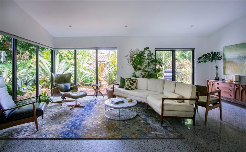 One-of-a-kind award-winning mid-century modern home was originally designed by Robert E. Hansen and carefully renovated by its current and second-ever owners. Sunbathed rooms offer vistas of the beautifully landscaped and private property--a tropical garden housing a collection of rare flora from around the world. Dazzling terrazzo composed of green carrara marble, jade, and iridescent stones spans the entire first floor. Open living area with vaulted ceilings ideal for modern entertaining. A heated saltwater pool and hot tub were added in 2017 to complete the outdoor oasis. Located on a quiet street a short walk to Wilton Drive.