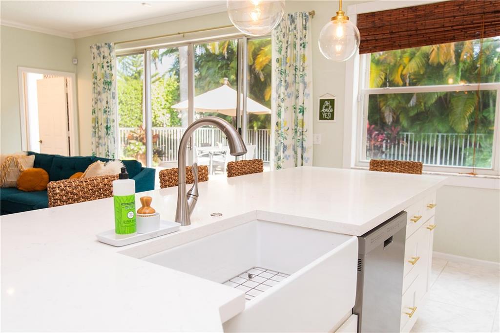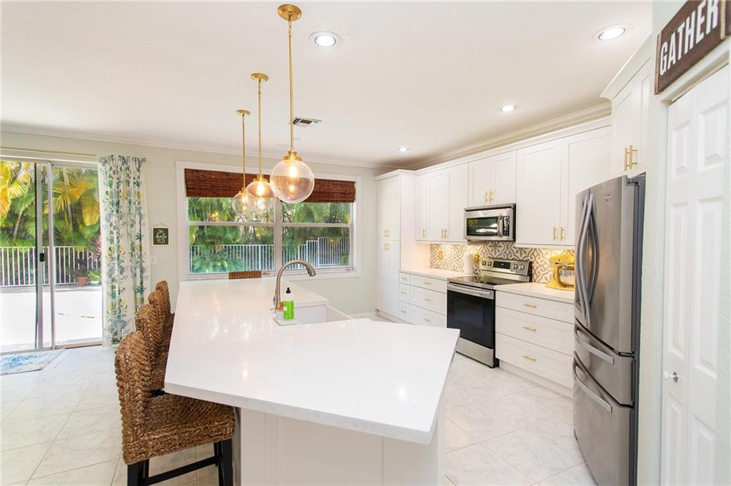 Finest Yardley Estates pool home offers privacy, lifestyle, open ample spaces & comfort. Enter double glass doors, to light-filled generous formal living & dining rooms viewing private pool/spa/yard. High volume ceilings pops the impressive grand staircase with new wide plank grey/beige laminate flooring throughout 2nd-floor. White Birchwood Shaker soft-close cabinets with pull out drawers, trash drawer & 2 pantries, featuring hottest "new look" brass hand pulls, imported Moroccan tile backsplash, huge quartz counter prep space w/under-mount farm sink, finished with matching brass accent glass pendant lighting. Stainless steel appliances. Spacious family room leads to pool/yard, true bedroom or office with full cabana bath & laundry room nearby. Private lot has side yard with rock firepit.