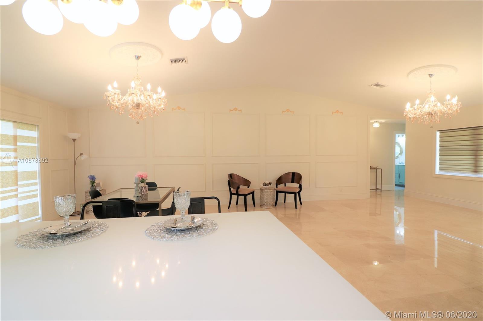 Luminous elegant one story pool home fully Remodeled from head to toes.Everything you see is new, New Roof, New A/C with permit. New Water Heater, New Garage Door, New impact entrance door, New interior doors & frames, New Wall and Ceiling entire home, New Electrical panel, New Plumbing and Electrical Fixtures with Royal Chandelier. Decent size master bedroom. Classico Vanity in Bathrooms W/Frame-less Glass wall.Bathrooms tiled to ceiling. New Irrigation piping, New luxury Kitchen w/Quartz counter top on hard wood Cabinets with Cook top range,wall oven. Marble flooring in living room & Wood laminate in bedrooms.2 Car Garage. Screened patio w/fence. Convenient location close to everything & High ways.