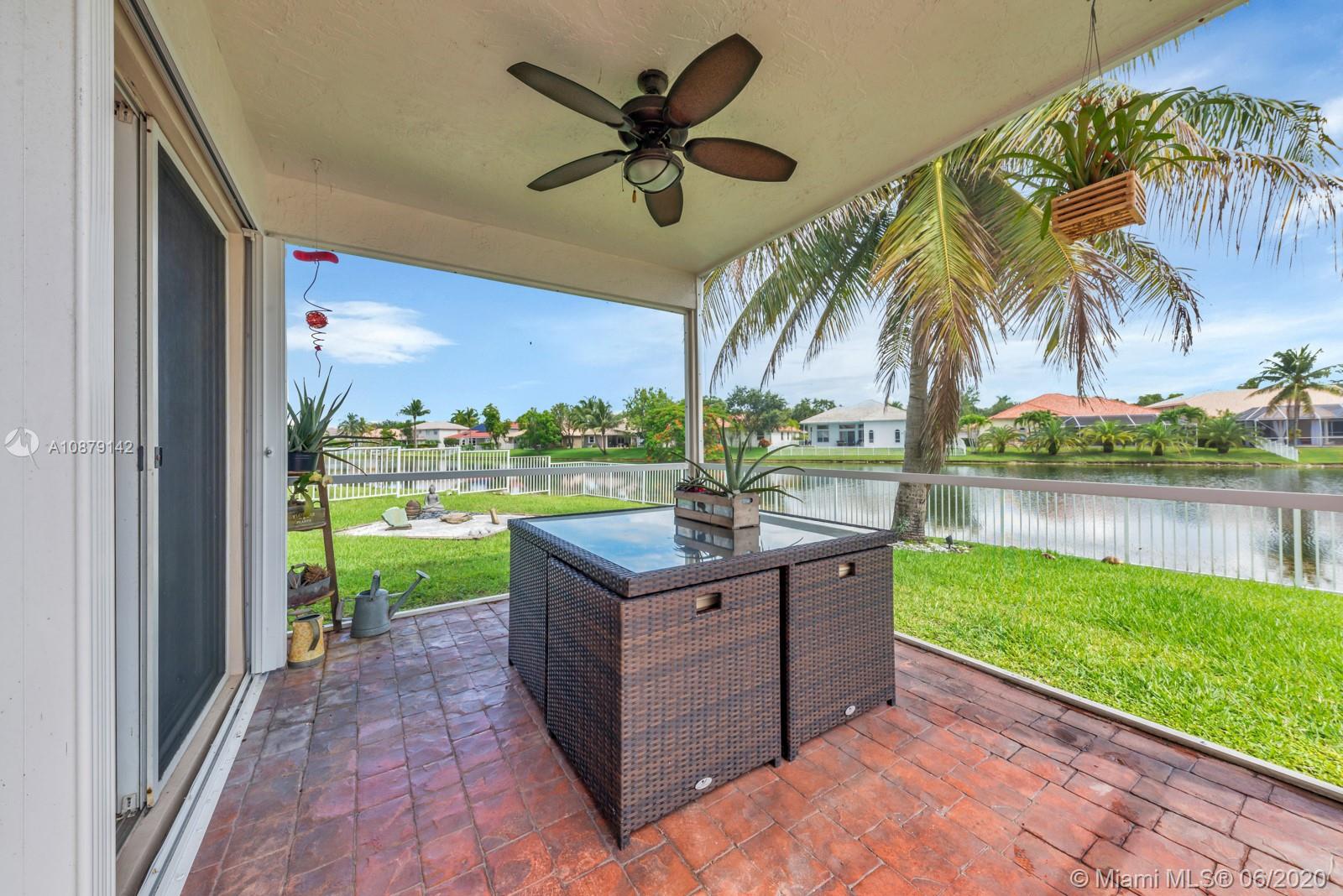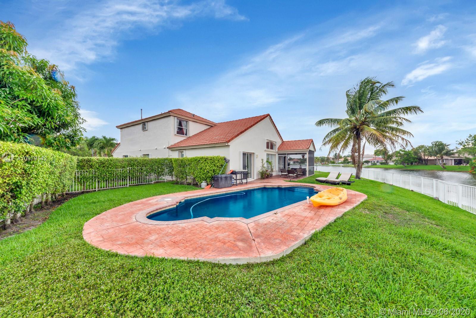 Back on the market. Clean inspection report. MUST SEE! Private cul-de-sac home located in the highly sought after Pembroke Falls gated community. This gorgeous 4b/2.5b waterfront home lies on an oversized lot with screened enclosed patio, fenced yard & salt water pool. Upgrades abound throughout. Kitchen features 42" wood cabinets, corian counters and stainless appliances. Tile floors in spacious social areas and laminate floors in bedrooms. Huge main level Master Bedroom with exceptional water views. Ensuite bath w/ dual sink vanity, separate tub and walk-in shower. Resort Style Community with access to first-class amenities including fitness center, clubhouse,pool and tennis court. HOA includes cable, security, internet and more. Accordion shutters.Close to highway. Excellent Schools!