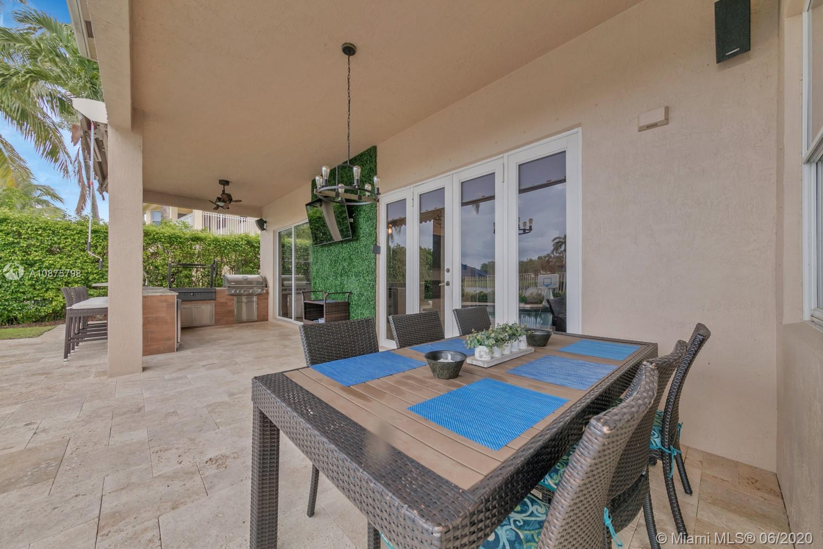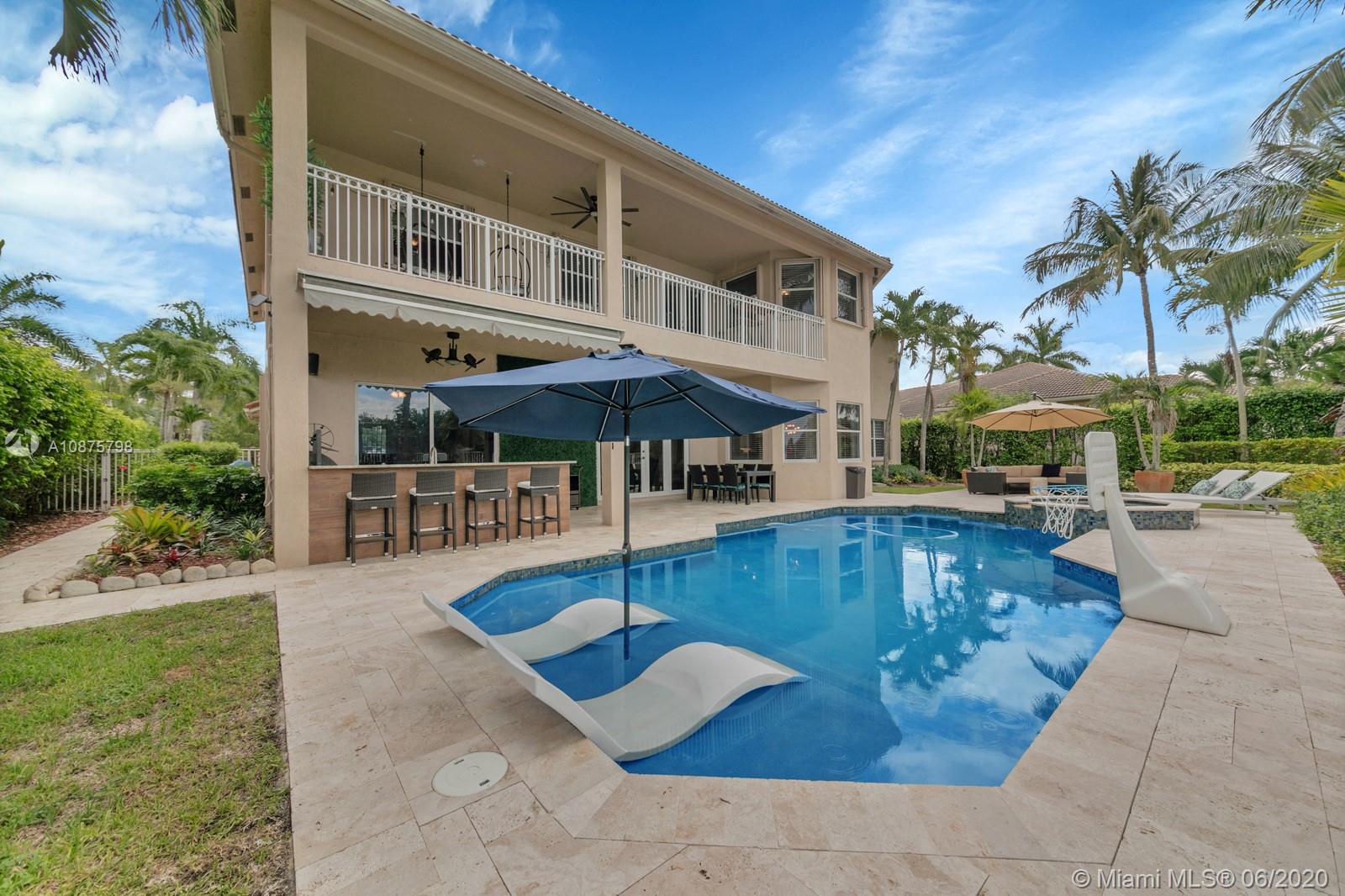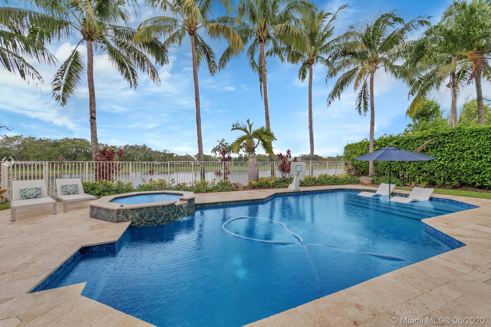 WoW! Big, Bold & Beautiful! Tastefully updated with a contemporary flair, this lakefront home is perfect for enjoying the Florida lifestyle. 5 bedrooms, 5.5 bathrooms + office, 20x14 playroom and loft spans 5365 sq ft (inclusive of 1/1 guest house). Grand entry with volume ceiling and elegant custom staircase welcome you home! Center island kitchen w/breakfast nook overlooks the family room. Luxurious master wing w/sitting area features 300 sq ft balcony allowing you to experience breathtaking sunsets from your private suite. The resort-style backyard features a travertine marble patio and summer kitchen w/built in grill+Argentinian BBQ, perfect for outdoor chef. Heated and salt freeform pool+spa is surrounded by lush tropical landscaping. Guard gated community w/pools, ballfields etc.