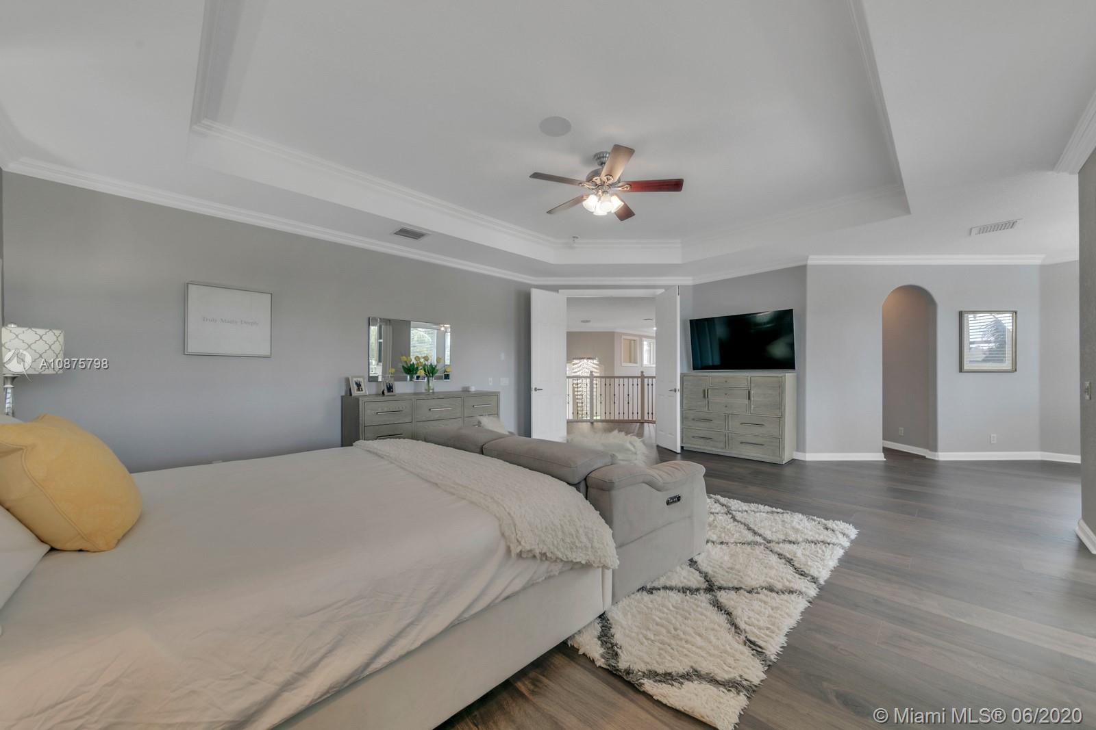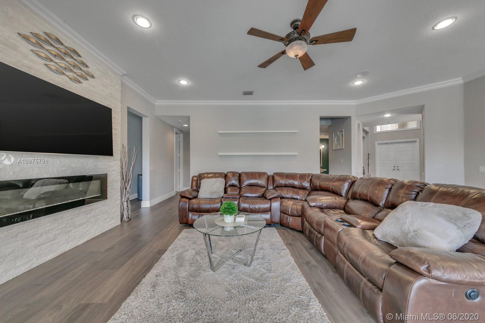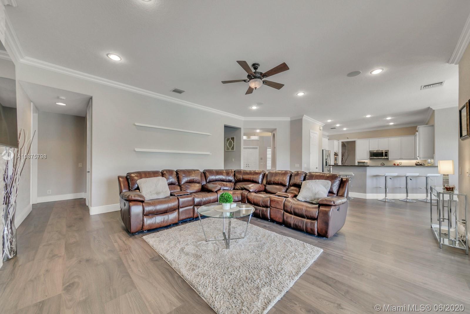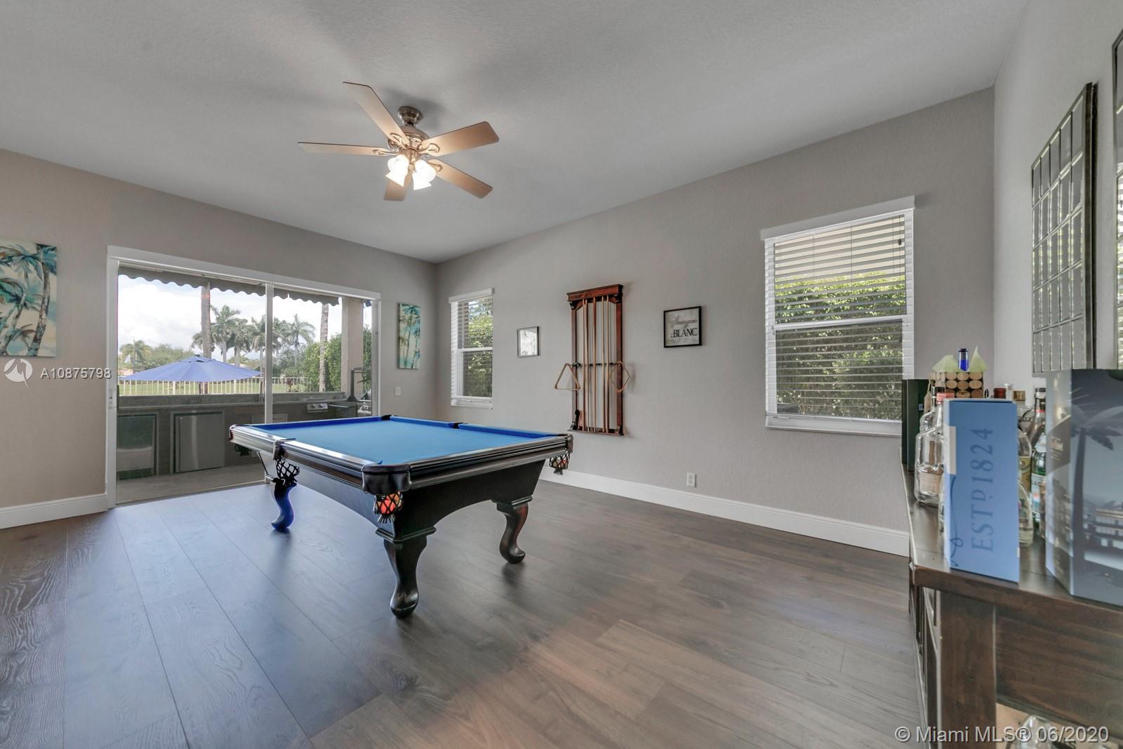 WoW! Big, Bold & Beautiful! Tastefully updated with a contemporary flair, this lakefront home is perfect for enjoying the Florida lifestyle. 5 bedrooms, 5.5 bathrooms + office, 20x14 playroom and loft spans 5365 sq ft (inclusive of 1/1 guest house). Grand entry with volume ceiling and elegant custom staircase welcome you home! Center island kitchen w/breakfast nook overlooks the family room. Luxurious master wing w/sitting area features 300 sq ft balcony allowing you to experience breathtaking sunsets from your private suite. The resort-style backyard features a travertine marble patio and summer kitchen w/built in grill+Argentinian BBQ, perfect for outdoor chef. Heated and salt freeform pool+spa is surrounded by lush tropical landscaping. Guard gated community w/pools, ballfields etc.