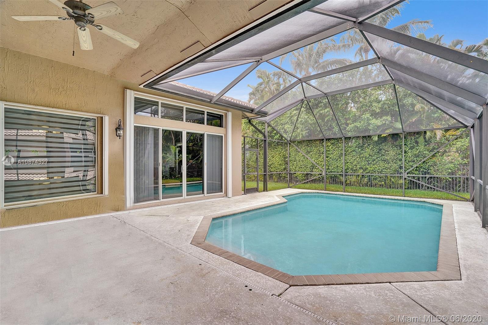 GORGEOUS OPEN FLOOR PLAN, ONE STORY HOME LOCATED IN THE GATED COMMUNITY OF THE RIDGES. THIS TRIPLE SPLIT HOME FEATURES 4 BEDROOMS PLUS AN OFFICE AND 3 FULL BATHROOMS. PORCELAIN FLOORING, VOLUME CEILINGS, CROWN MOLDING, FRESHLY PAINTED INTERIOR AND NEW WINDOW TREATMENTS. LARGE KITCHEN WITH GRANITE COUNTER TOPS AND A SEPARATE EAT-IN KITCHEN DINING AREA. LARGE SCREENED IN POOL AND THE ENTIRE HOME IS PROTECTED BY ACCORDION SHUTTERS. THIS HOUSE HAS A BIG BACKYARD AND IS CLOSE TO A+ RATED ELEMENTARY, MIDDLE, AND HIGH SCHOOLS.