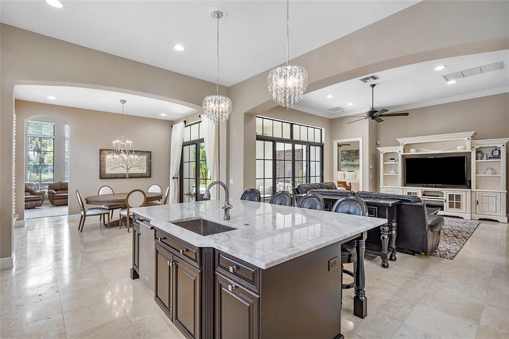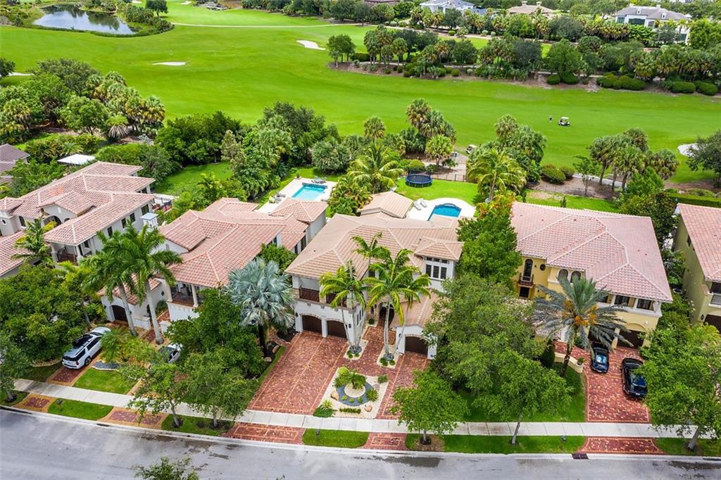 This totally Updated Beauty is the former home of New York Yankee Coach Joe Girardi & is situated on the golf course. Impressive curb appeal w/stack stone accents, perfectly manicured landscape, balconies, & a courtyard. The New Crisp White Kitchen is constructed with the finest materials, features a large island, & is truly gorgeous. Soaring ceilings & Expansive windows create a light/airy home & allow for serene views. The open great room/kitchen area offers a bar, glass doors leading to the loggia & is perfect for indoor/outdoor living. The luxurious master suite features a spa like bath. Newly remodeled pool & porch area w/a heated salt water pool, spa, marble pavers, under roof porches w/remote control roll up screens & beautiful frontage of the golf course. 5th bedroom is an office.
