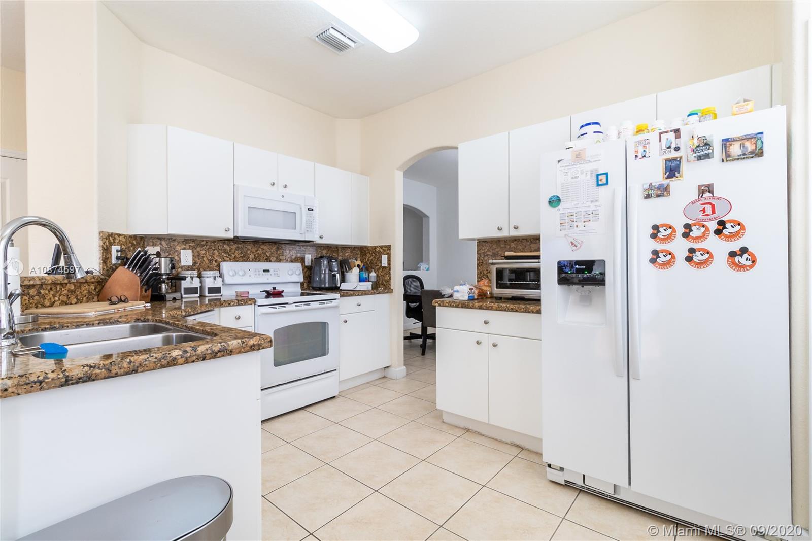 Welcome to the Islands of Doral. This 2-story Single-Family home is located just a couple blocks away from the famous Legacy Park. Centrally located to major expressways, transportation, restaurants, shops, groceries and health care facilities. Double entry door to open living area featuring high ceilings, ceramic 12 X 12 tiles and laminate wood flooring. Separate living room and dining room. Half bath for your guests. Open kitchen with granite countertops and white appliances. Full size washer/dryer in its own laundry room. Fenced backyard is the perfect place for gatherings and BBQ. Second story features 3-bedrooms and 2-bathrooms. Master bath features double sink, separate shower and roman soaking tub. 2-car garage with electric lift. A lovely home and great place to live. VERY NICE!