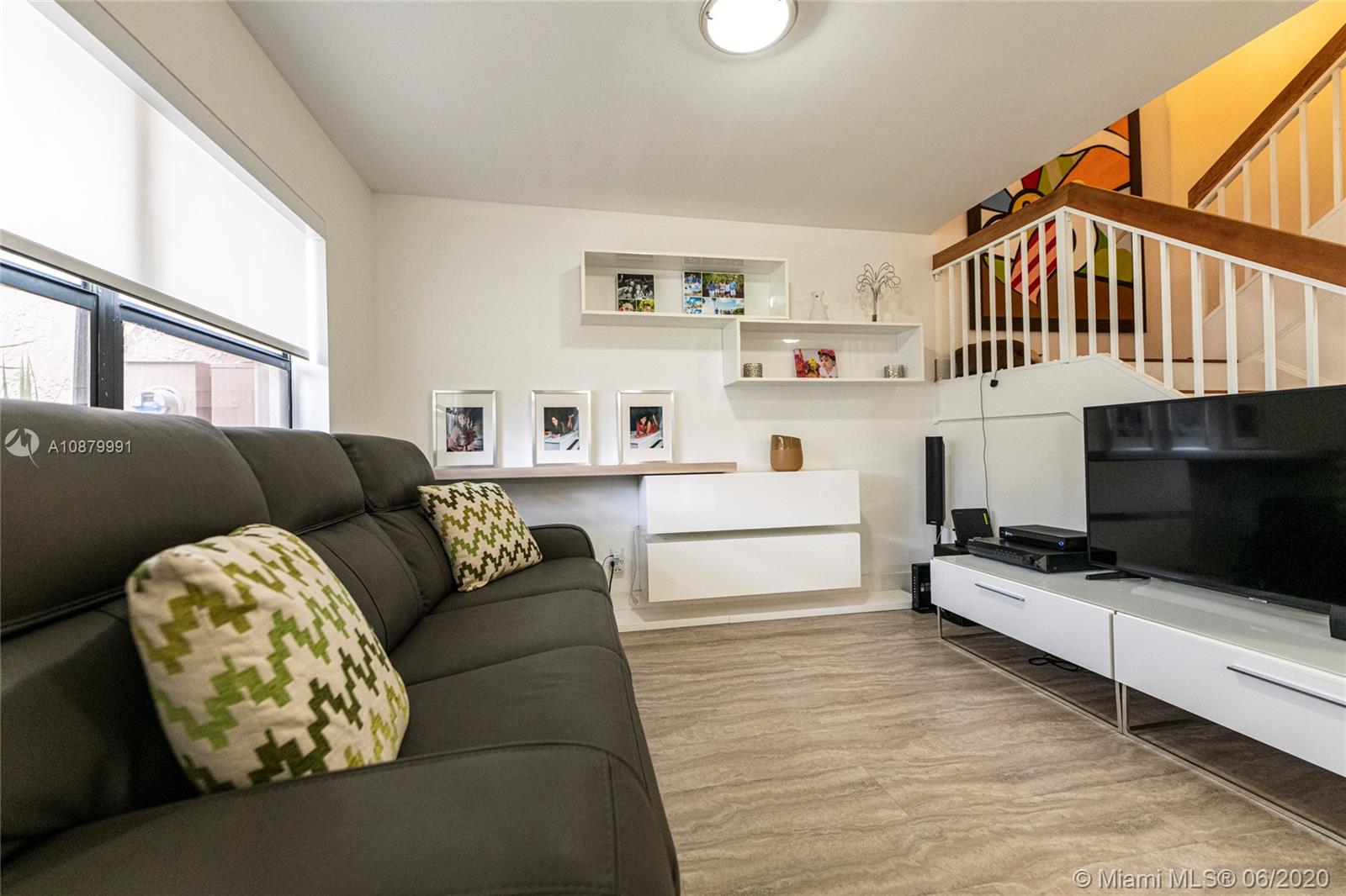 Beautiful 3 bedroom 2.5 bathroom townhome with a fantastic lake view. This home features substantially remodeled kitchen with quarzo countertops, wall oven, breakfast area , family room, guest bathroom and 2nd bathrooms are remodeled. Beautiful neutral laminated floors water resistant on the first floor and wood laminate on the second floor and stairs. Huge covered and screened in patio(aprox. 8'x26') with laminted water resistant floors overlooking the lake. New Roof! All buildings exterior has been freshly painted, excellent schools. 2 assigned parkings + guest parking. shutters.