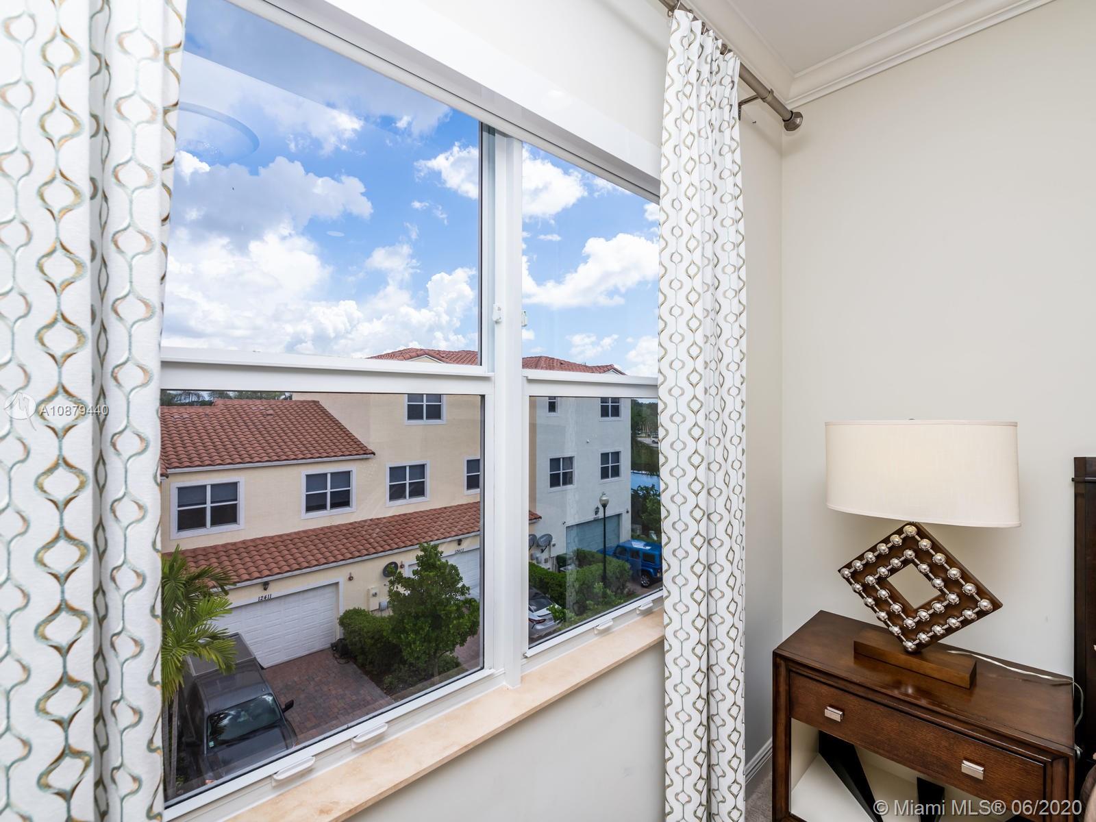 Fabulous Move-In Ready! Imagine owning a Former Luxury Pristine 4/3/1 Sky Model in Centra Falls with Elevator/Perfect Pool View/Impact Windows & Doors/Gorgeous Lighting /Window Treatments/ 10' ceilings. 2 Car Driveway /2 car garage-walk right in your kitchen/livingroom/dining room /1/2 bath on 1st floor. Stainless Steel Appliances, quartz countertop kitchen island /Upgraded Cabinetry. 2 Terraces with covered entry patio! Beautiful modern granite bathrooms! 3 bedrooms on the 2nd floor with the washer/dryer/laundry sink. The master bd offers /balcony/walk-in closet .The 3rd level has a bed/bth/terrific expansive open space/wood look tile floors in family room, inside kitchenette/mico/sm refrig/large outside terrace w/ bar-b-que, sofa, cabinets and sink. Amenities: Pool/Fitness Center/Gated.