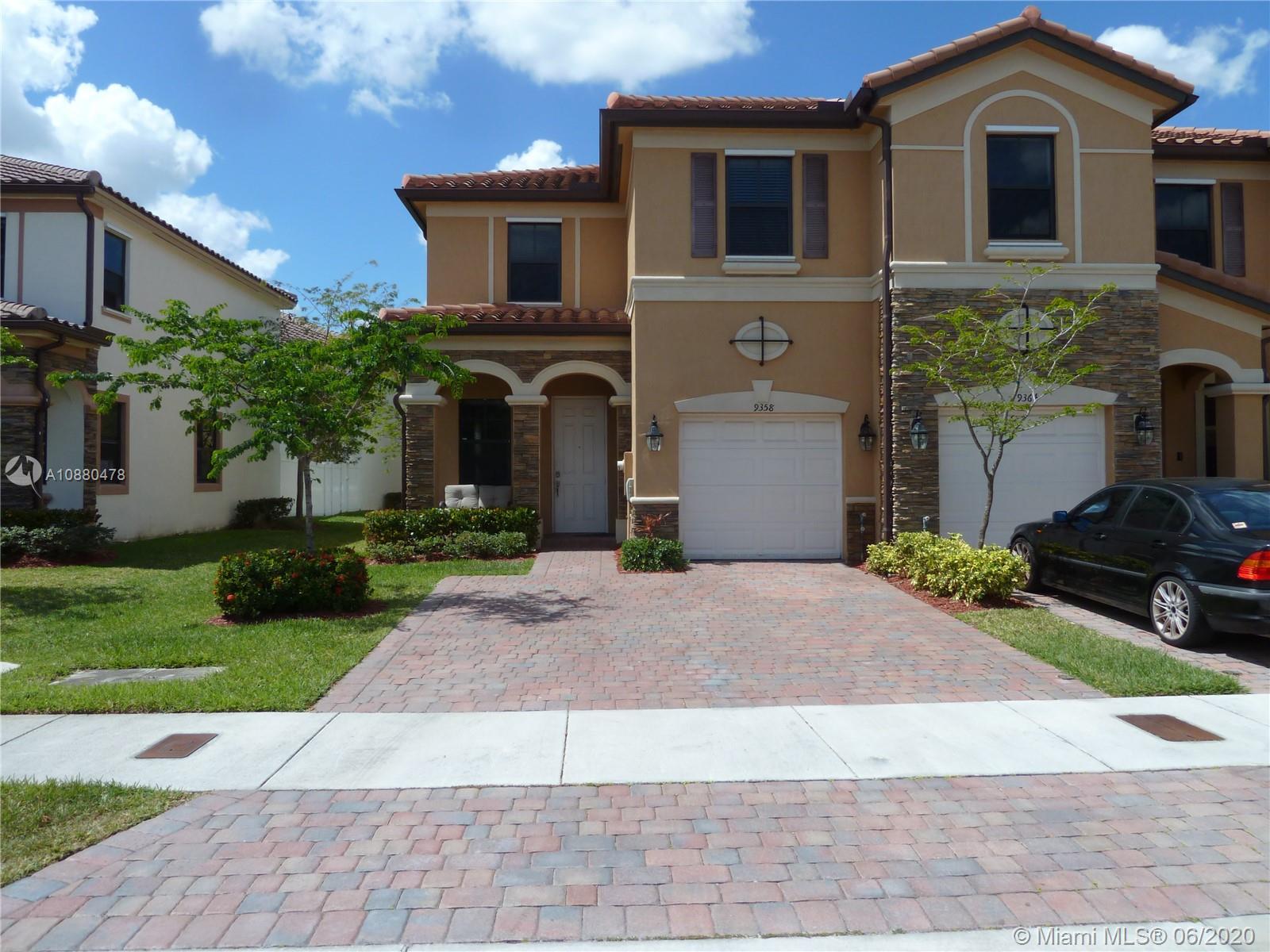 Beautiful 3/2.5 corner unit with the biggest green space in Bonterra gated community. Open floor plan with high ceilings, marble on first floor and vinyl on second floors and stairs, Stainless steel appliances. Hialeah gardens private community with swimming pool, gym, children area & clubhouse. Showings by appointment only