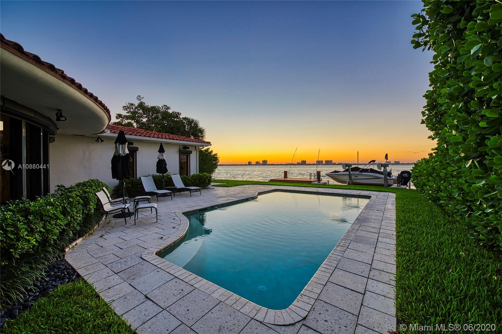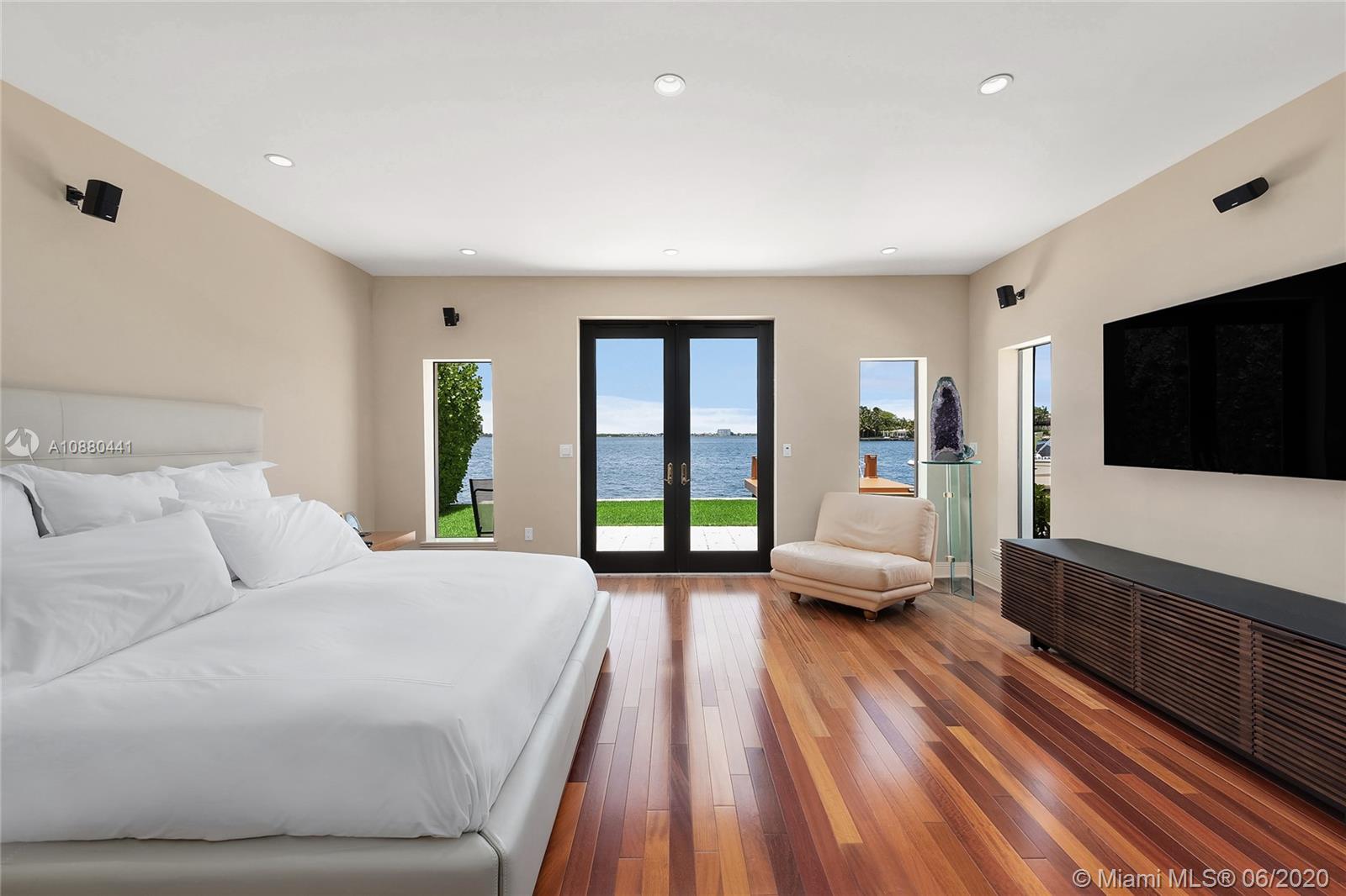 MOTIVATED SELLER!! This charming waterfront home in a gated community features an open floor plan with stone & rich wood floors, 75’ of WF & amazing sunset views to the wide bay. Spacious living room w/fireplace leads to a beautiful family room w/a bar & a curved wall of windows looking out to the pool/bay. The gourmet kitchen sports top-of-the-line Monogram appliances, gas & electric cooktop, eat-in kitchen counter, wine cooler & adjacent dining room. Large bay-side principal bedroom w/walk-in closets, direct access to pool deck w/bay views. Large pool, open seating areas, dock, boat lift & direct Ocean access. incl. natural gas generator for entire house,1 car AC garage, & enclosed car port. Amenities avail. Tennis courts, public golf course, club house & children’s playground.