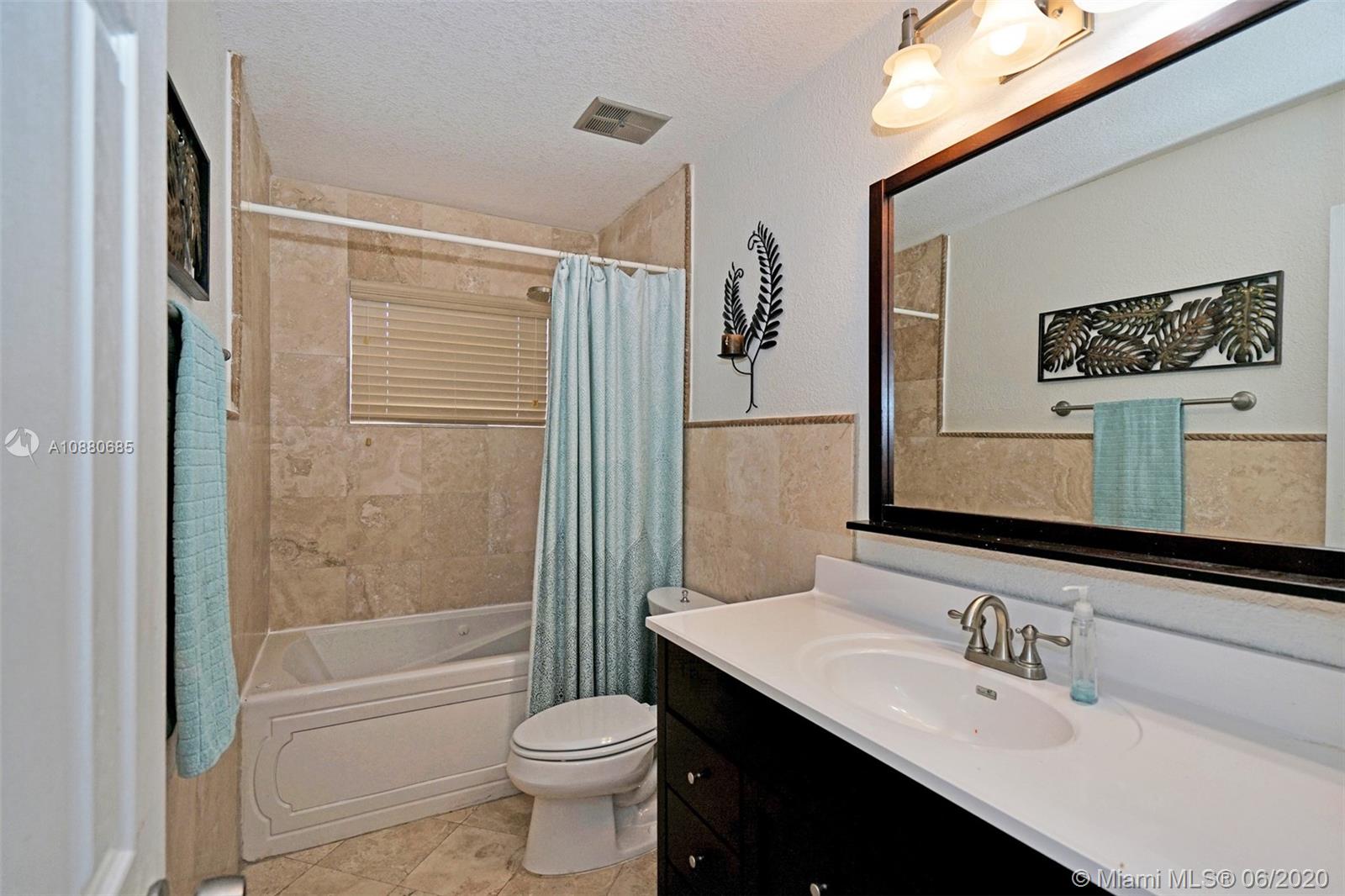 Come see this totally remodeled 3 bedrooms, 2 bathroom pool home in Weston's Bonaventure subdivision. Property features porcelain floors throughout, 42in wood kitchen cabinets with granite countertops & stainless steel appliances, front loader washer & dryer, travertine flooring in bathrooms, New AC Unit & Tankless water heater. The master has his & hers walk-in closets with built-in shelves & access to the backyard which is totally private with coconut trees, paver patio, & a newer heated pool. Access to the Bonaventure Town Center where there are pools, tennis courts, indoor racquetball & basketball courts, full gym, bowling, & much more. Low Hoa Fees ($45). Great location, minutes to Publix, restaurants, expressways, & "A" schools. Will not last! Lowest priced pool home in all of Weston