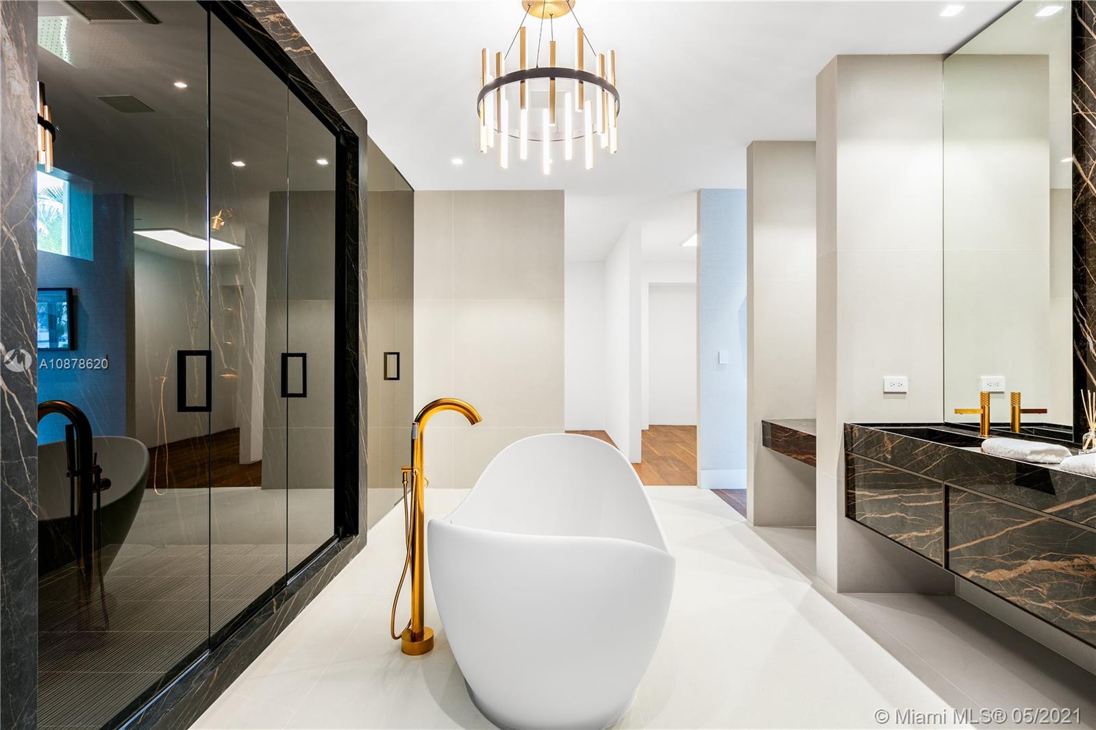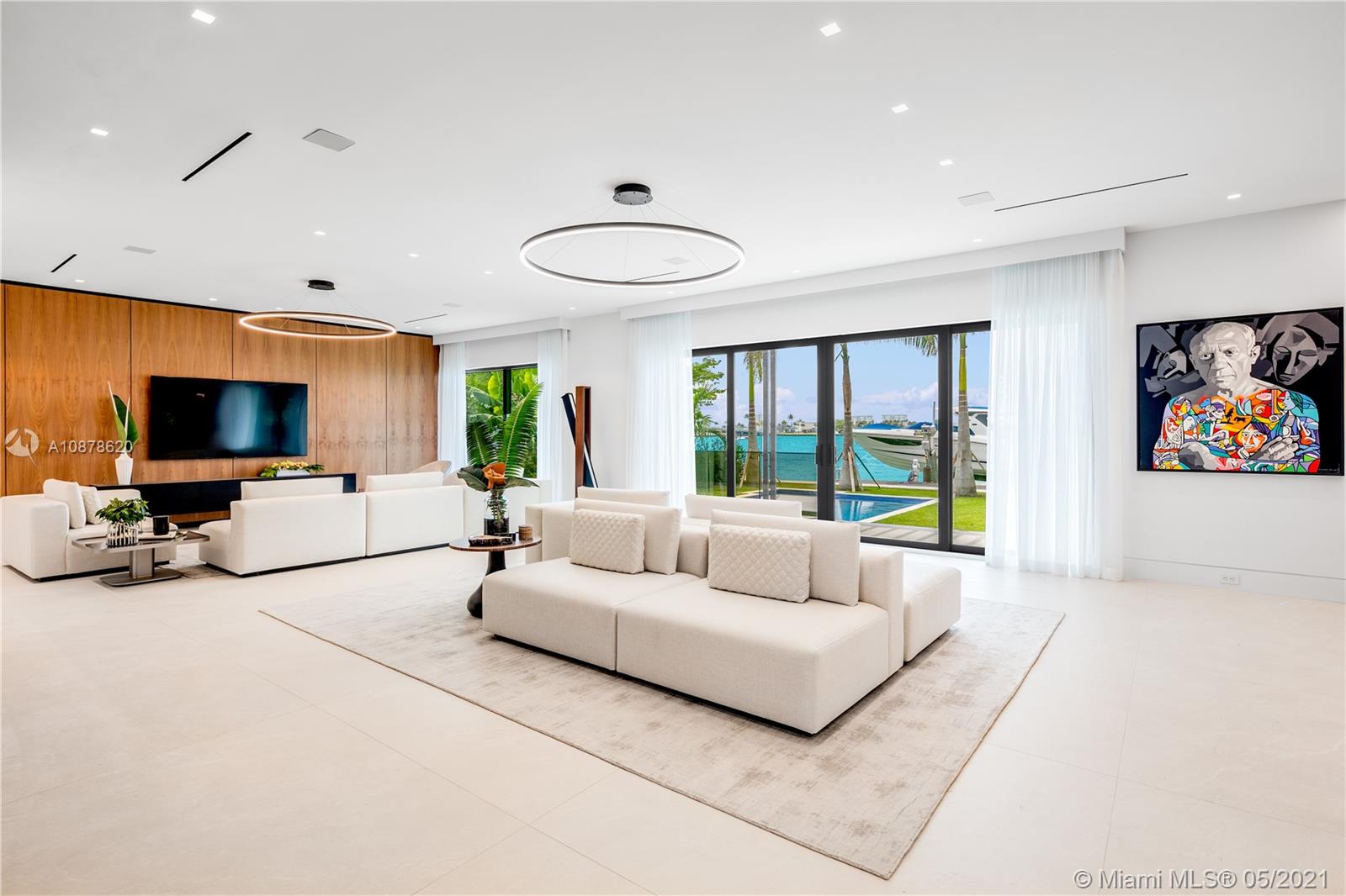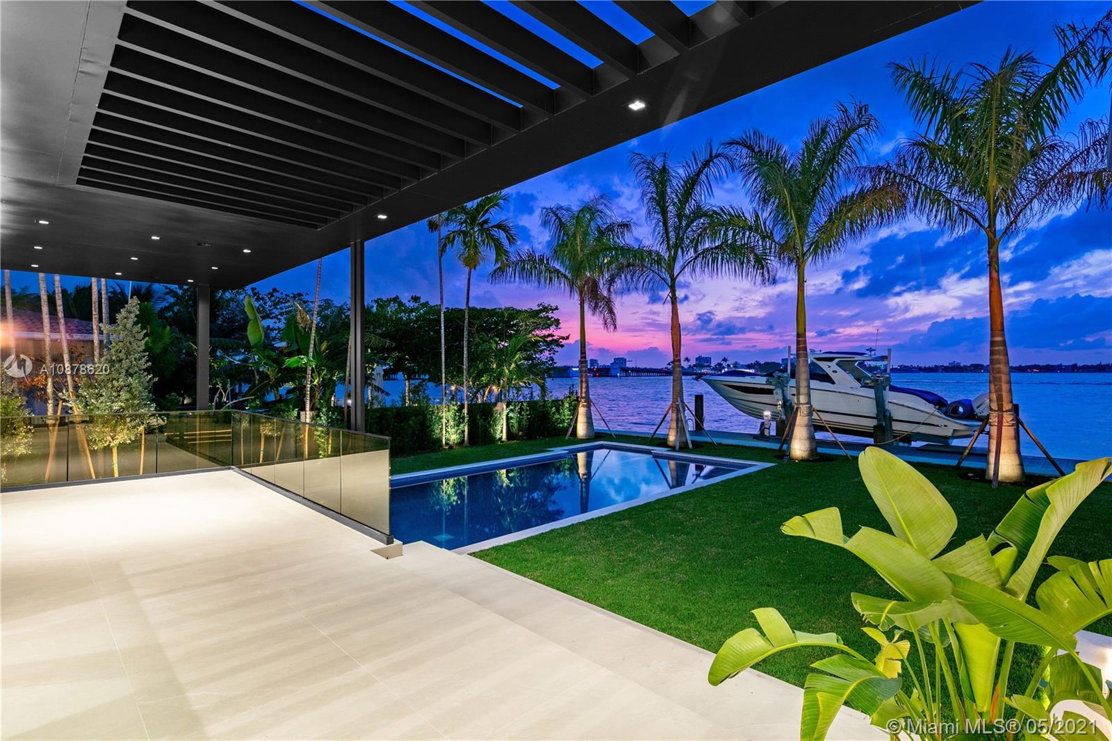 Situated on the Open Bay w/ endless water & west sunset views, this Completely Rebuilt Contemporary home features 7100 SF of Living Space complimented by top of the line finishes throughout. Enjoy a perfect layout for family living & entertainment which features 8 BD, 8.5 BA + home office. The 1st floor sets the tone w/ 60x60 porcelain tiles, one of a kind staircase w/ live green wall & a Snaidero Kitchen comprised of wood taken from the pilasters of Venice. Upstairs you'll be blown away by the master retreat which boasts breathtaking western views of the bay & sunsets, private lounge / sitting room, bespoke master bathroom w/ steam shower & enormous his & hers closets. The backyard provides a tropical setting w/ pool & spa, new seawall cap & brand new 60' dock.